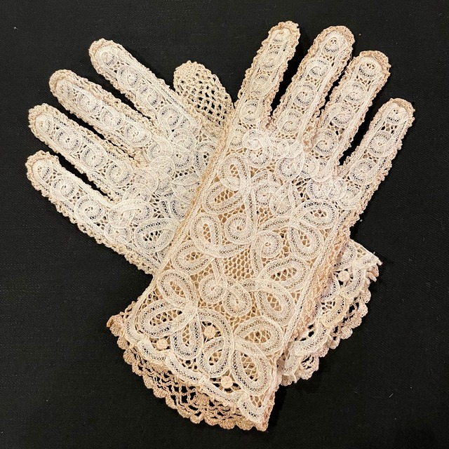 1950’s総レースの優美なグローブ(手袋)。 コンディションは良好でほつれや破れなどのダメージはありませんが、 経年による変色が全体的に見られます。 シミのような目立つ変色ではなく全体的にベージュ色に変化しており、 「アンティークらしい味わい深い風合い」、とも言えます。 レースなので夏のお出かけにも最適。 小さすぎず大きすぎないサイズで、つけ心地も抜群です。 繊細なレースの手元をお楽しみください。 ■注意点 ・年代物、中古品にご理解ある方のみのご購入をお願いします。 ・色相、ダメージなどの商品説明は当方の主観であることをご了承ください。 ・ご不明意な点がありましたら遠慮なくお問い合わせください。 210311-1