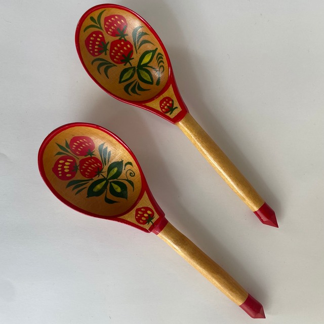 Finland Vintage フィンランド ヴィンテージ 木製 スプーン wood 苺 イチゴ 手描 2本