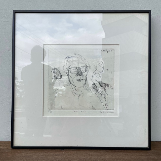 1982年、山本容子の比較的初期作品である 「DANDY ANDY(ダンディ・アンディ)」。 アンディ・ウォーホル(ウォホール)をモデルに 限定50部のみ制作された1版1色エッチング作品で、 こちらはed31/50と手描きの文字が記されています。 ed50 18.3×20.3㎝ 銅版画 AP版 レゾネNO150 アンディ ウォーホルの特徴が巧みにとらえた作品、 後ろにいるのはルーカスでしょうか? 額装済み・額縁付き 山本容子 Yoko Yamamoto 「DANDY ANDY」 銅版画 AP版 1982年 サイン、タイトル、年記、S:35×35 ■size(フレーム):W40.5×D2.5×H40.5cm ■注意点 ・こちらの品は長い時を経たアンティーク、骨董と呼ばれる中古品、自宅保管品です。ある程度の経年劣化にご理解いただける方のみのご購入をお願いします。 ・色相、ダメージなどの商品説明は当方の主観であることをご了承ください。 ・ご不明な点がありましたら遠慮なくお問い合わせ下さい。 220911-294