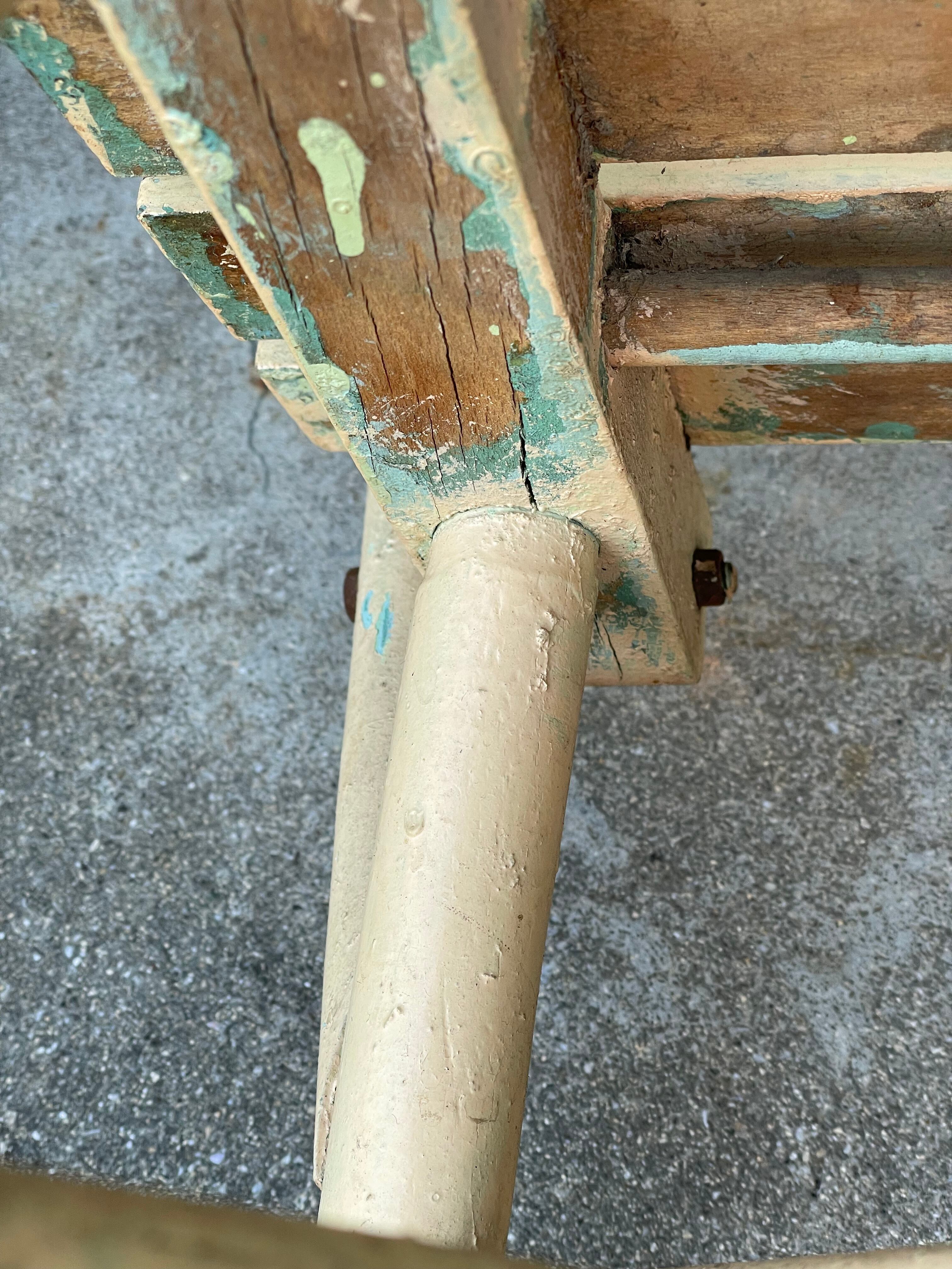 幾重にも重ねられた白やグリーンのペイントが長い時を経て所々剥がれ、