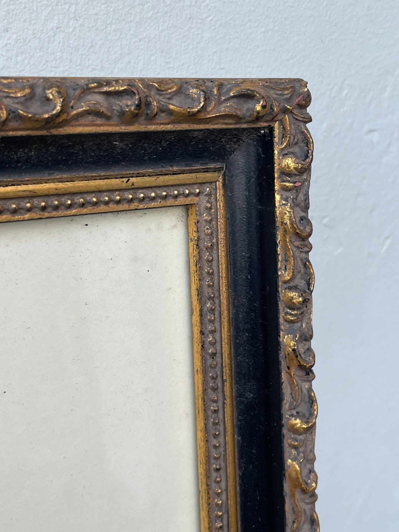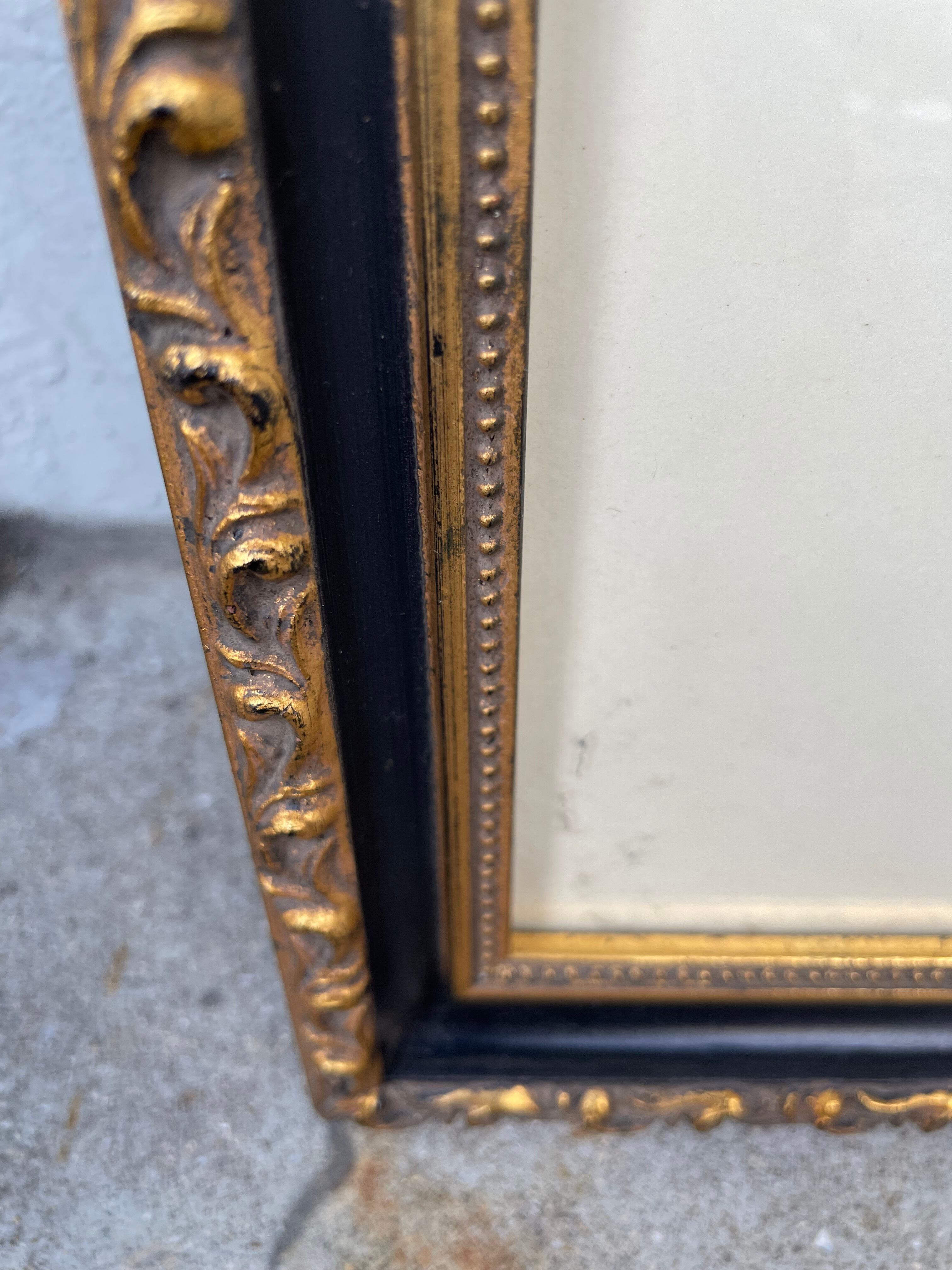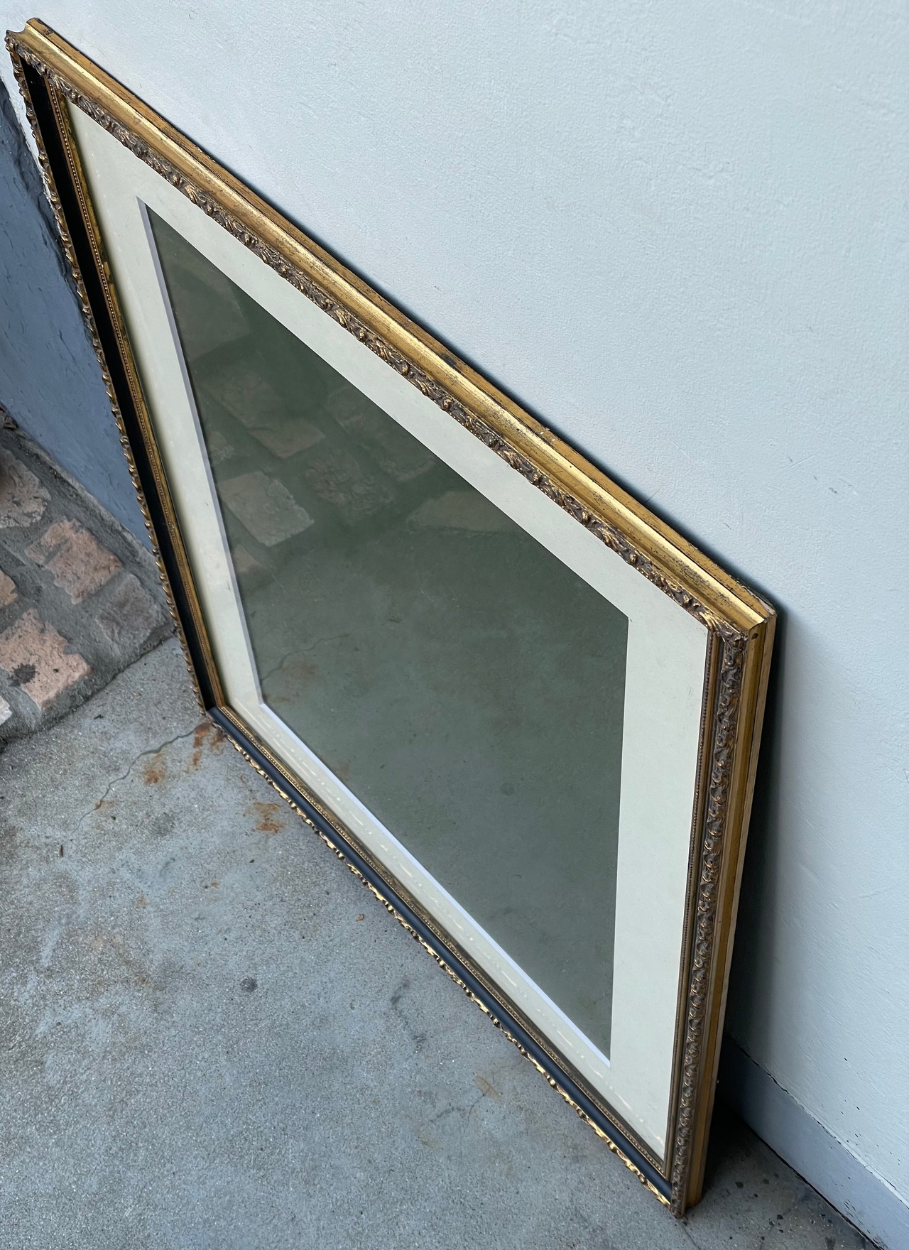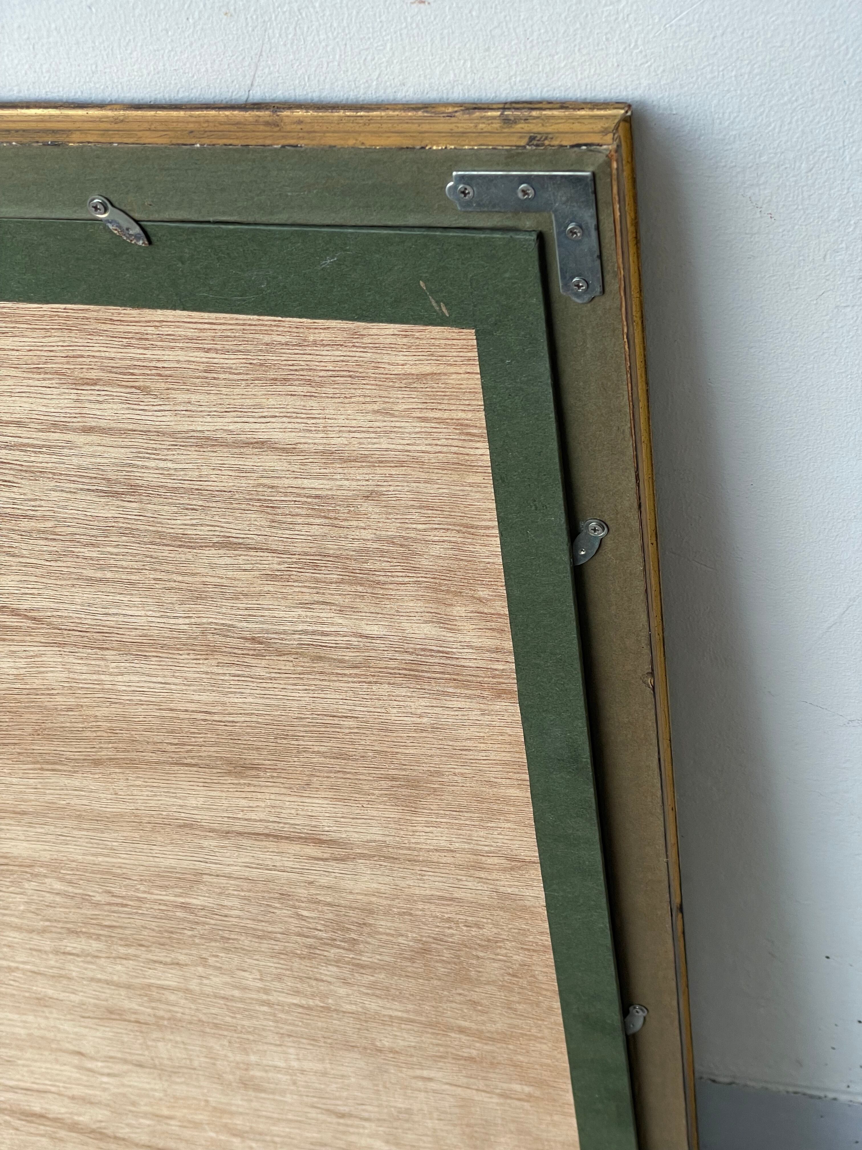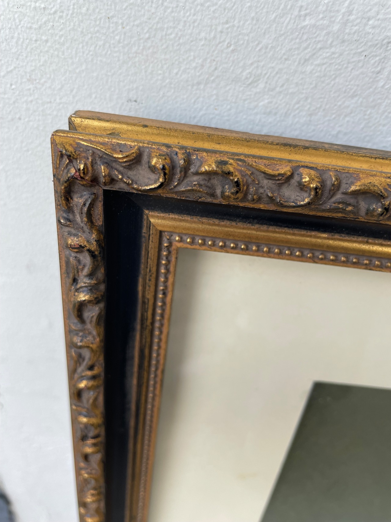 木製枠に落ち着いたゴールドのペイントと彫刻を施した