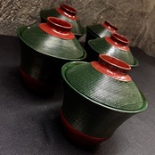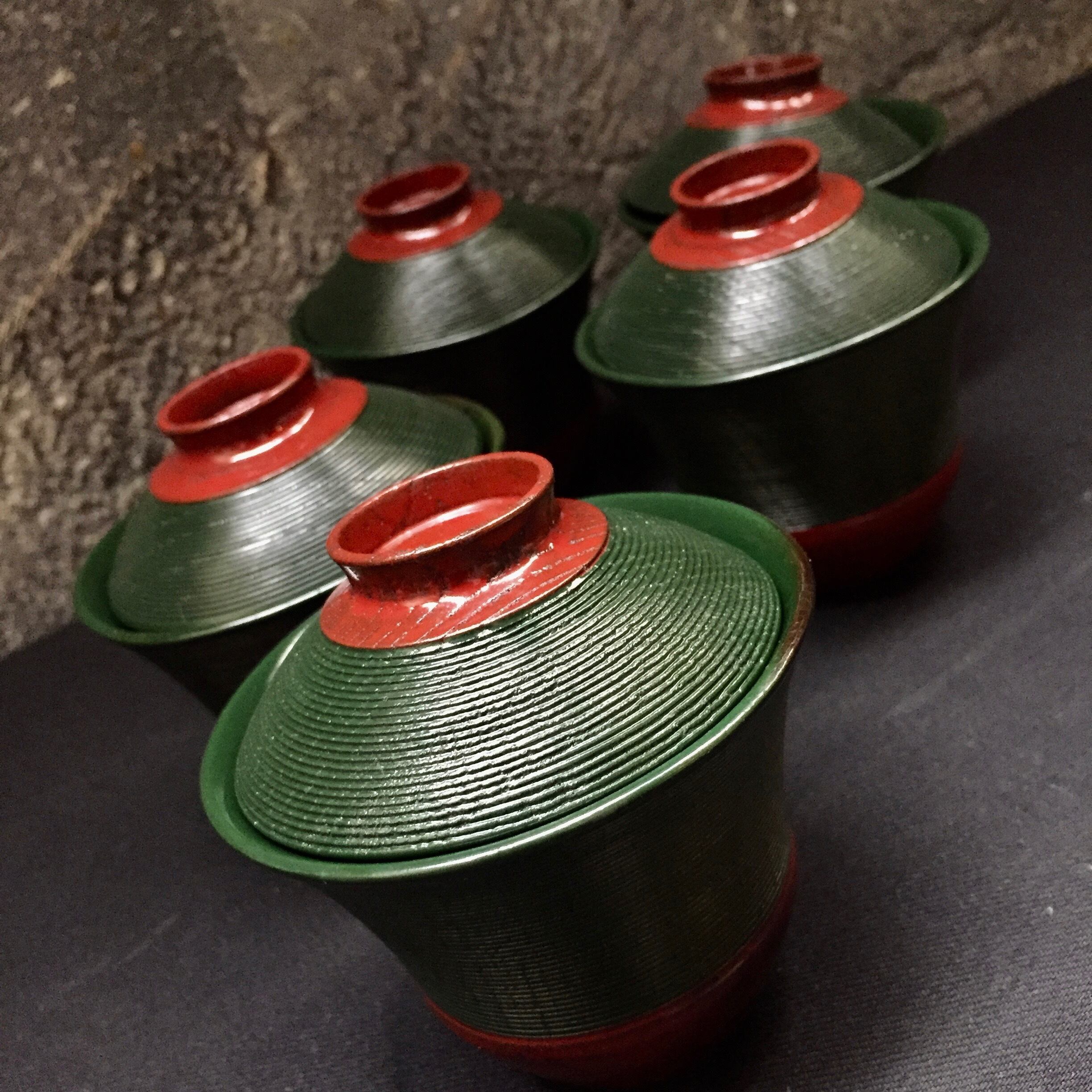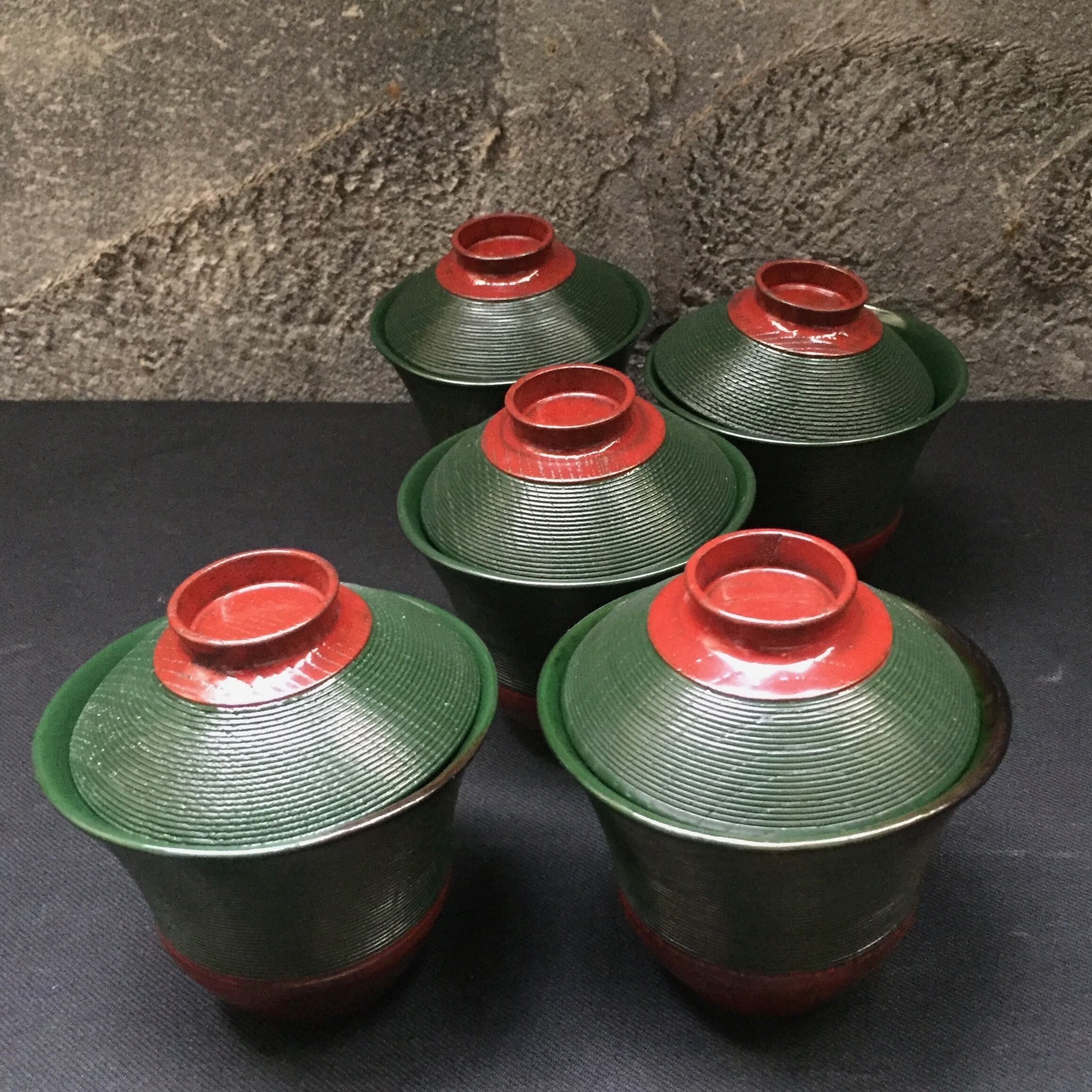 Japan Antique 糸目 千筋 溜塗 本漆 小型吸物椀 5客揃 茶懐石 茶道具