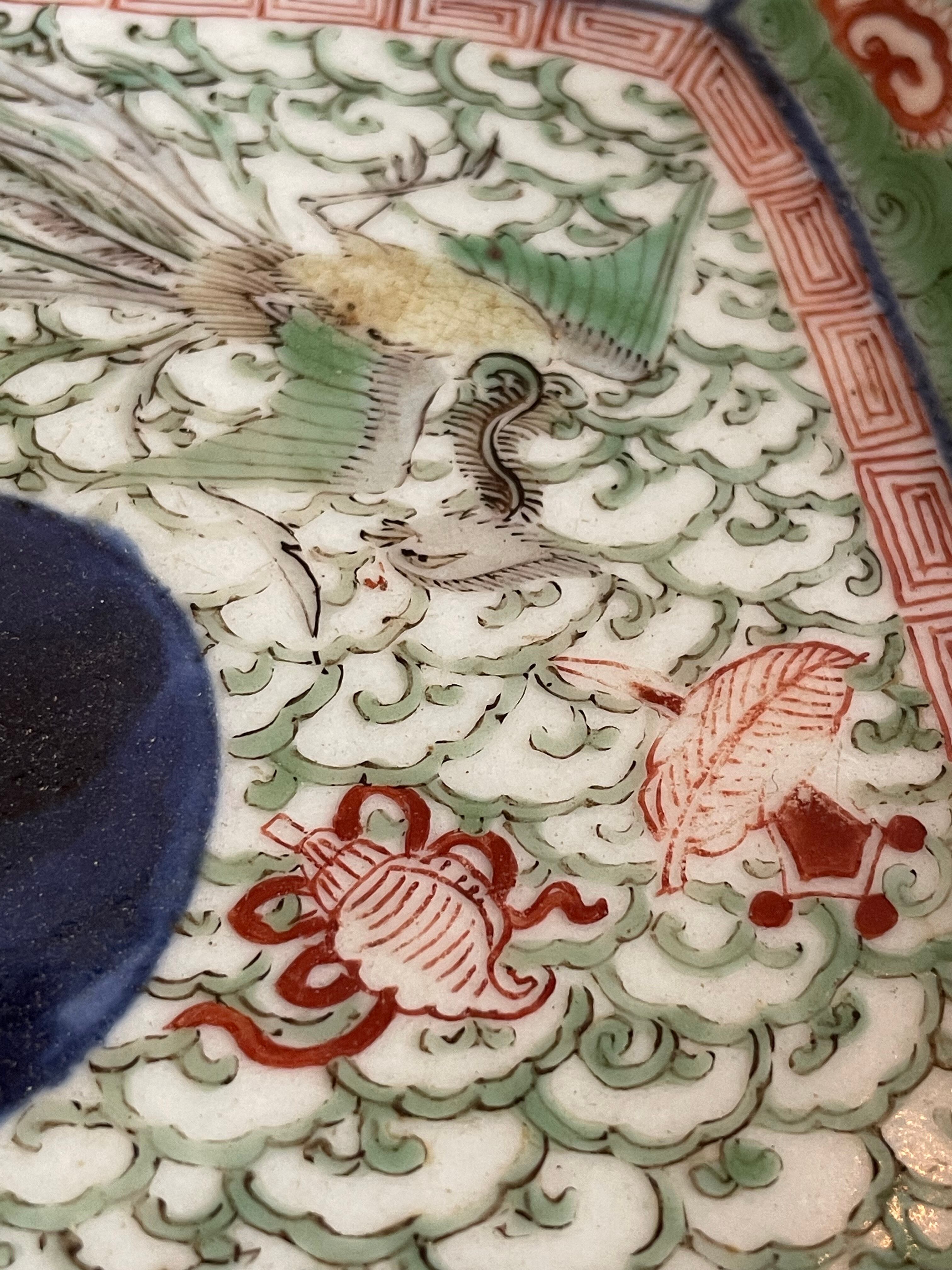 【極上品】明治期 大聖寺伊万里 金襴手 隅切四方鉢 鳳凰唐人図 富貴長春銘 資産家旧蔵 完品 骨董 古美術 向付 盛鉢