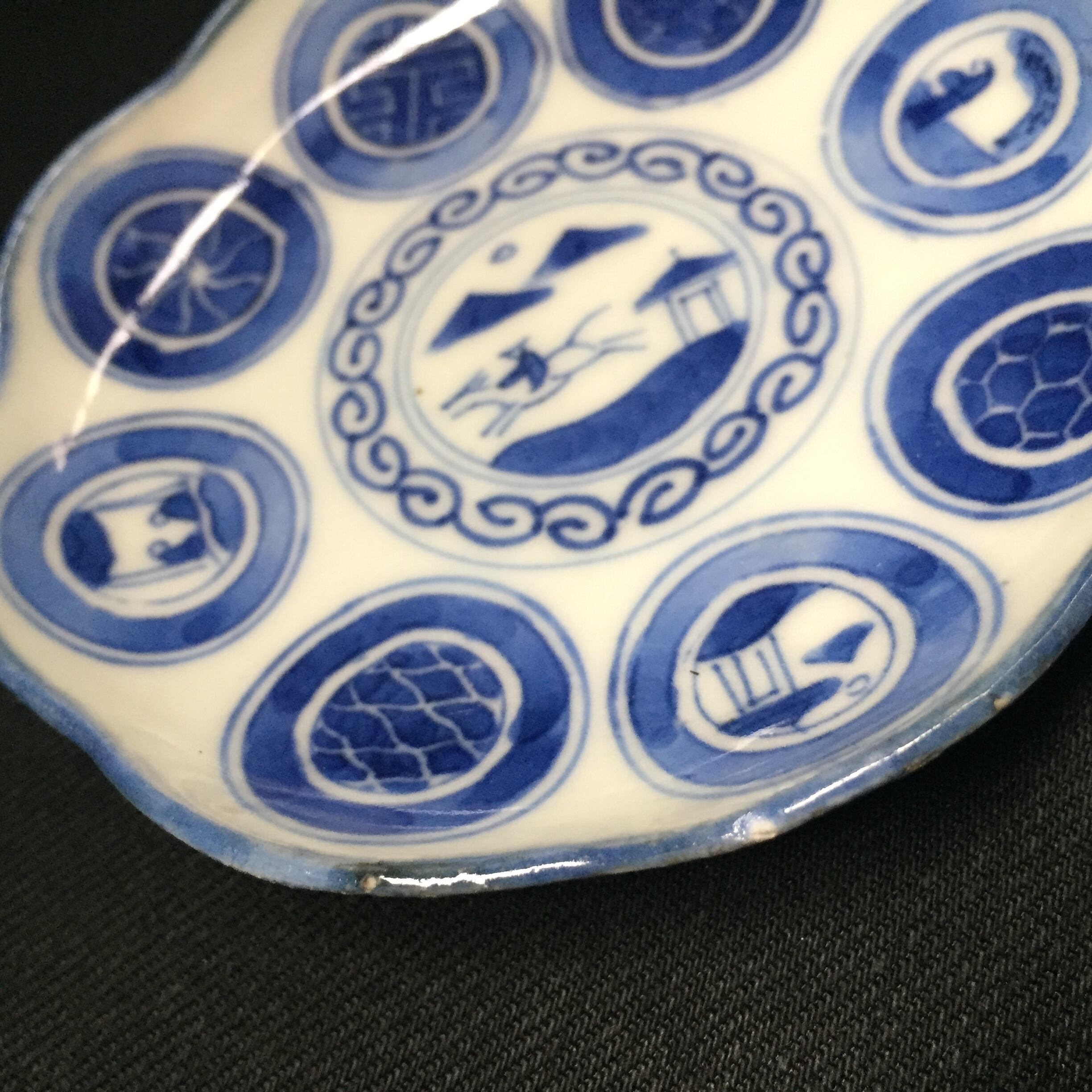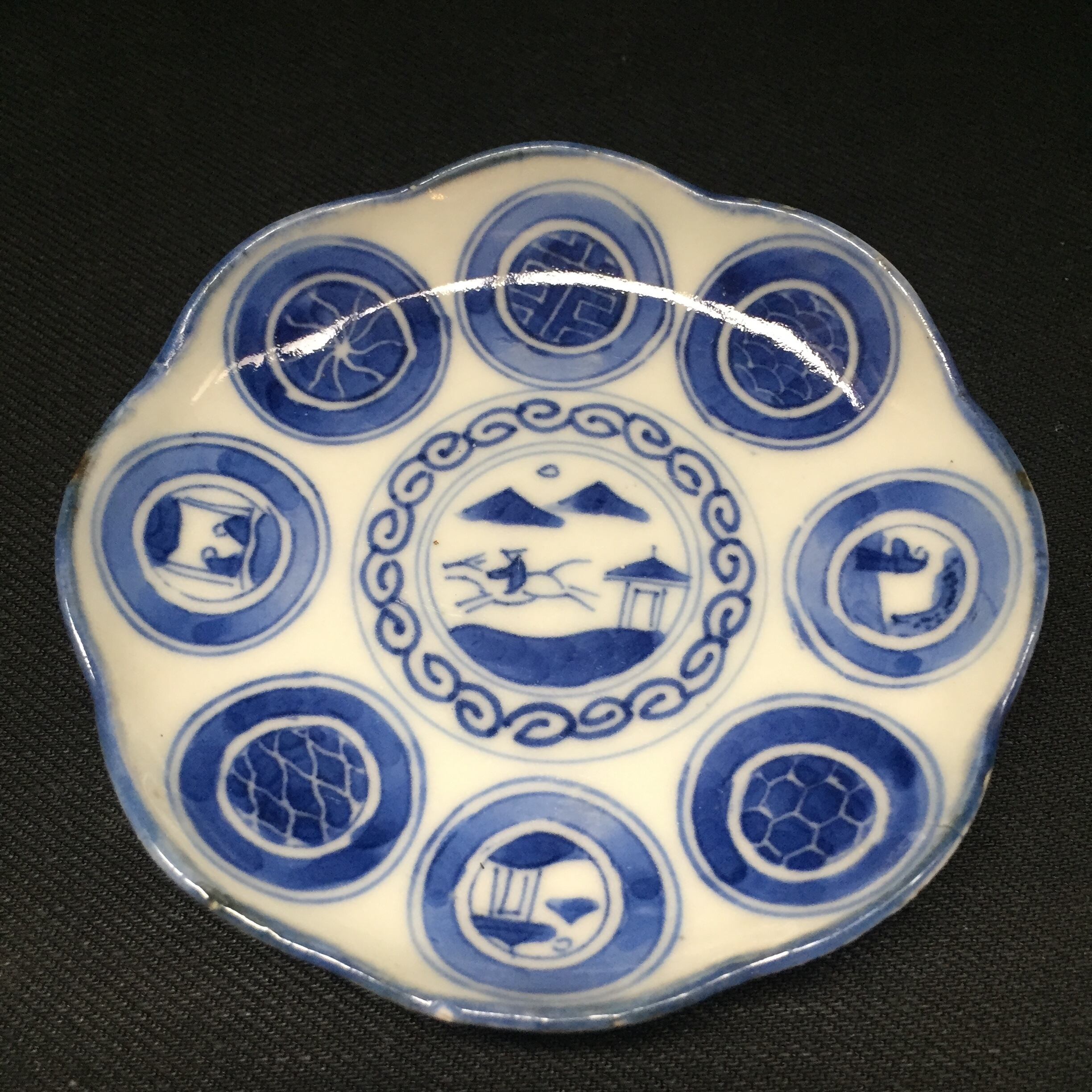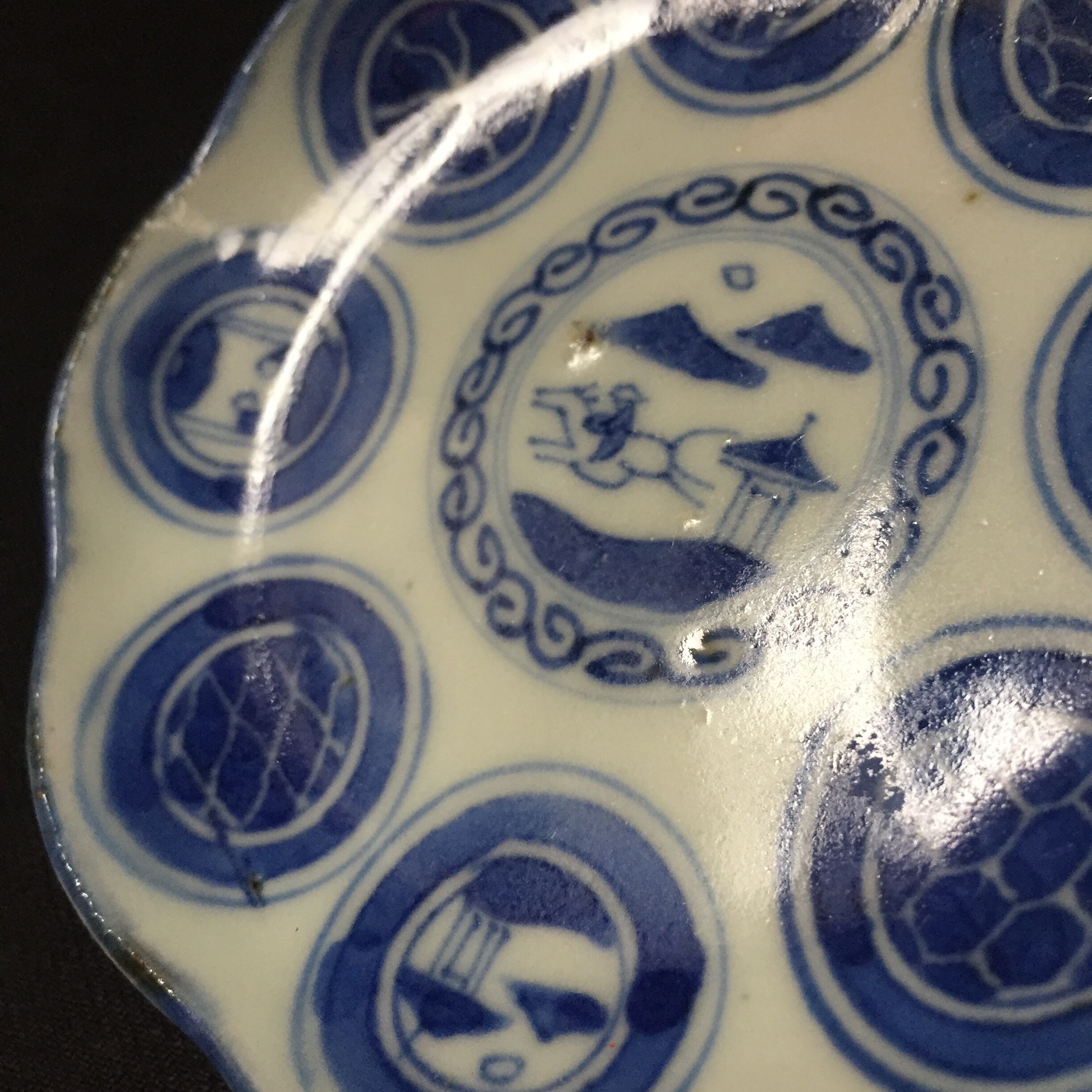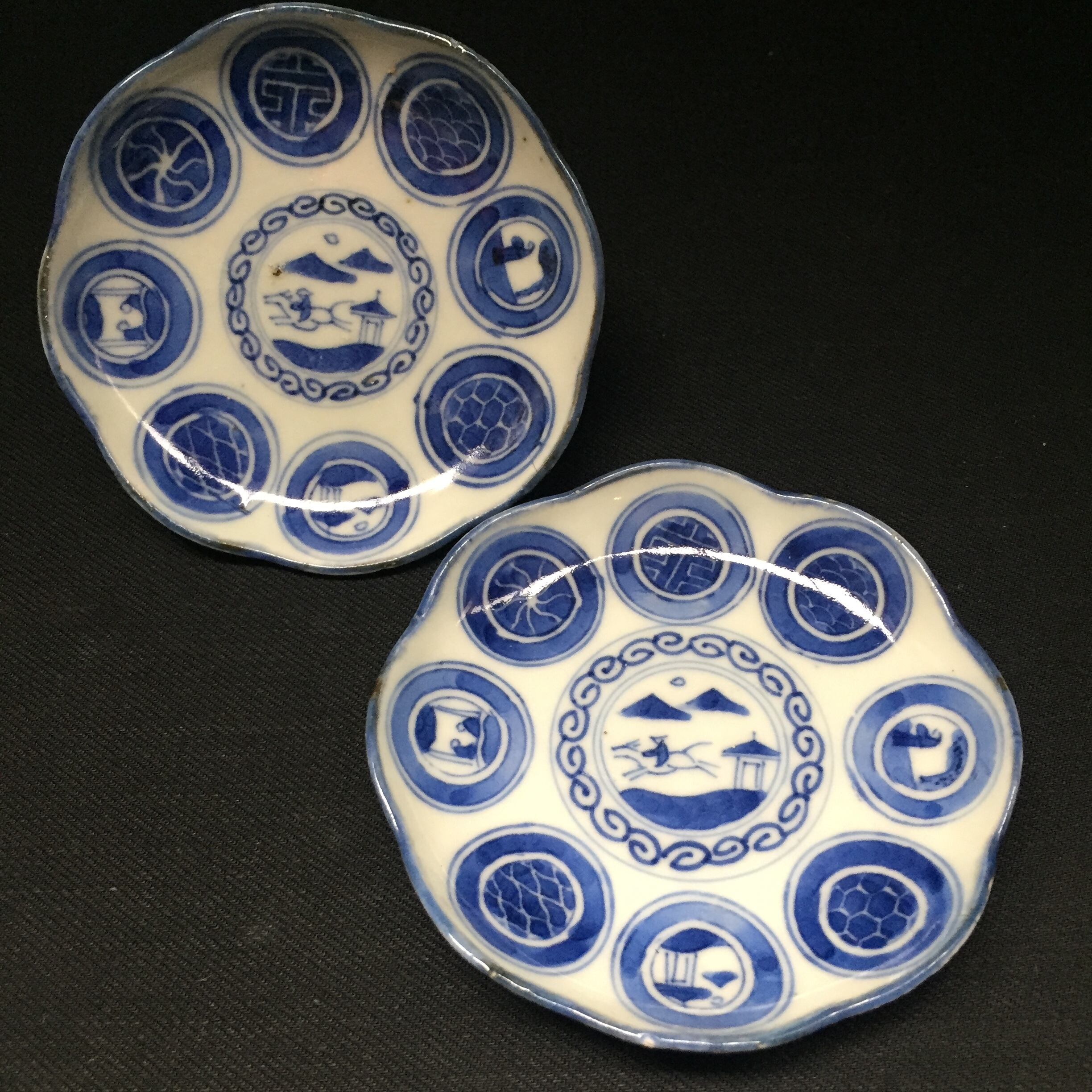 Japan Antique 大明年製 豆皿 江戸期 染付 古伊万里 馬 人物図 3寸皿 2枚 17.18