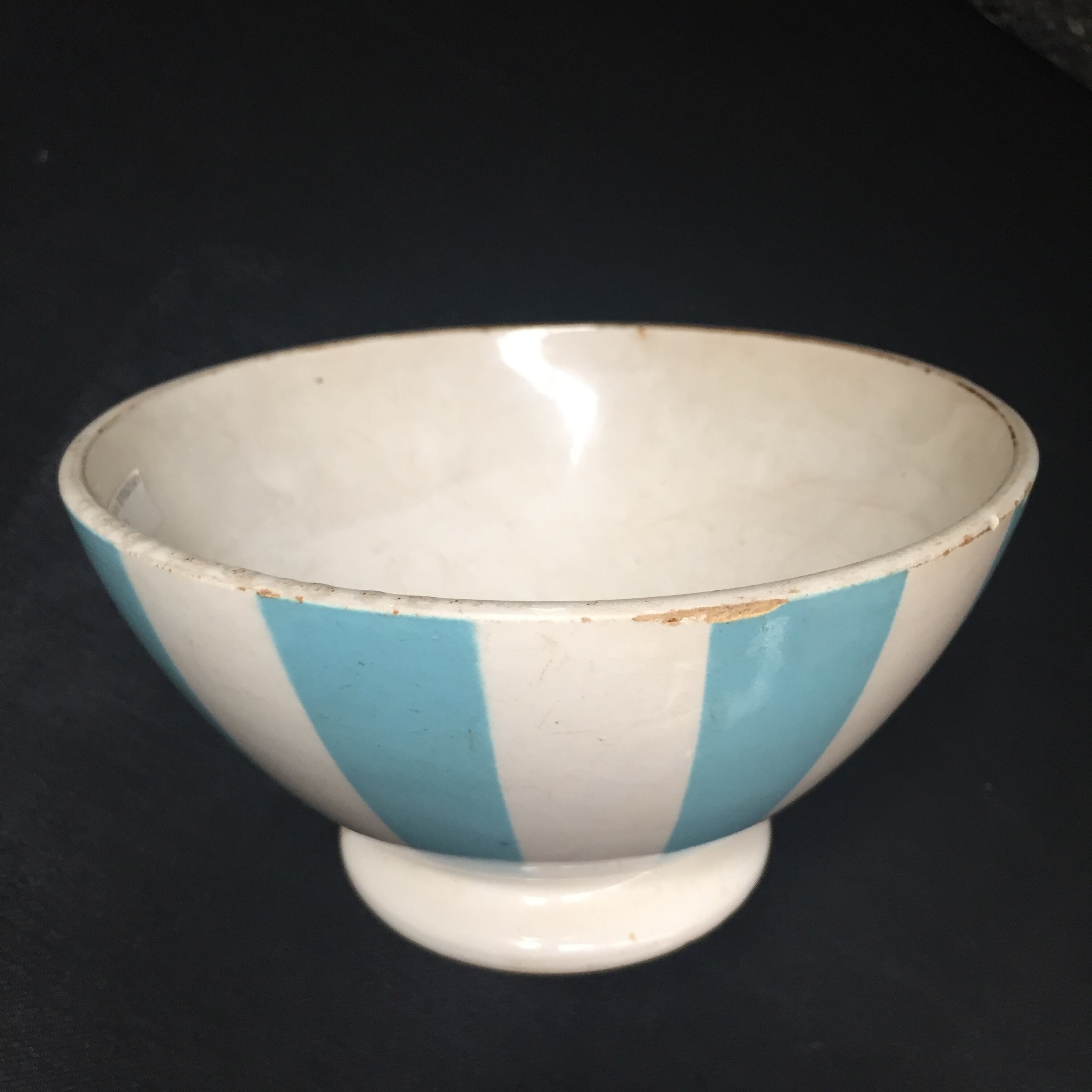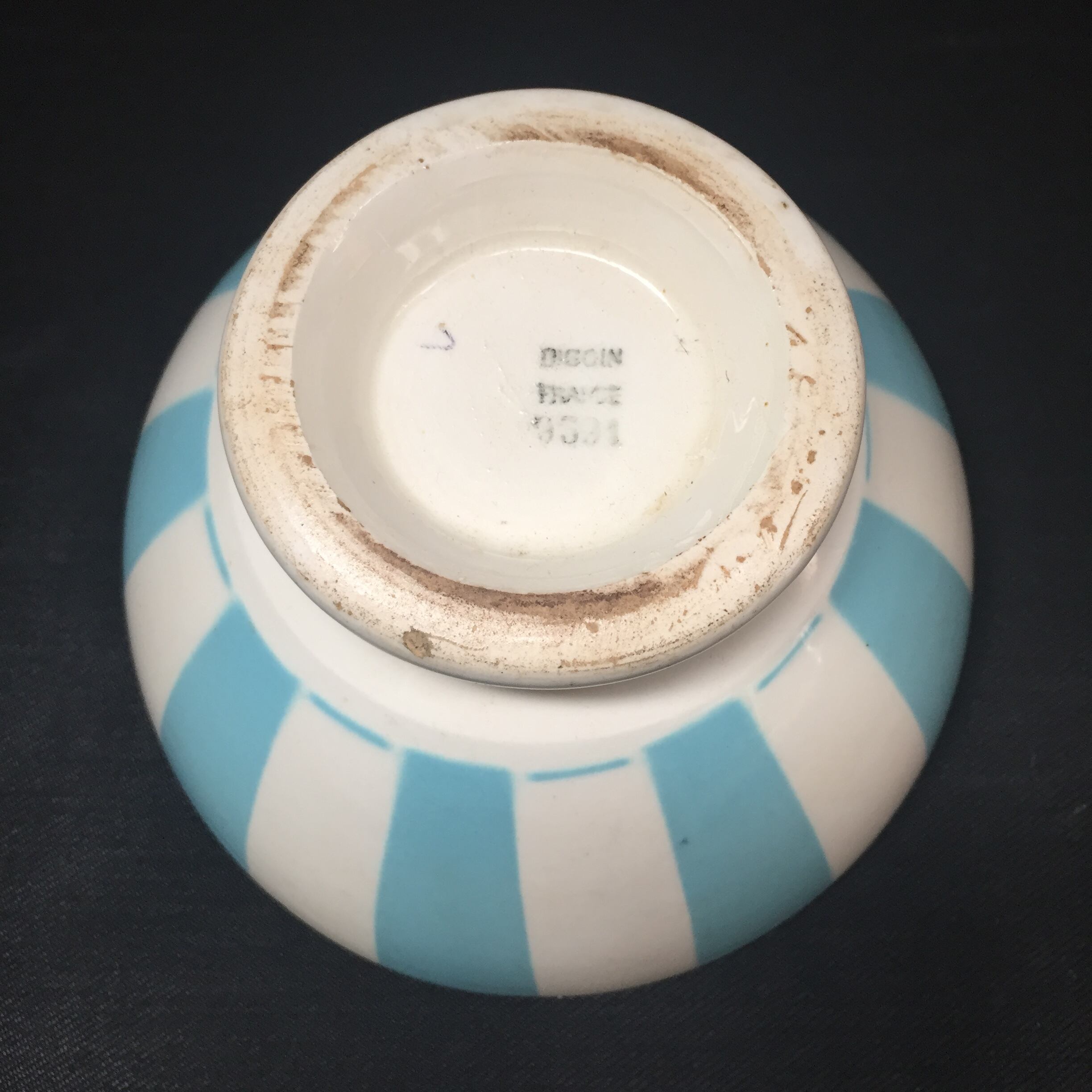 France Vintage Digoin ディゴワン カフェオレボウル ブルー ストライプ