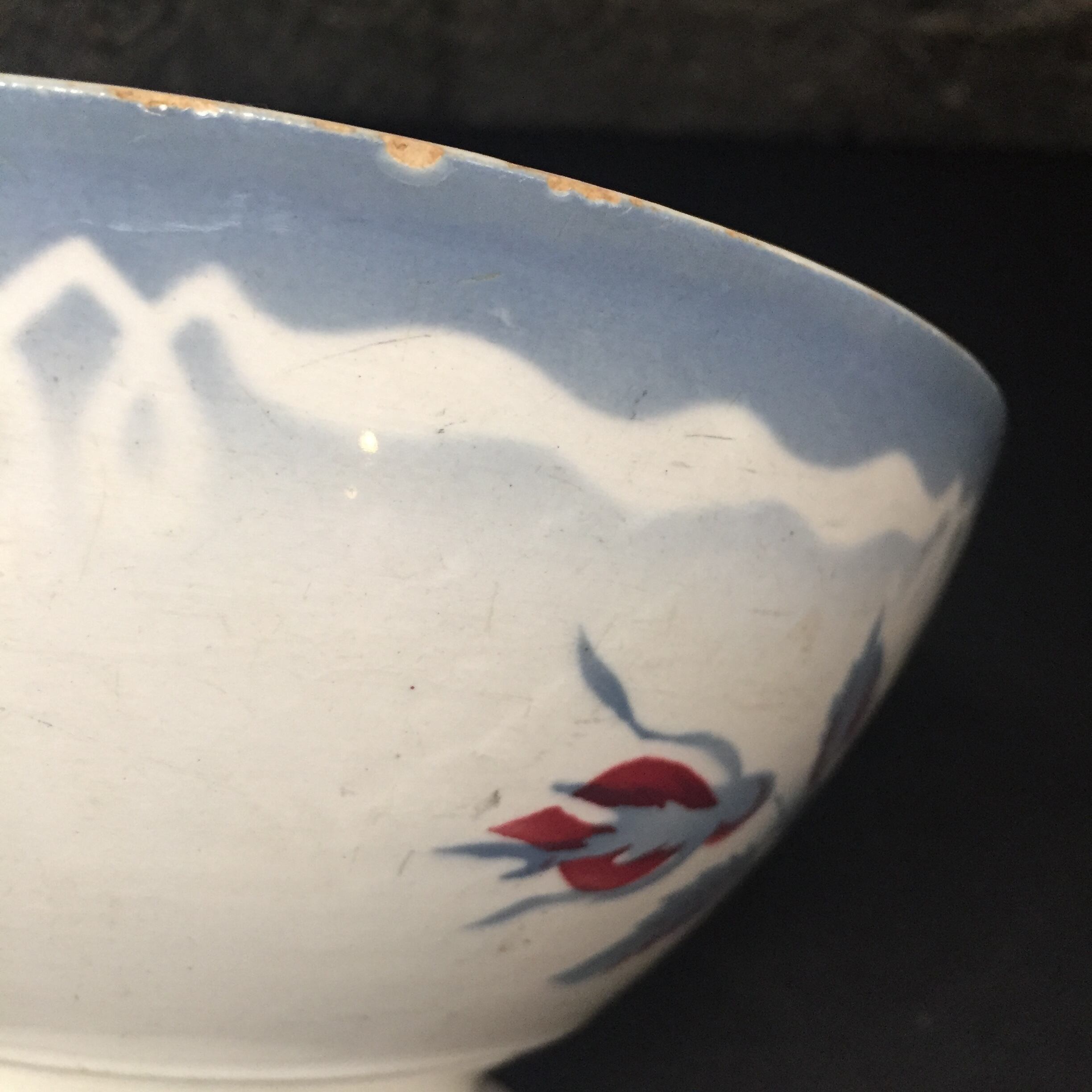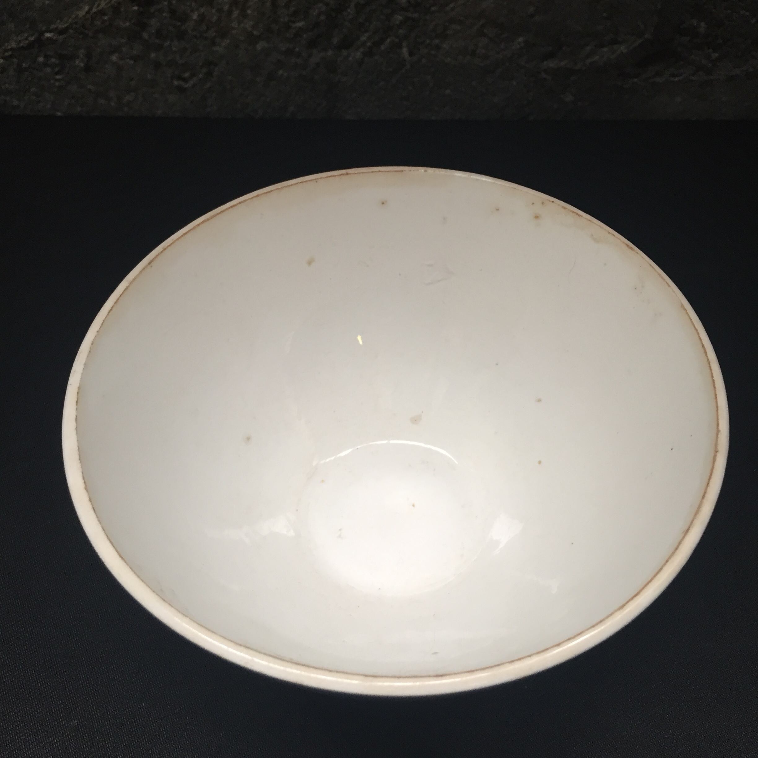 リム内側全体に僅かなシミや釉薬の剥がれ、微細なチップがありますが、