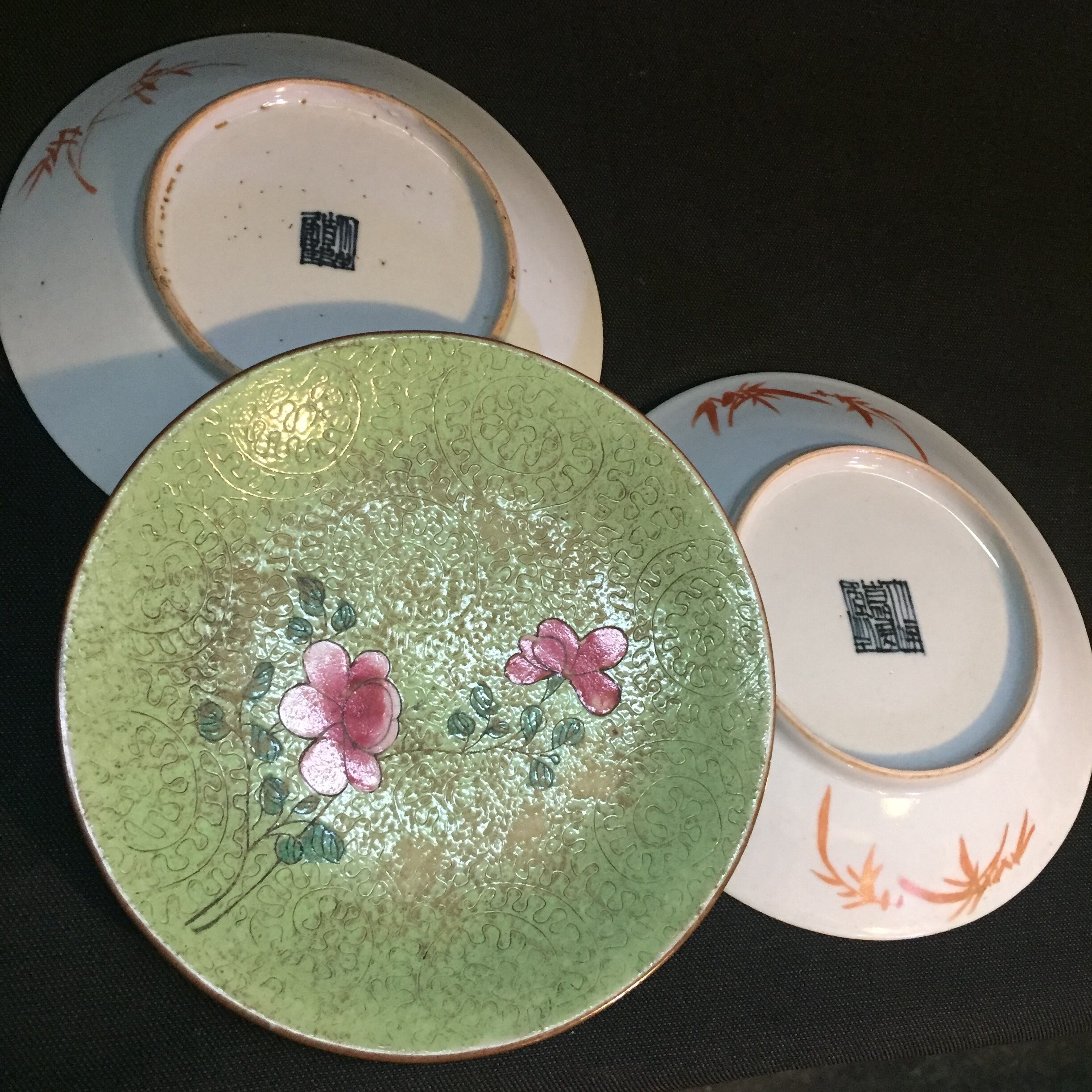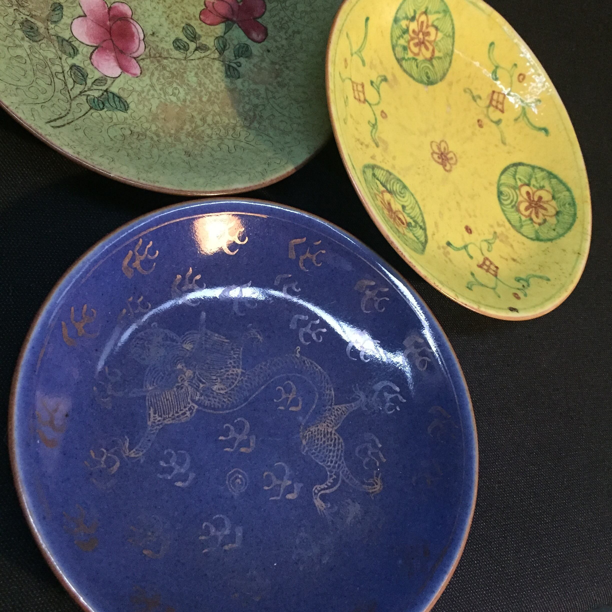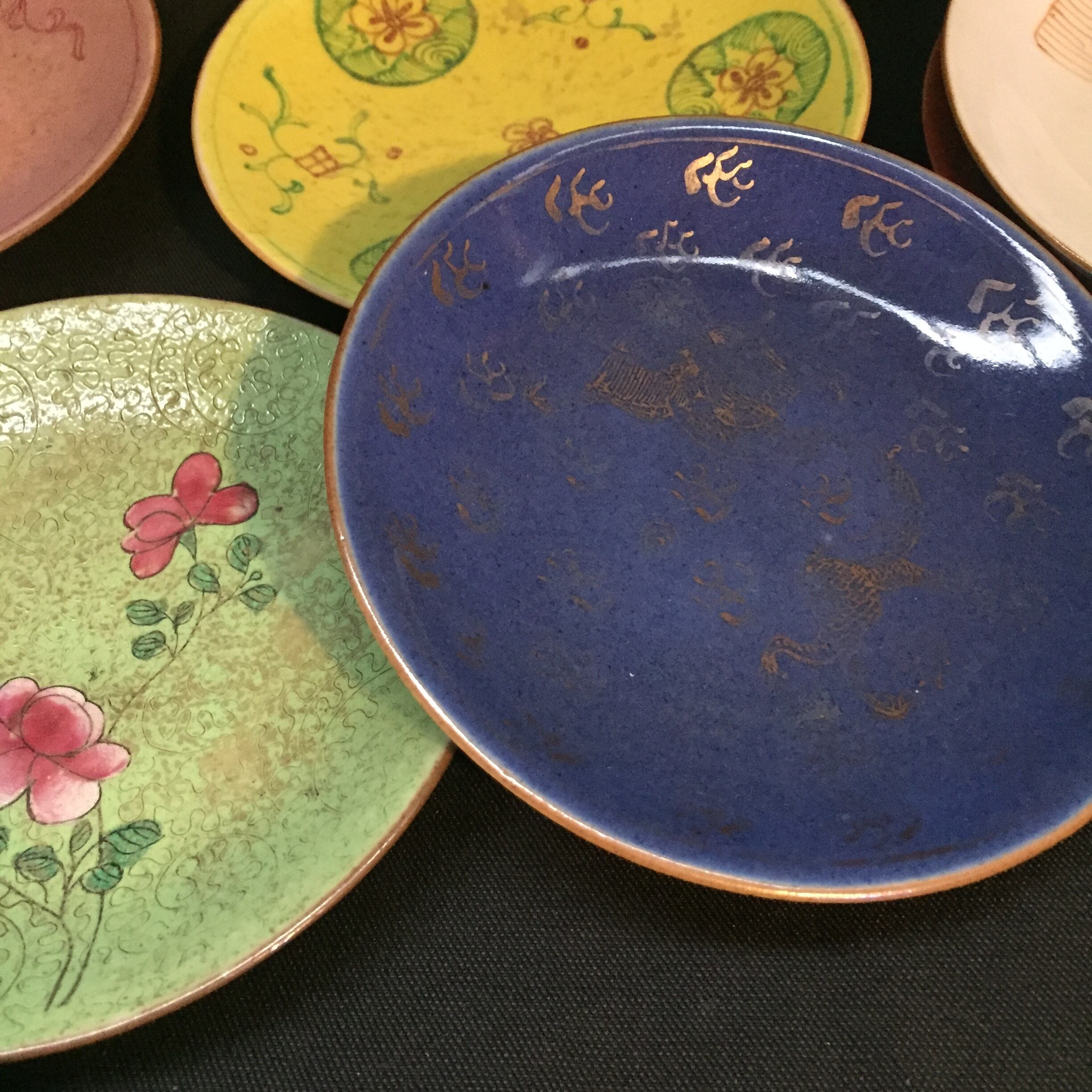 大清乾隆年製、大清嘉慶年製の十錦手図替わり皿9枚。