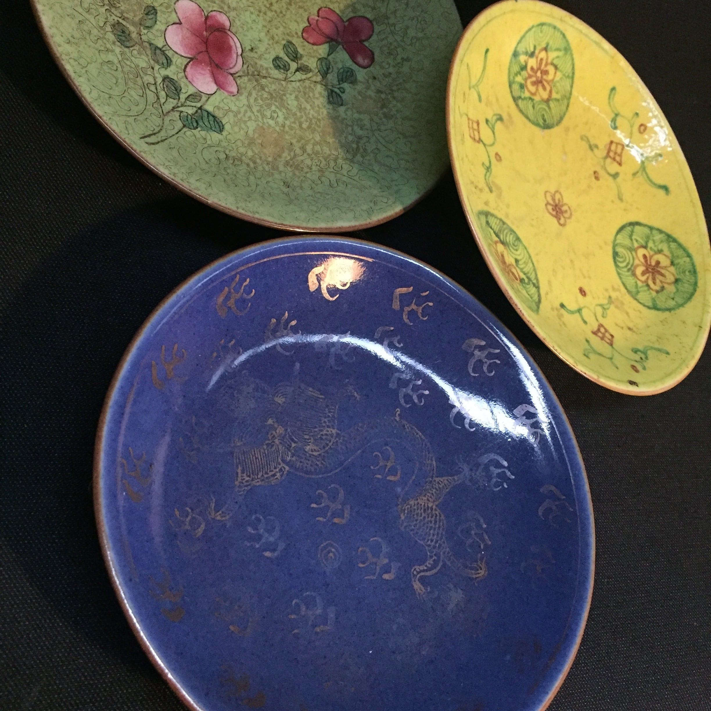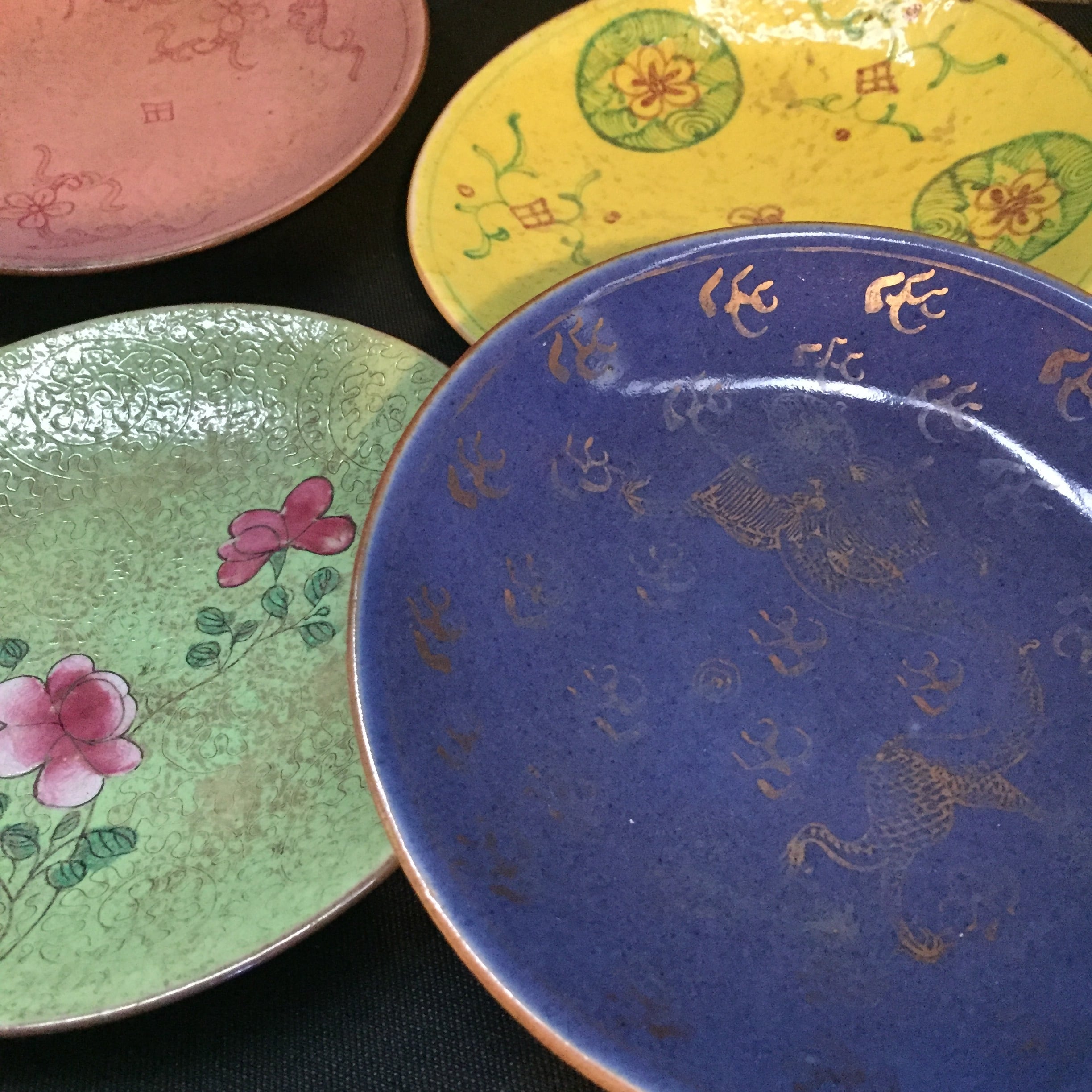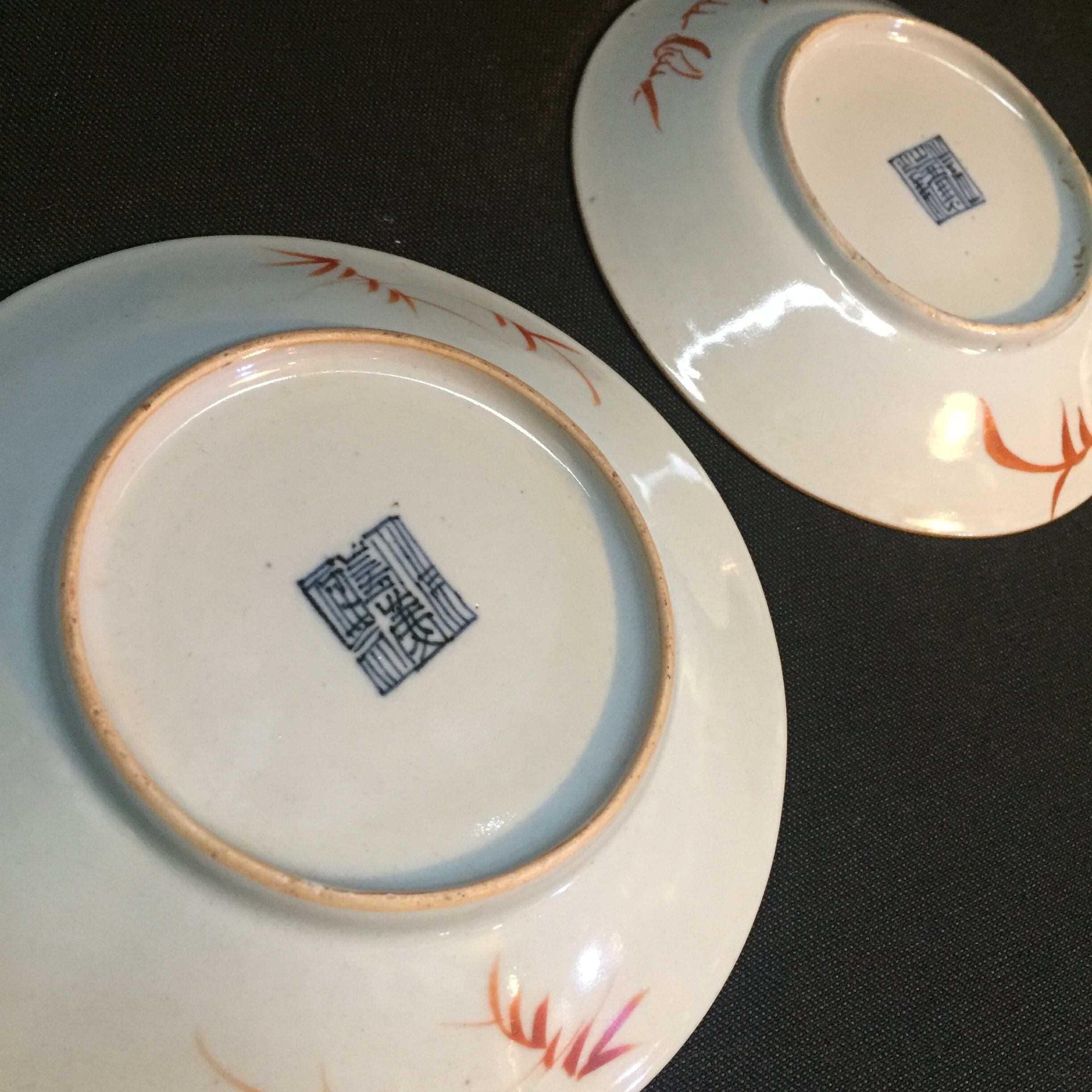 大清乾隆年製、大清嘉慶年製の十錦手図替わり皿9枚。