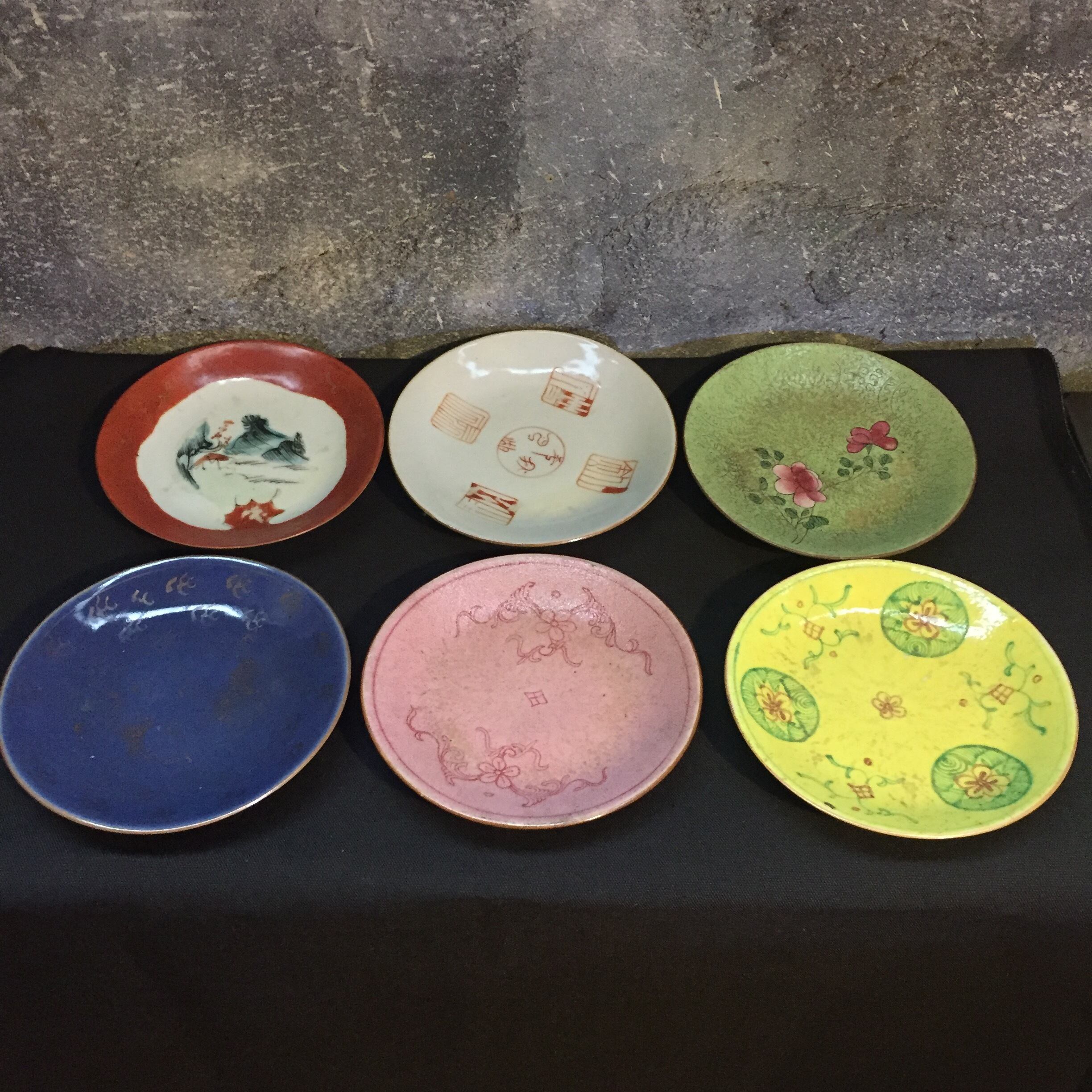China Antique 大清嘉慶年製 乾隆 中国古玩 十錦手 絵替 図替わり皿 粉彩 唐物 6枚