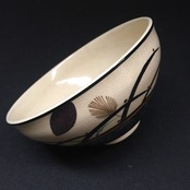器の上部と下部、そして全面にバランスよく描かれた黒、