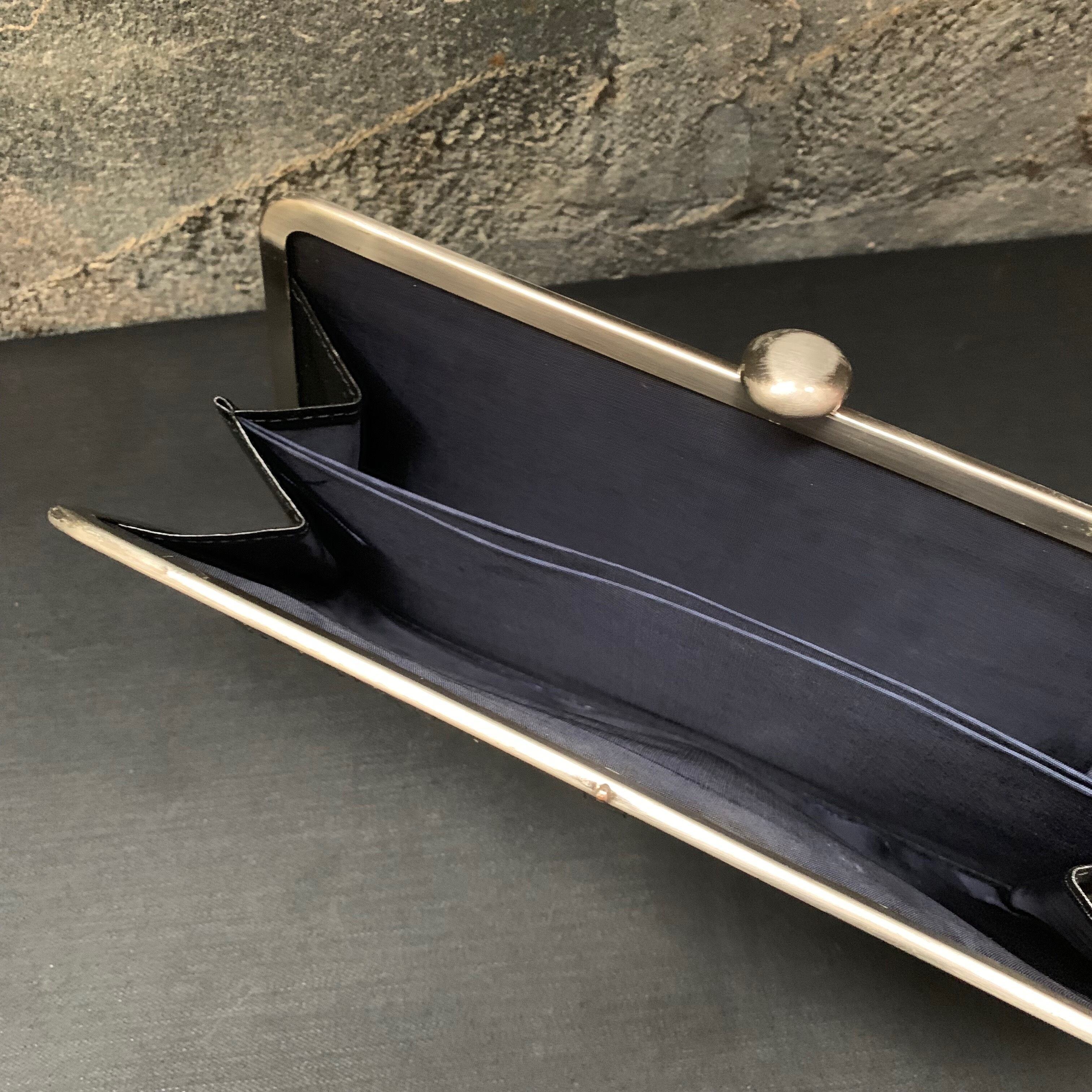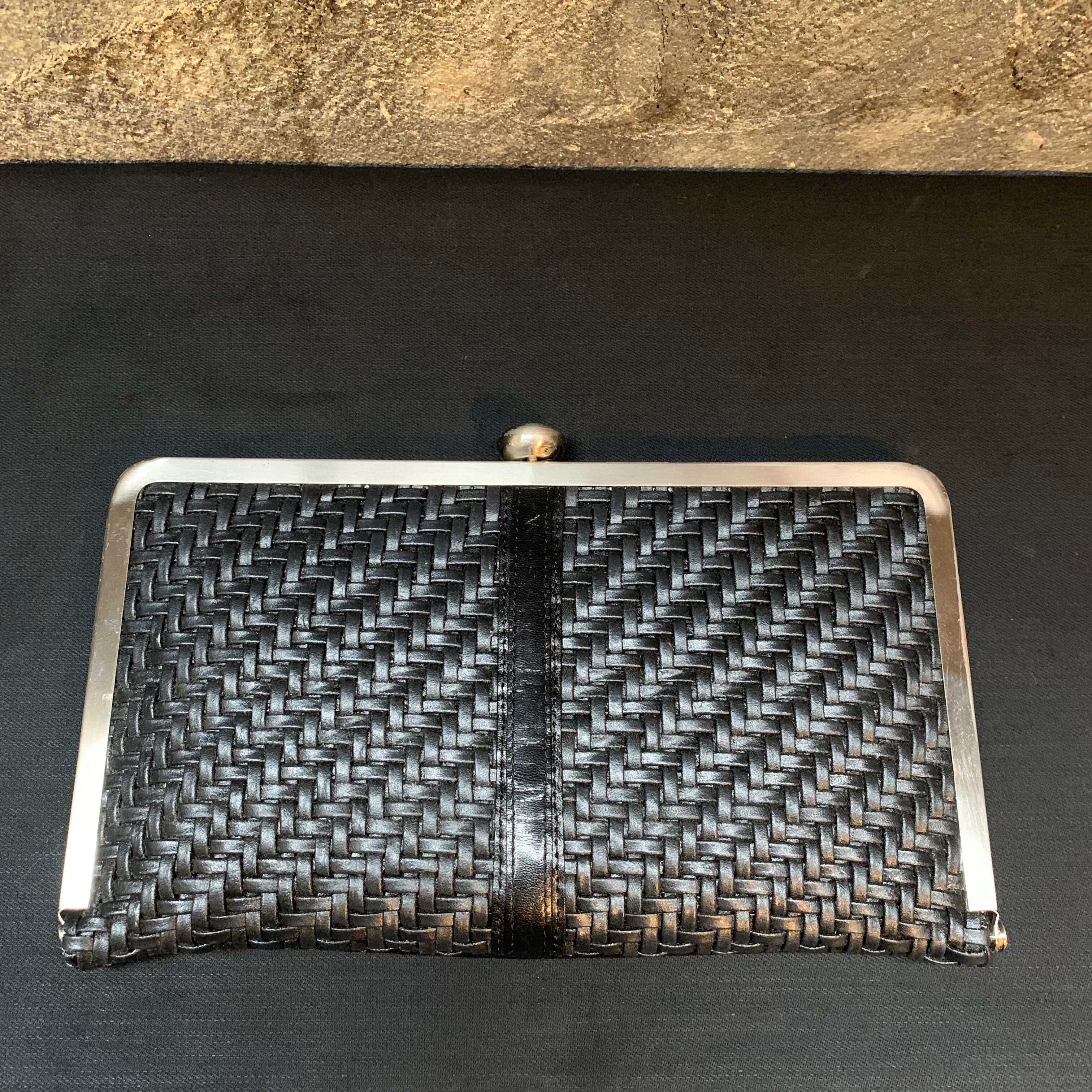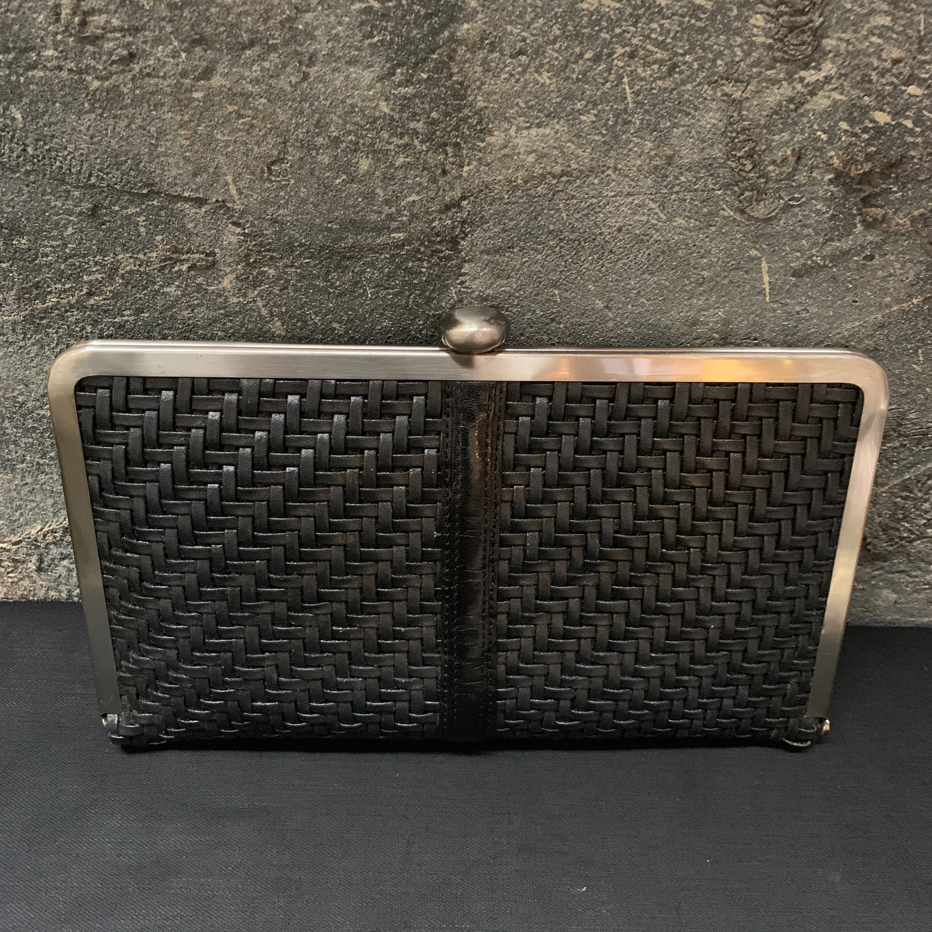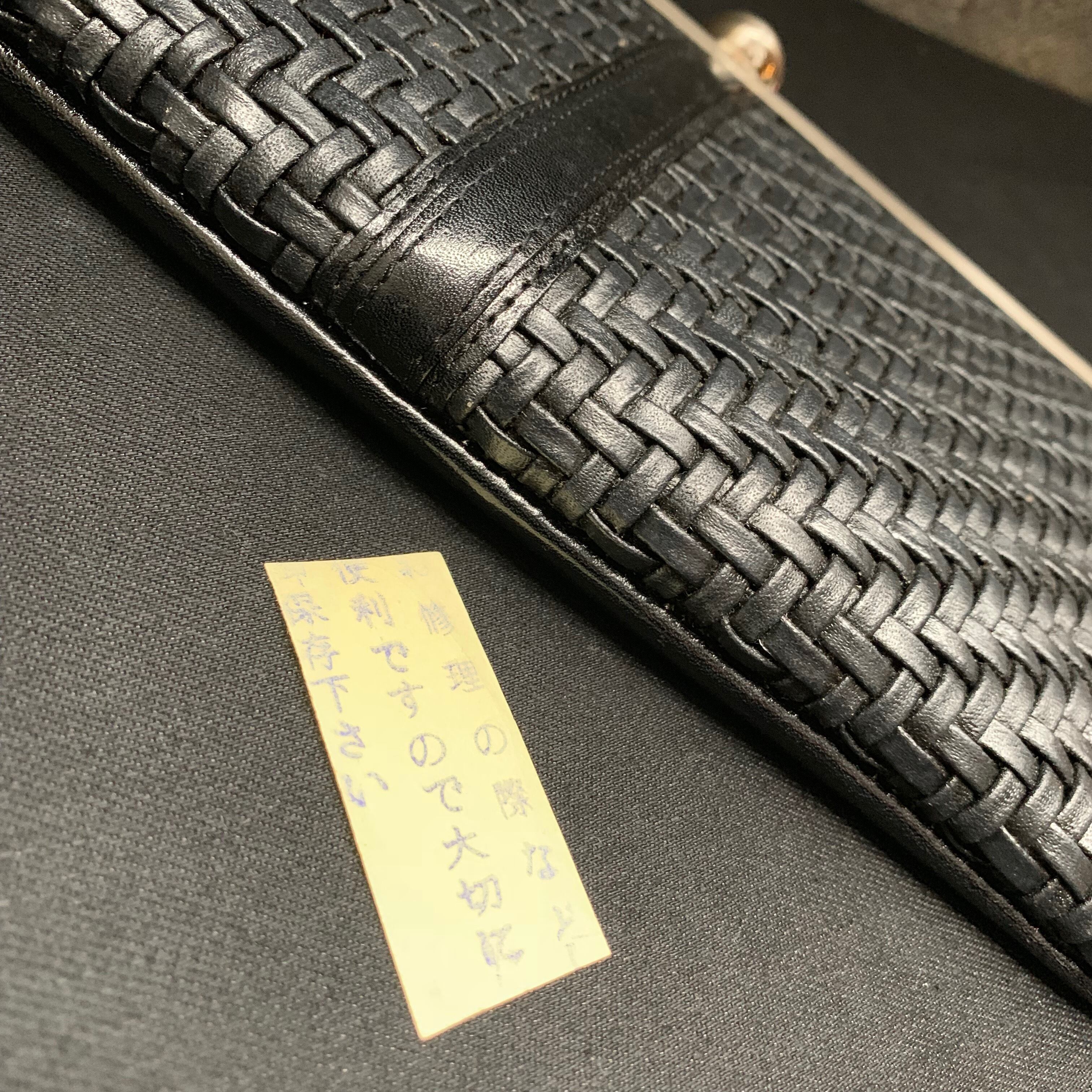 Japan Vintage 本革 クラッチバッグ がま口 編み込み ハンドバッグ イントレチャート