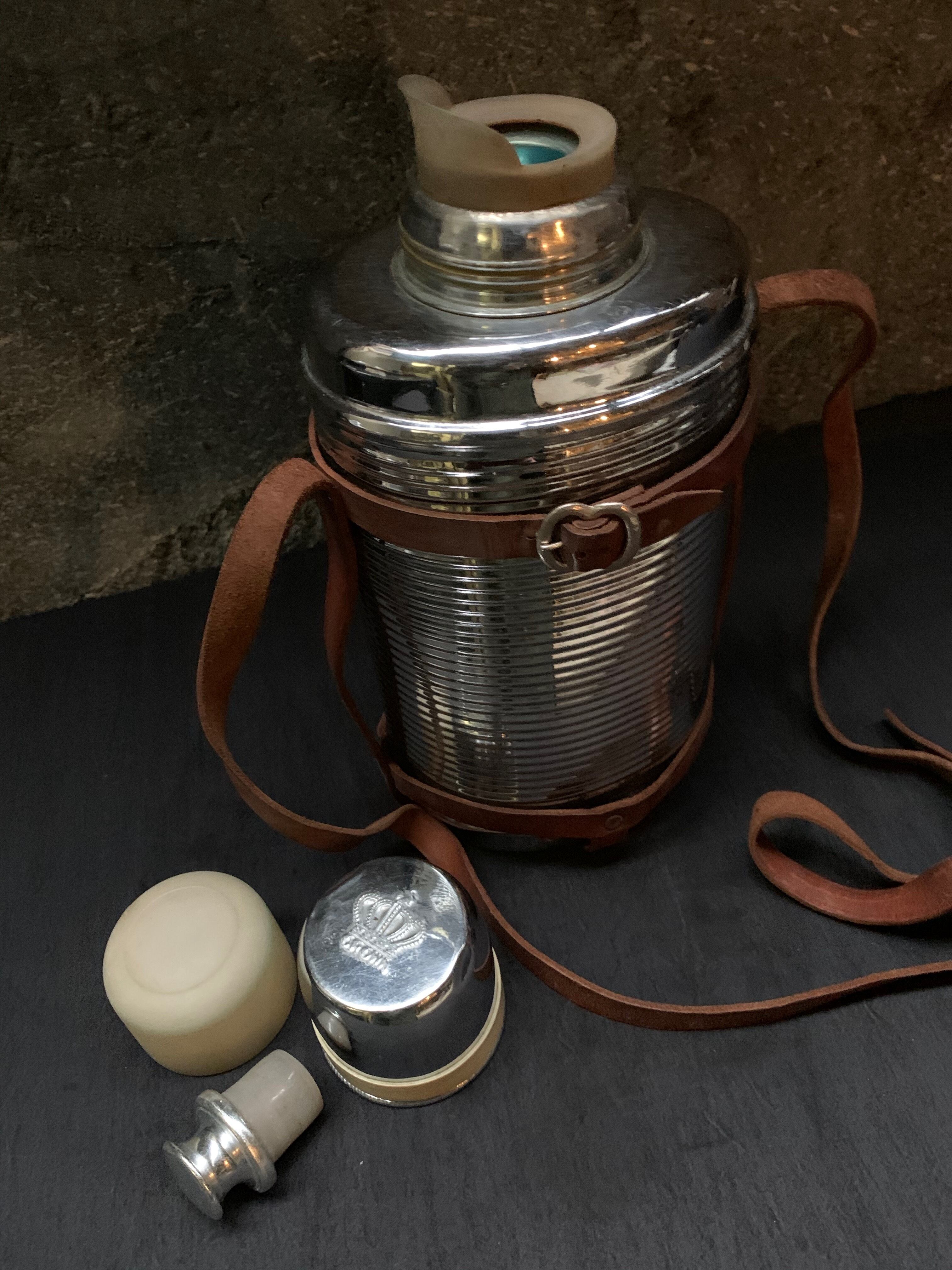 Vintage vacuum bottle 革ホルダー付き 魔法瓶 水筒 ポット