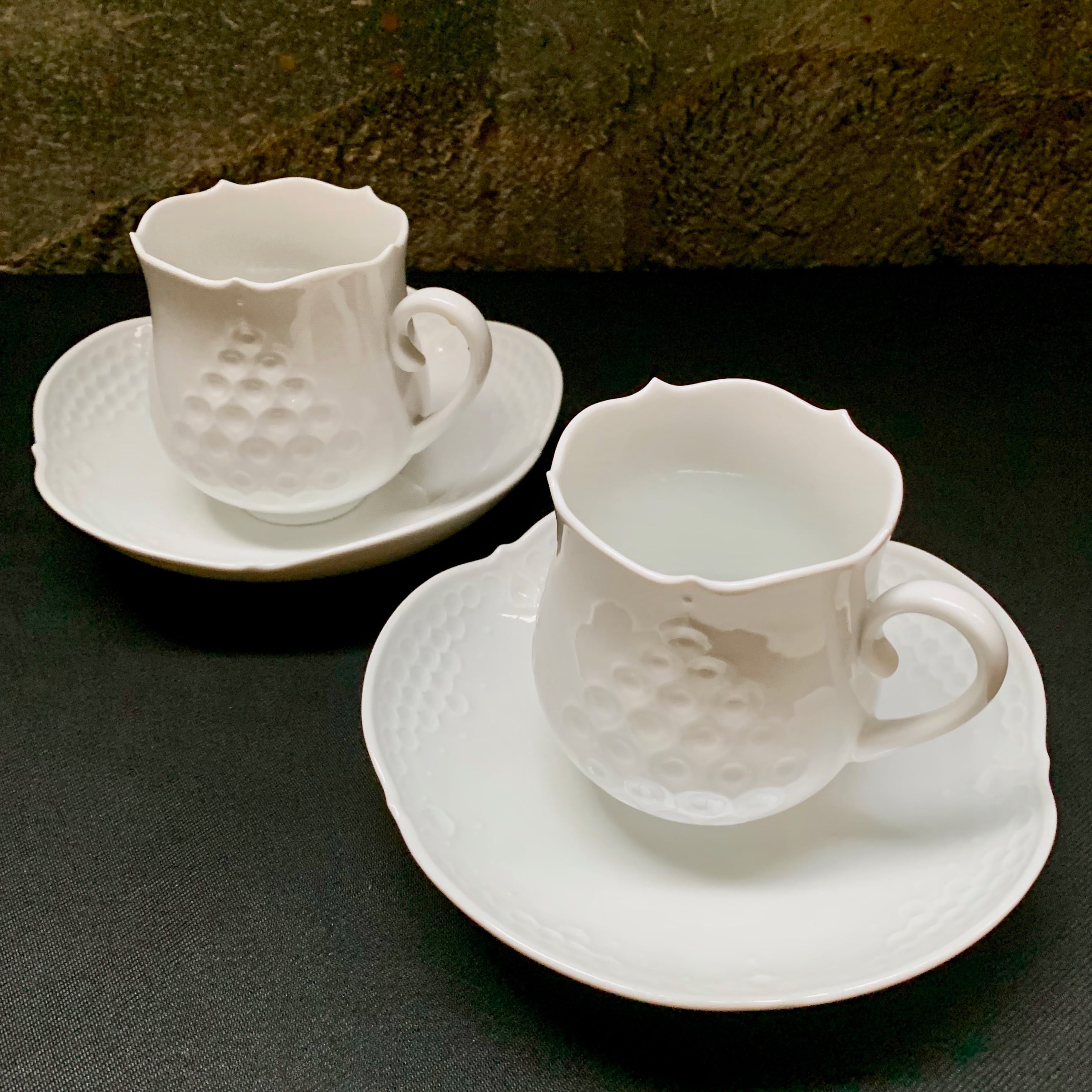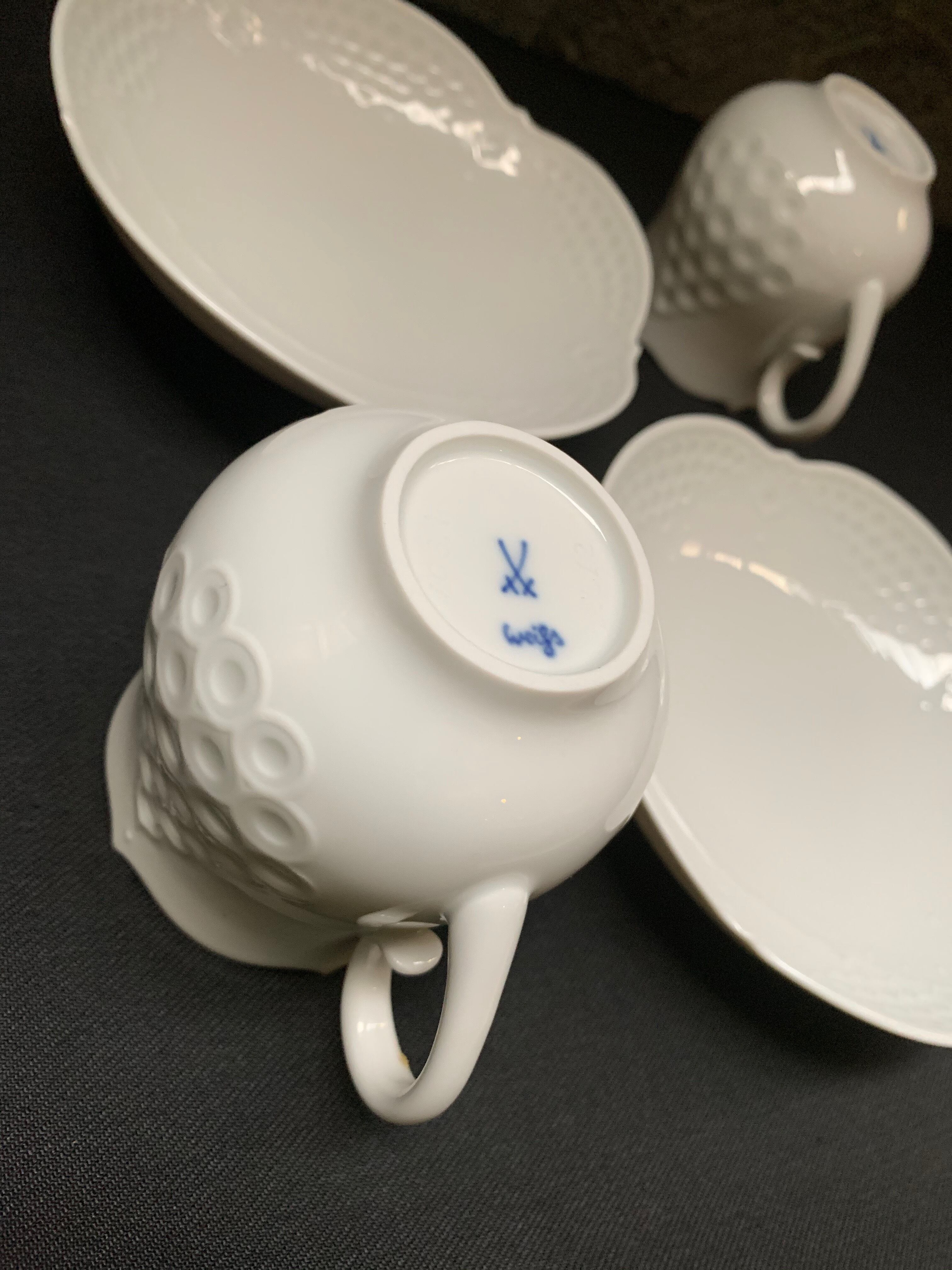 Germany Vintage Meissen マイセン ホワイトレリーフ ペア コーヒー カップ&ソーサー 2客 未使用美品