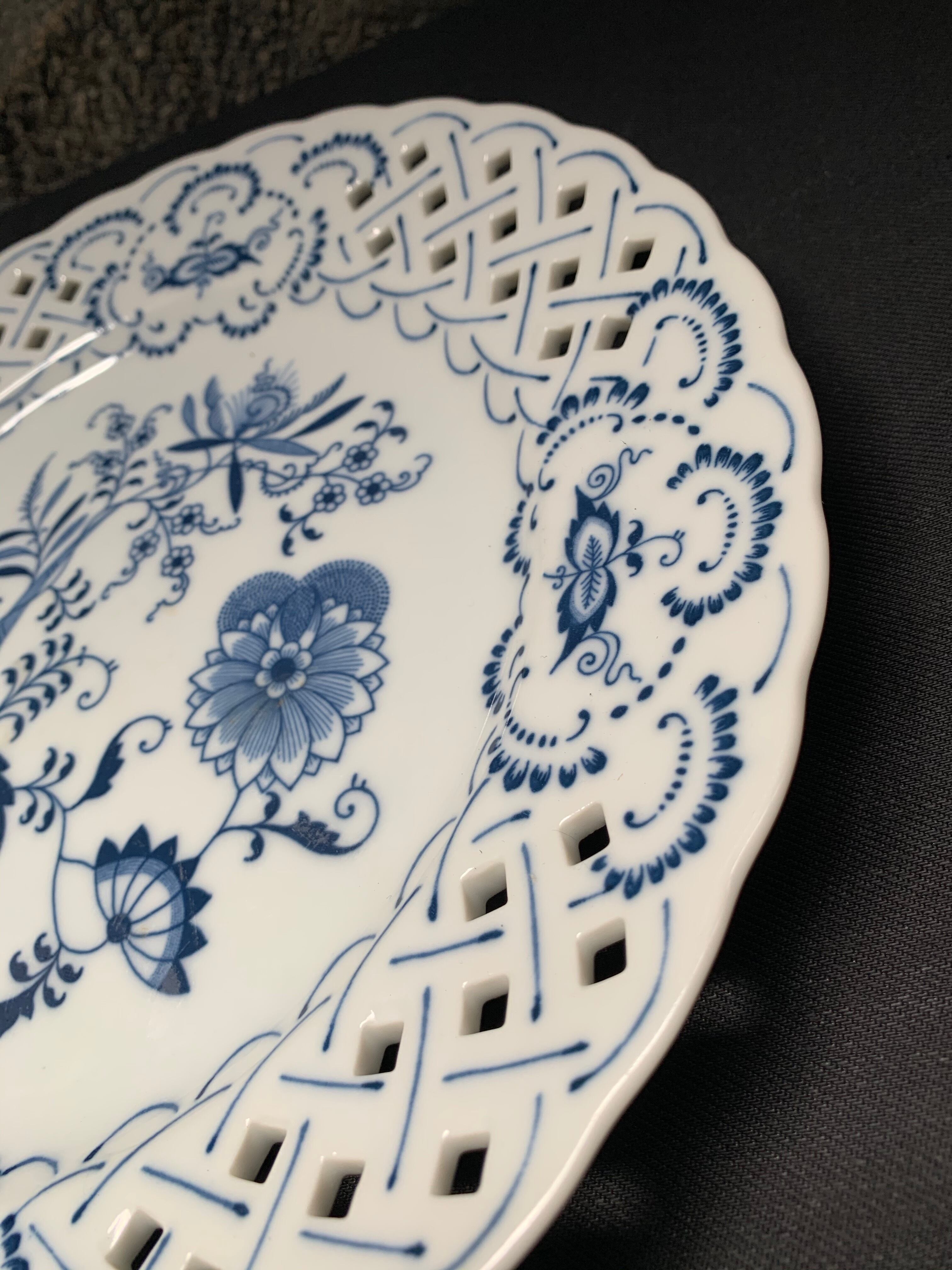 Japan Vintage Blue Danube ブルーダニューブ 透かし レース プレート 大皿 美品