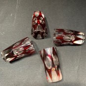 真紅の水玉模様が愛らしい厚手の切子ガラス4客セット。