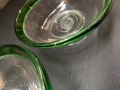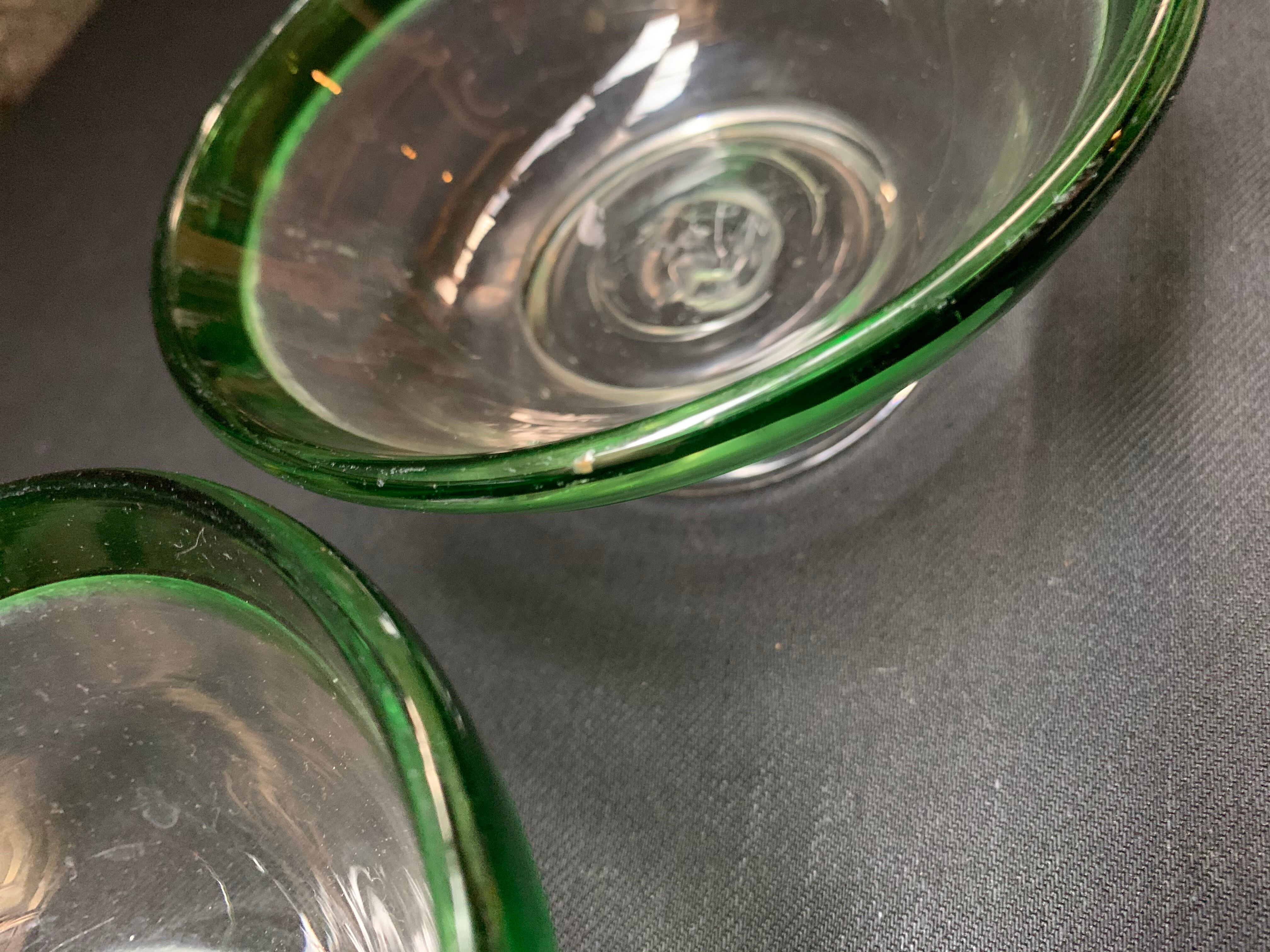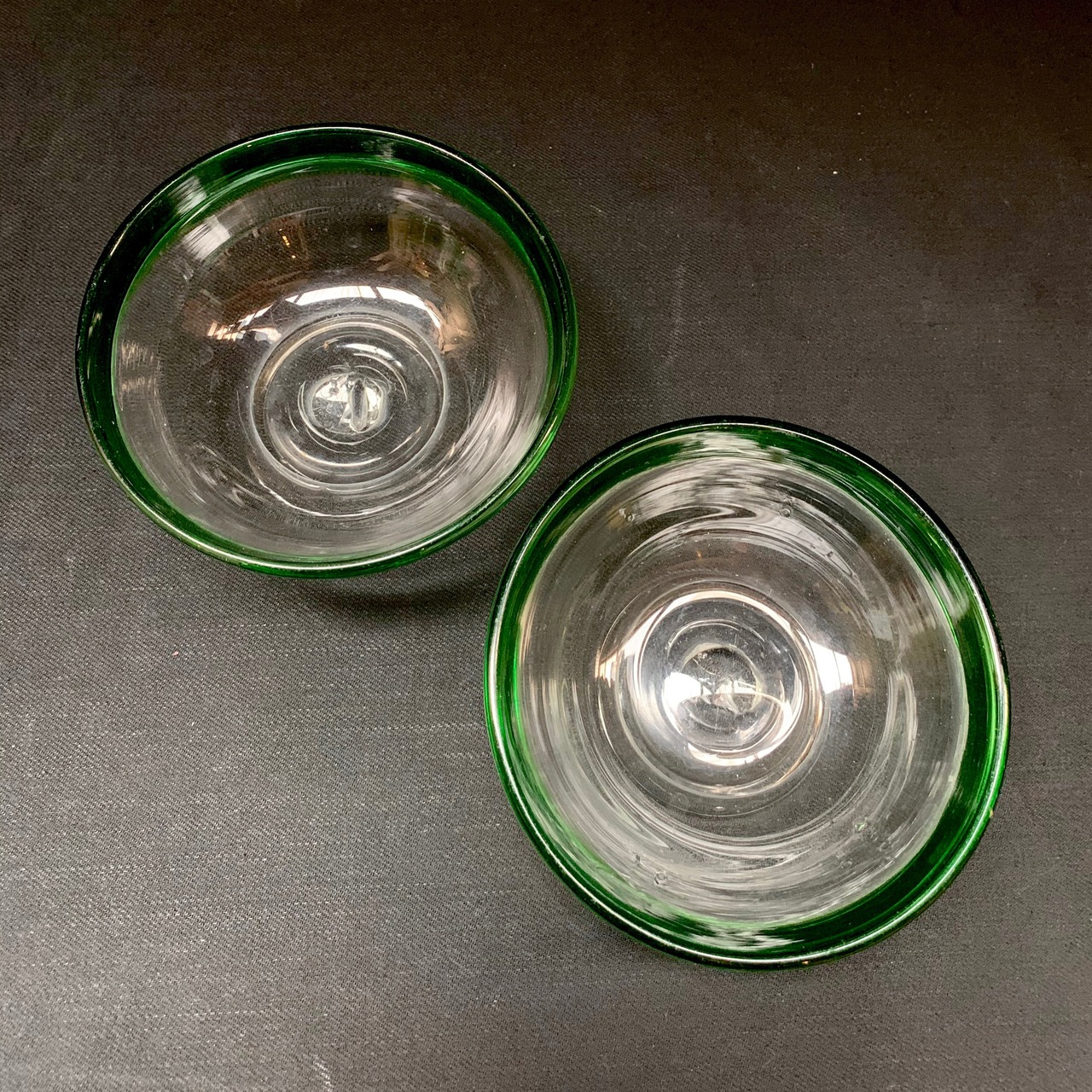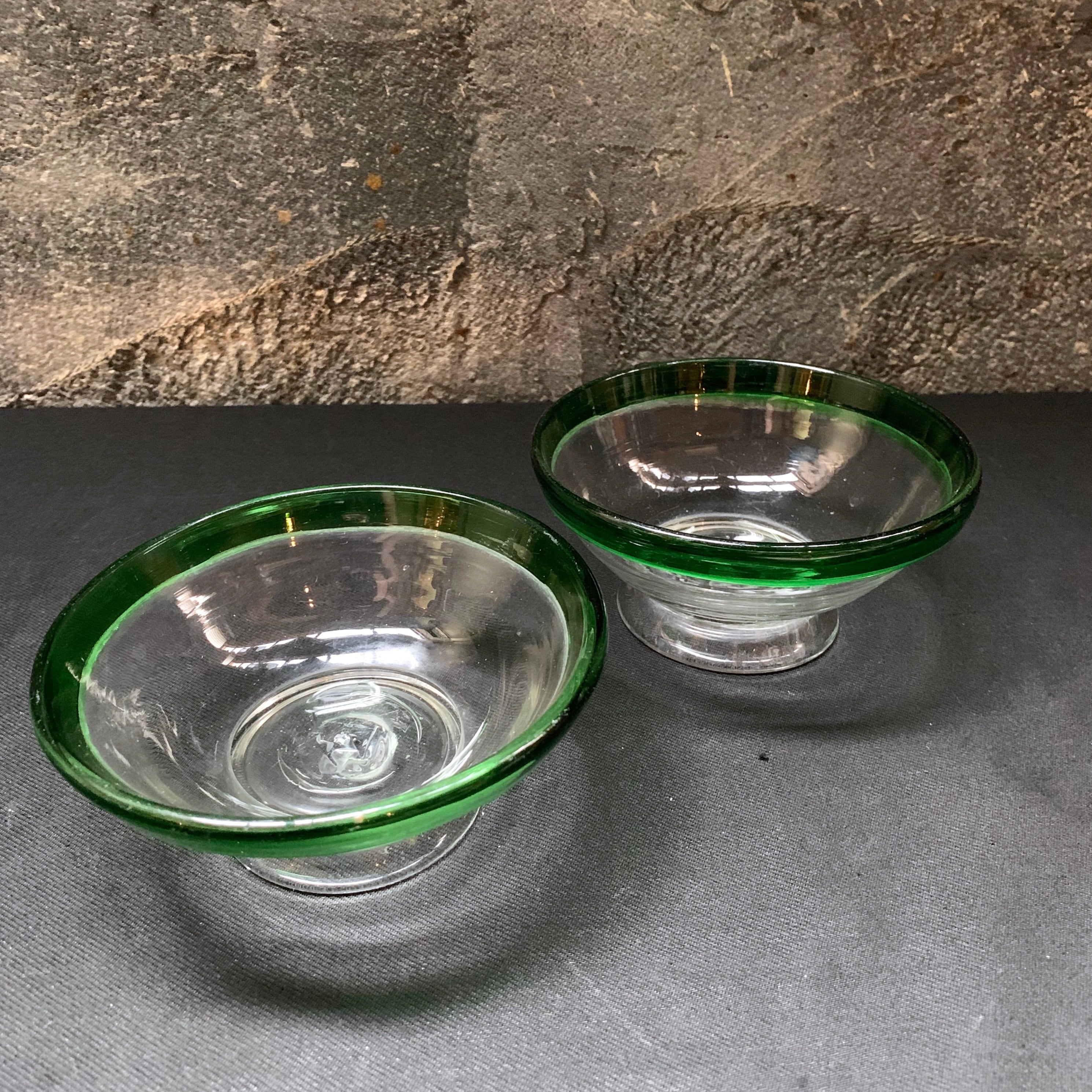Japan Vintage 氷コップ 大正 ガラス 吹き 気泡 ボウル 2客 アンティーク 緑縁 骨董 レトロ