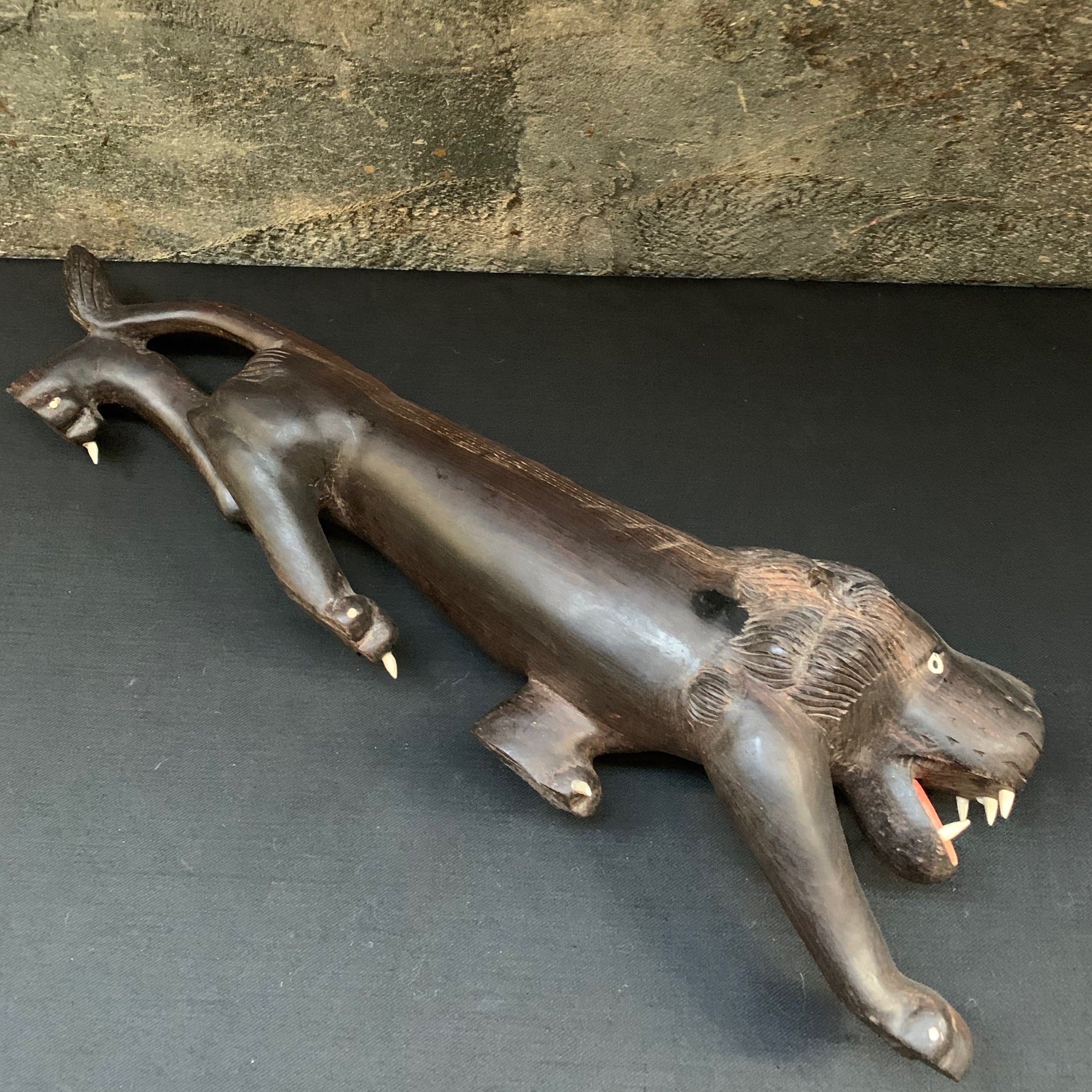 Africa antique 木製 木彫 ライオン オブジェ アフリカ 牙 爪 彫刻 アンティーク