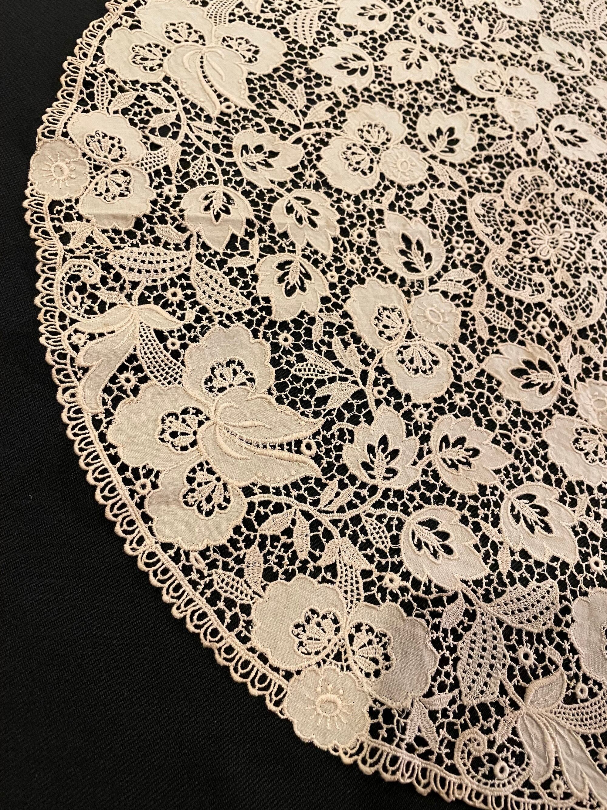 フランス発、アンティークレースの円形テーブルクロス。