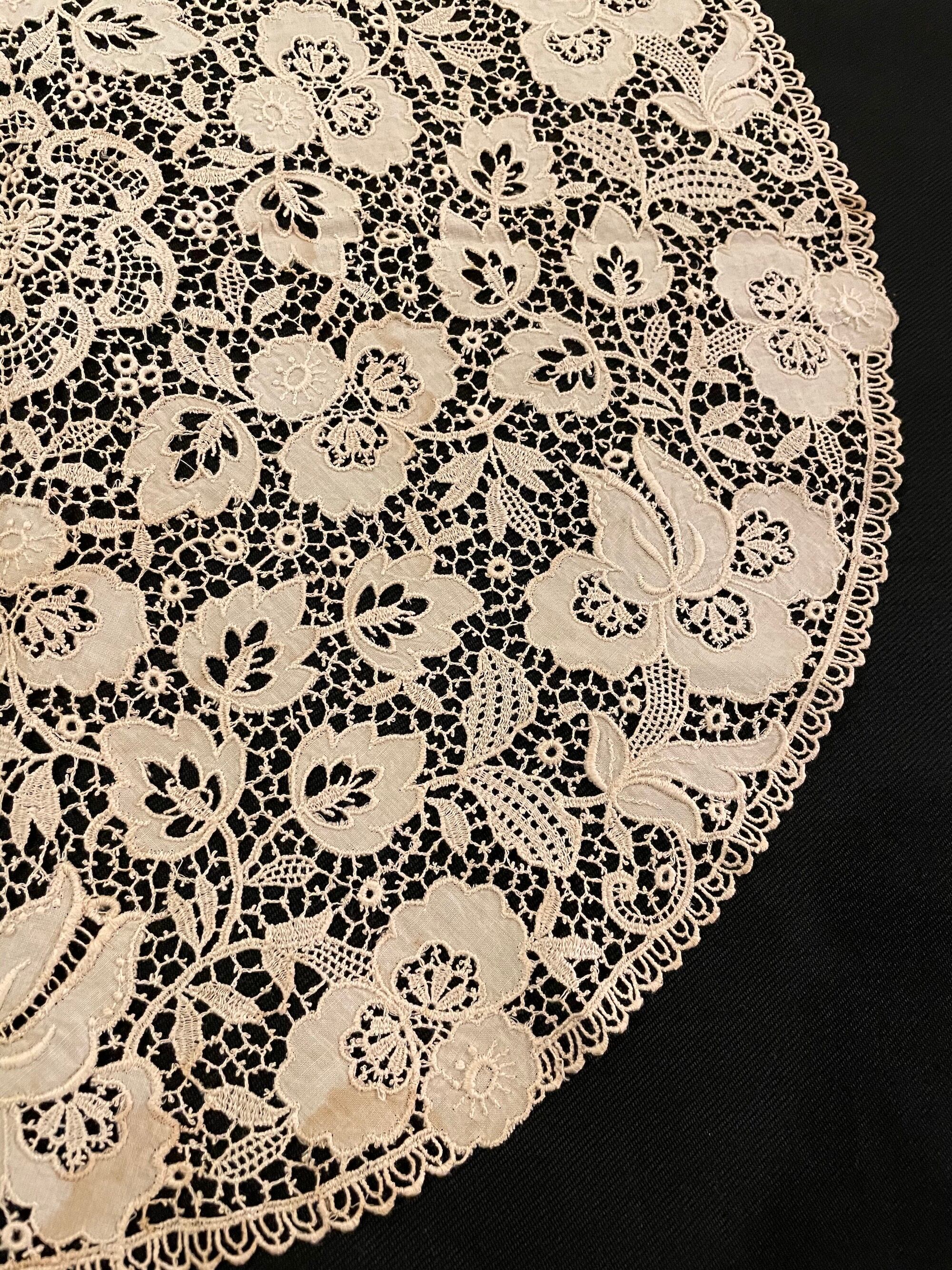 France Antique レース 円形 ラウンド テーブル クロス ドイリー フランス アンティーク