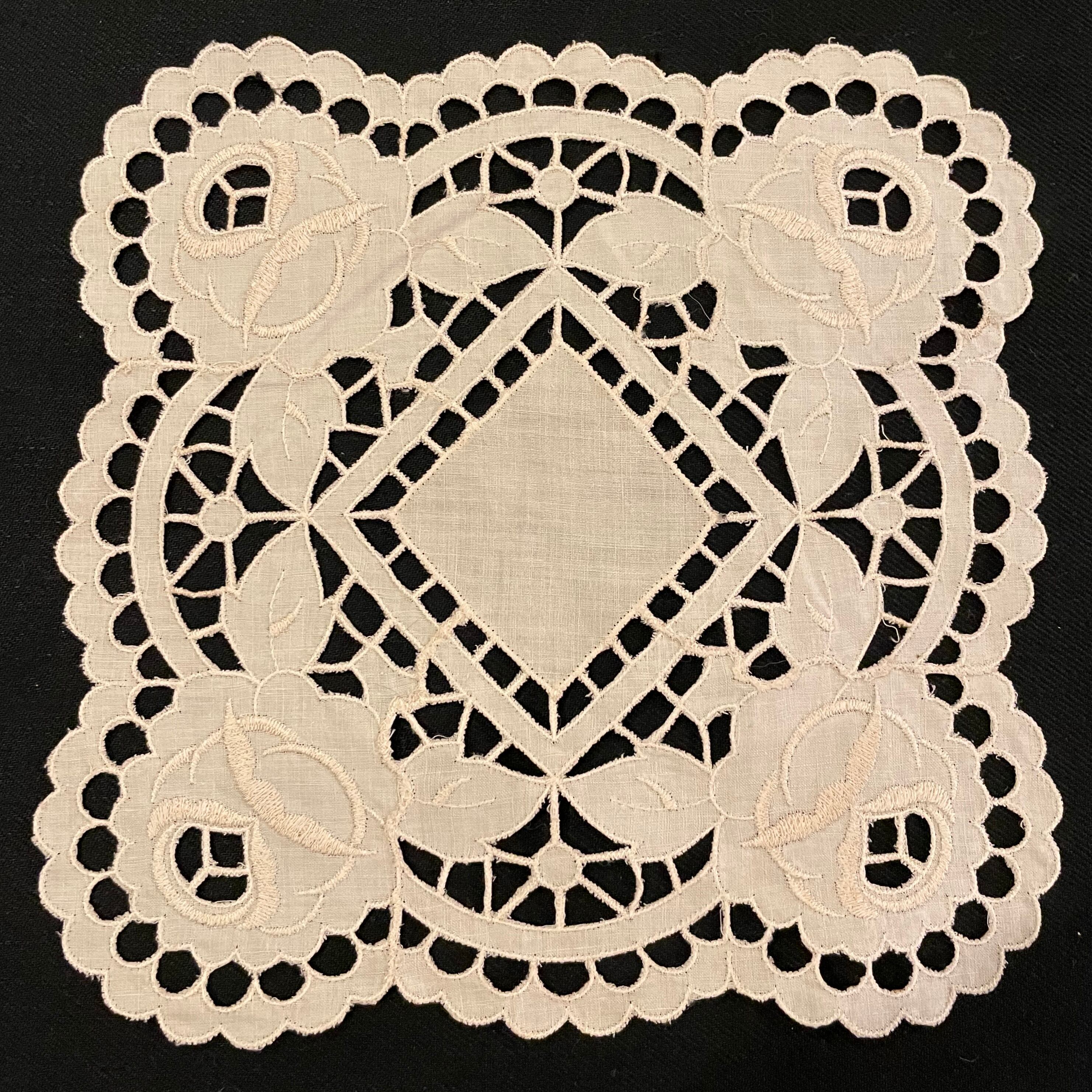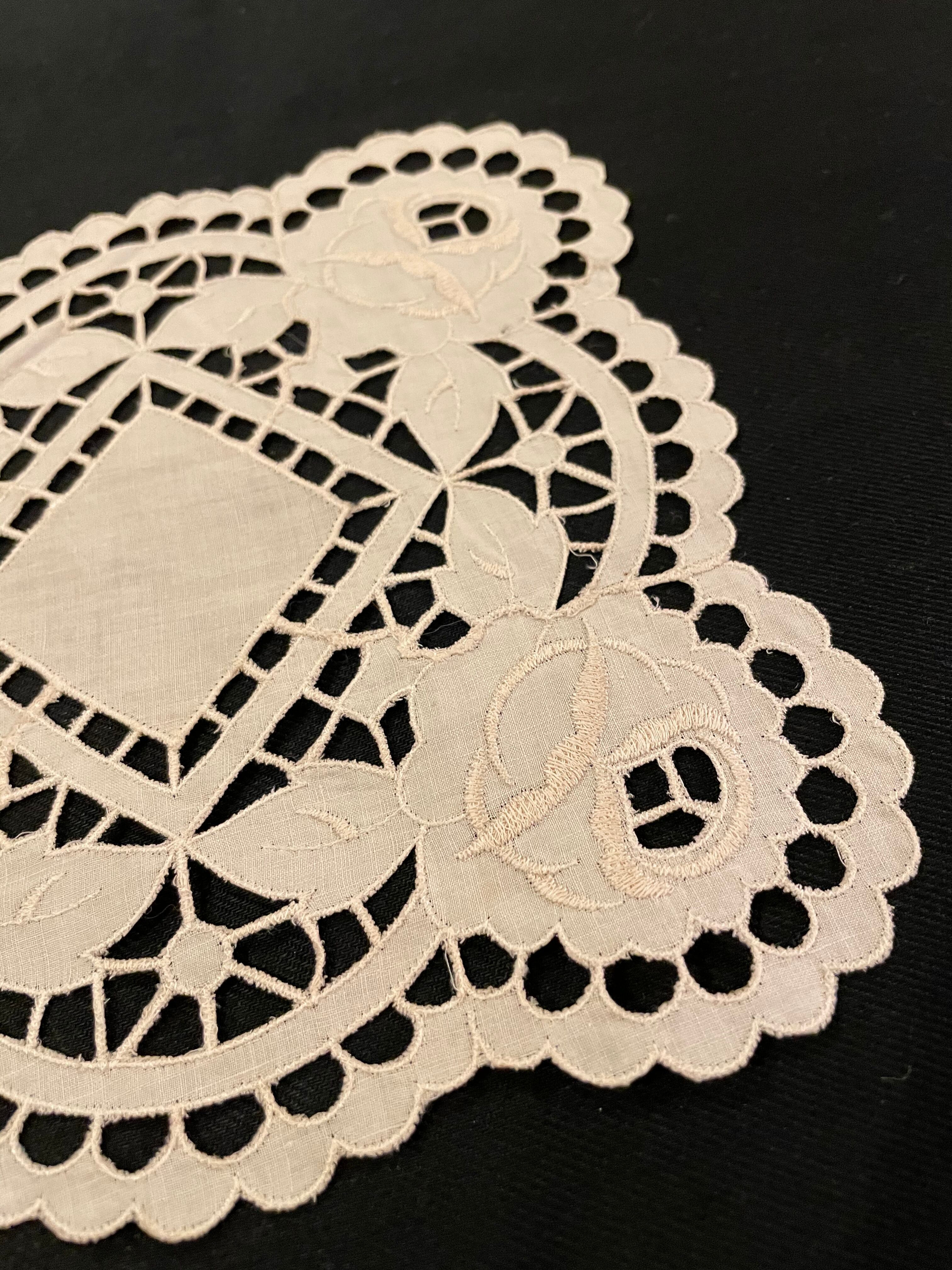 フランス アンティーク レース スクエア ラウンド ドイリー クロス 刺繍