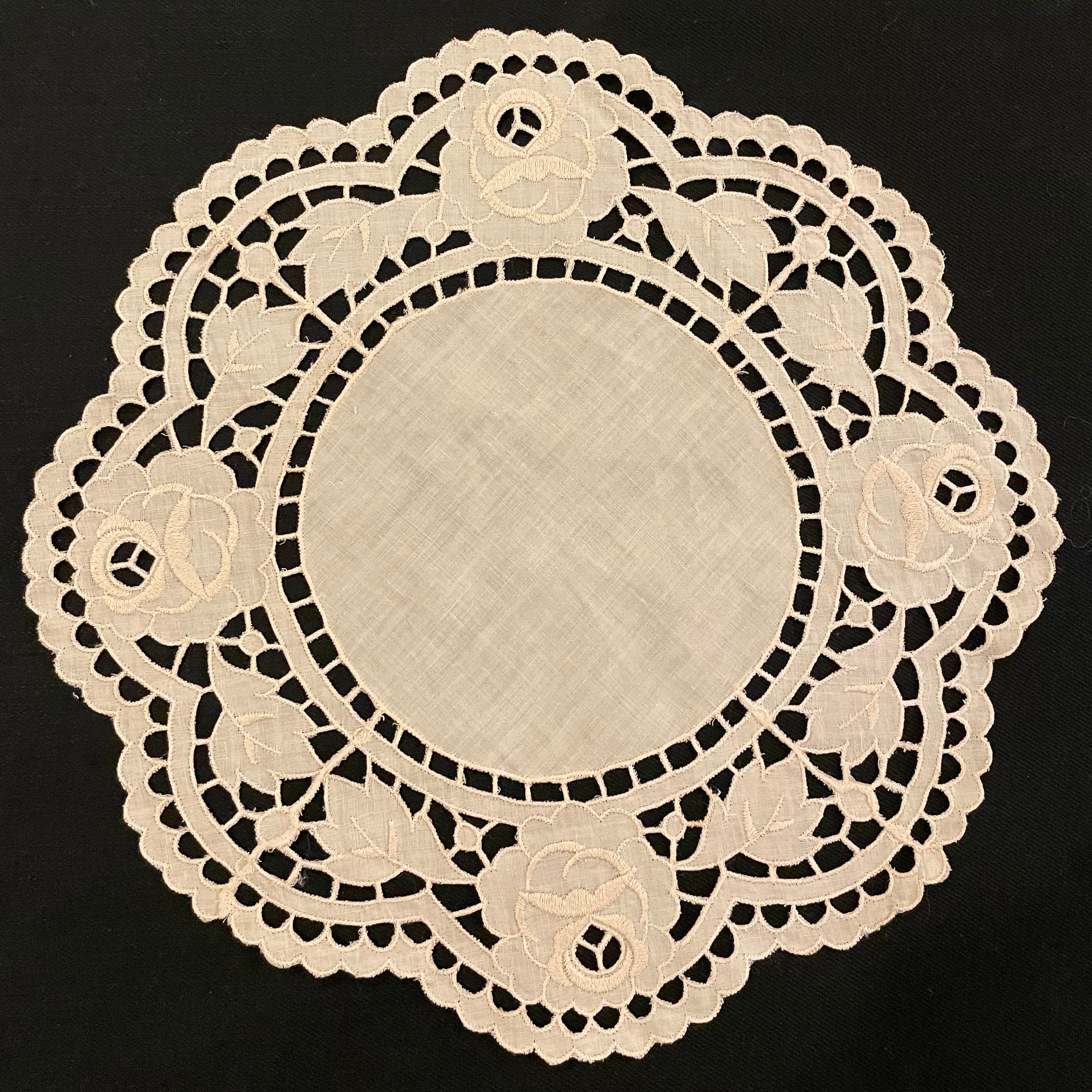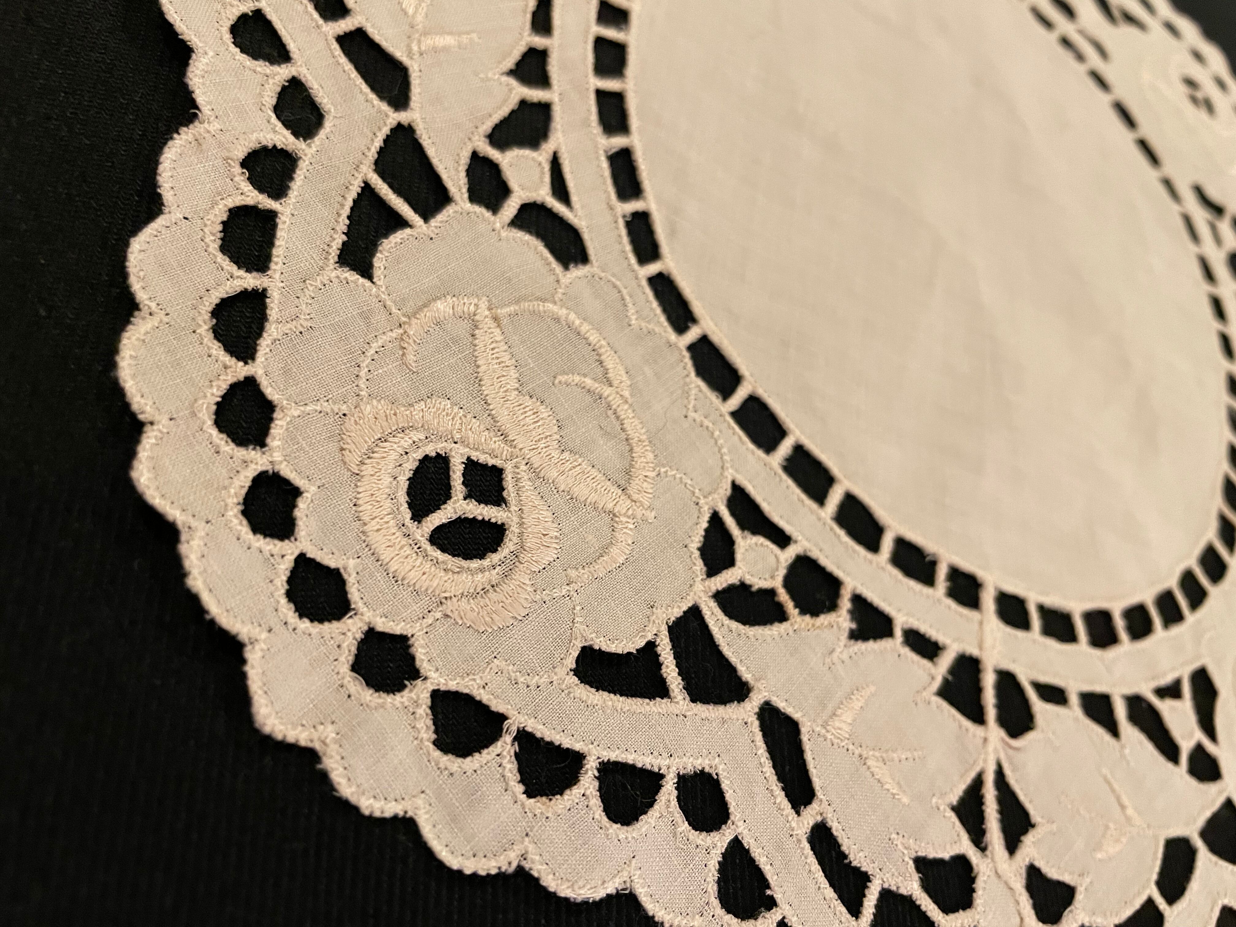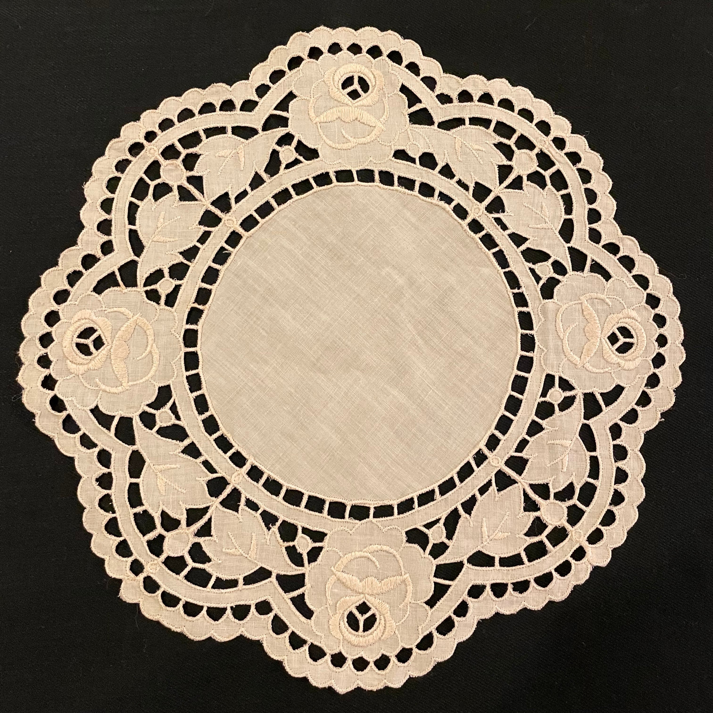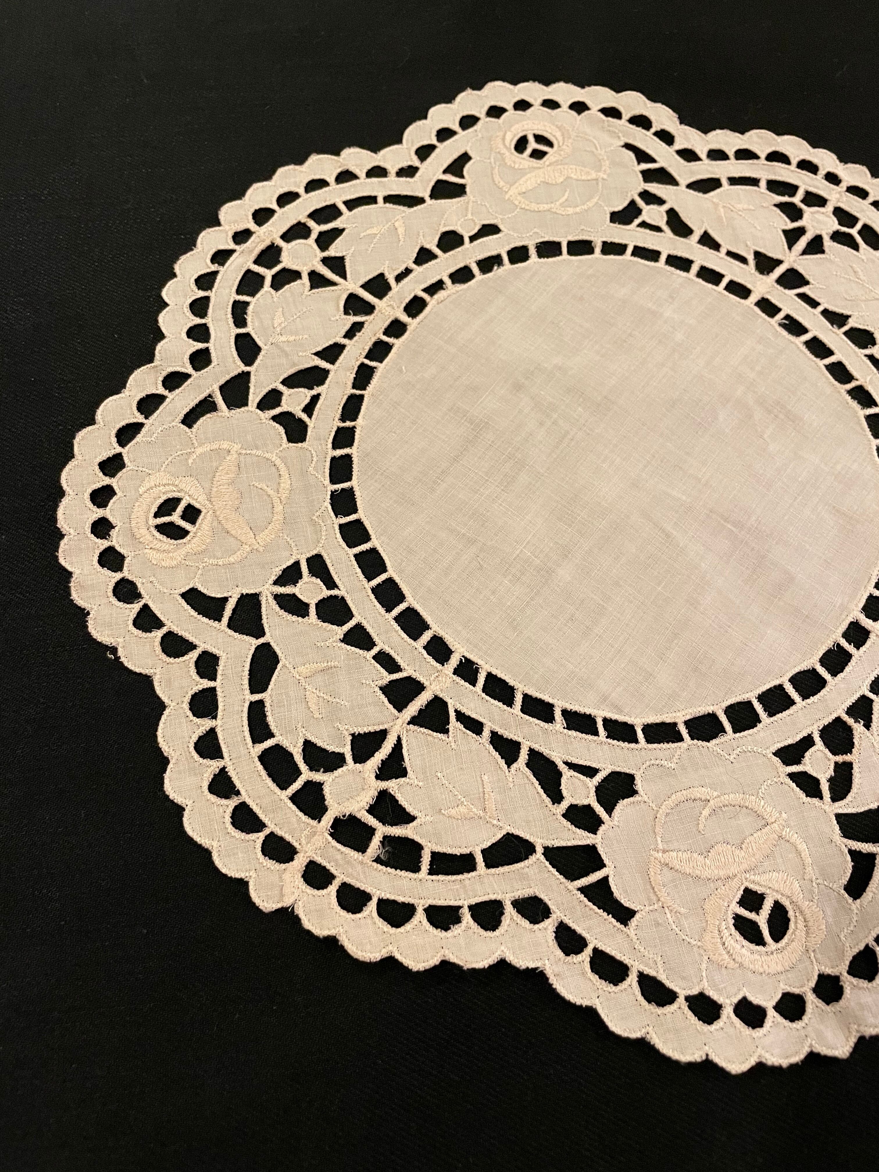 France Antique レース 円形 丸型 ラウンド ドイリー 薔薇 バラ フランス アンティーク