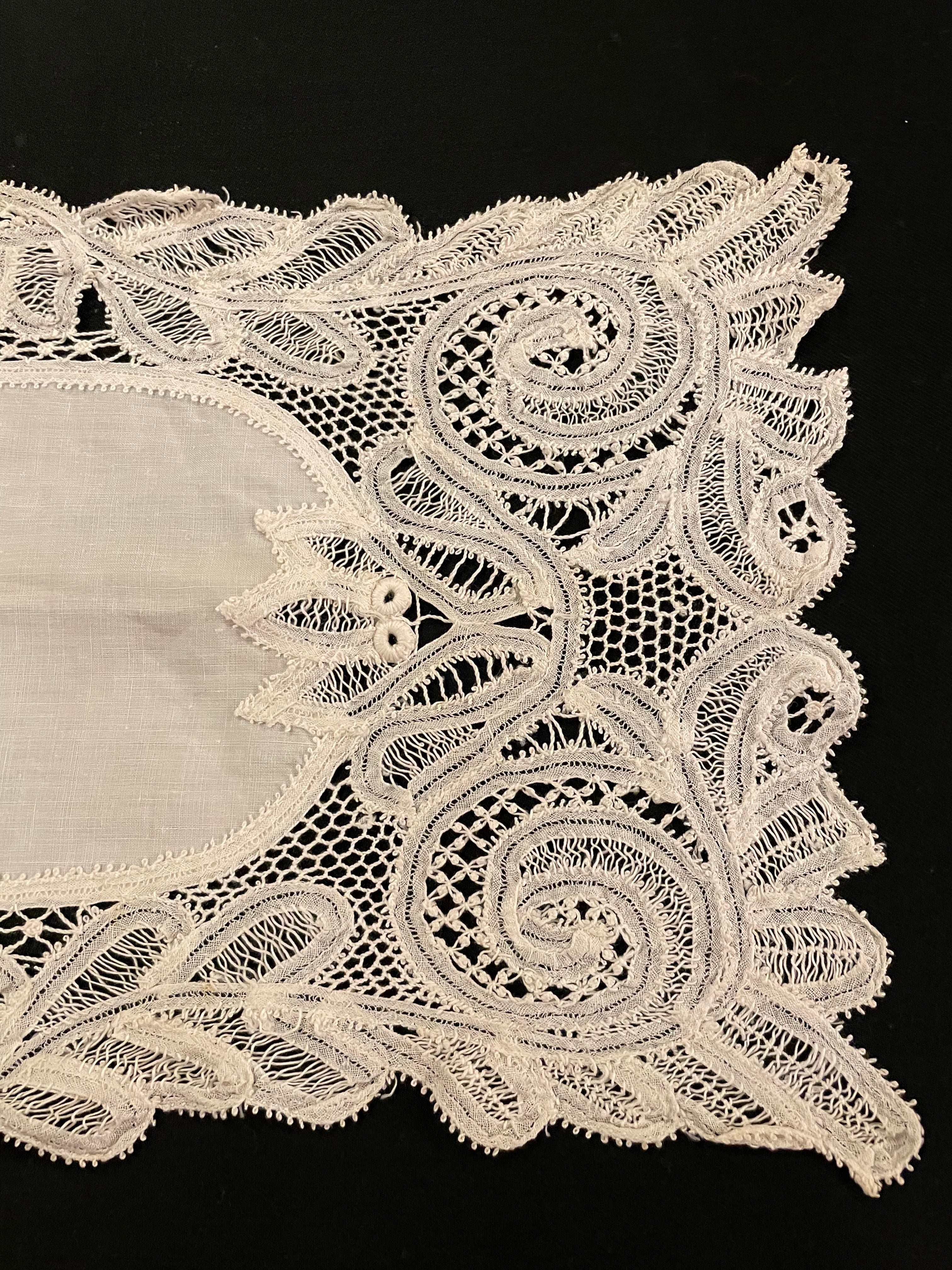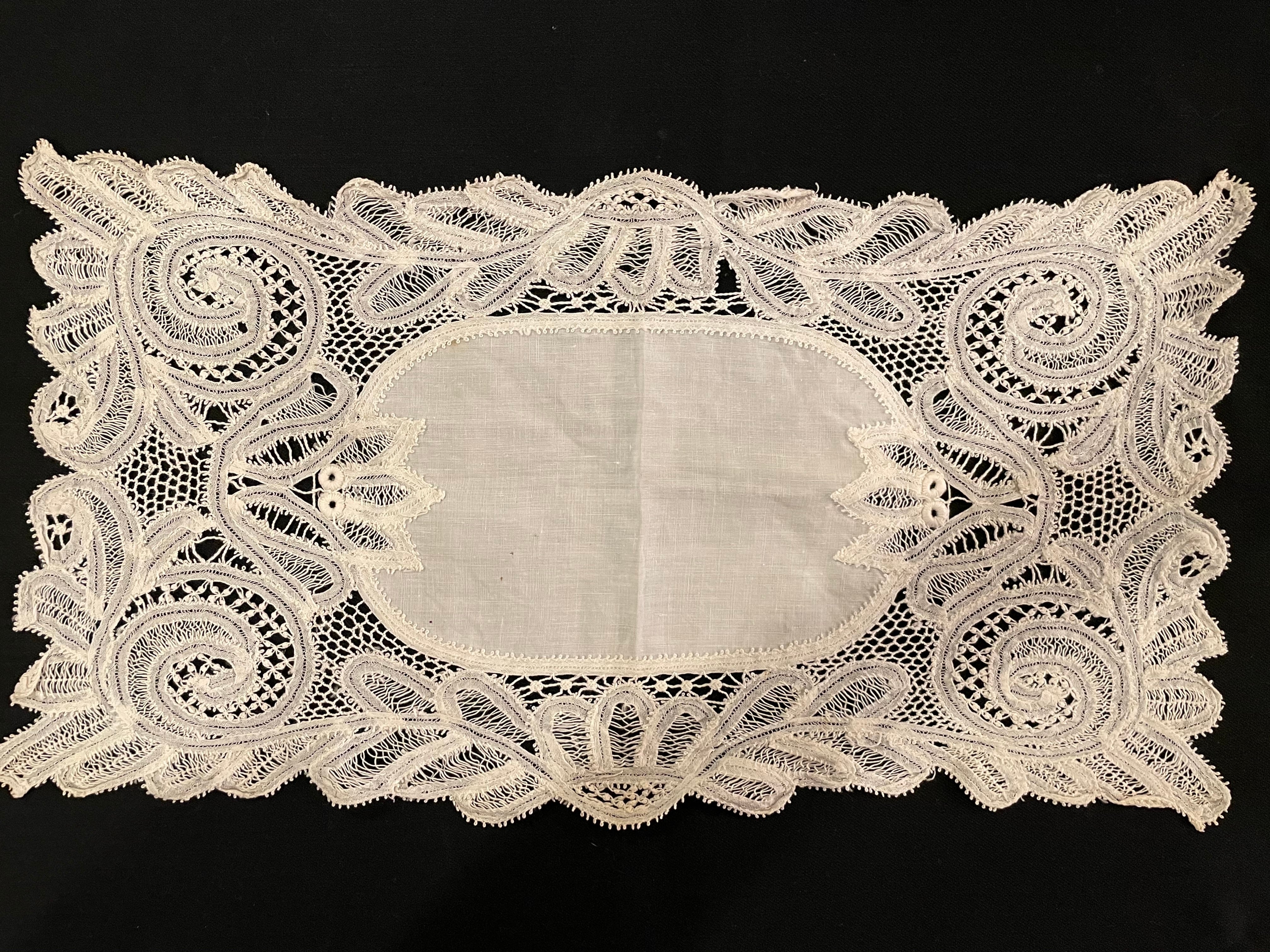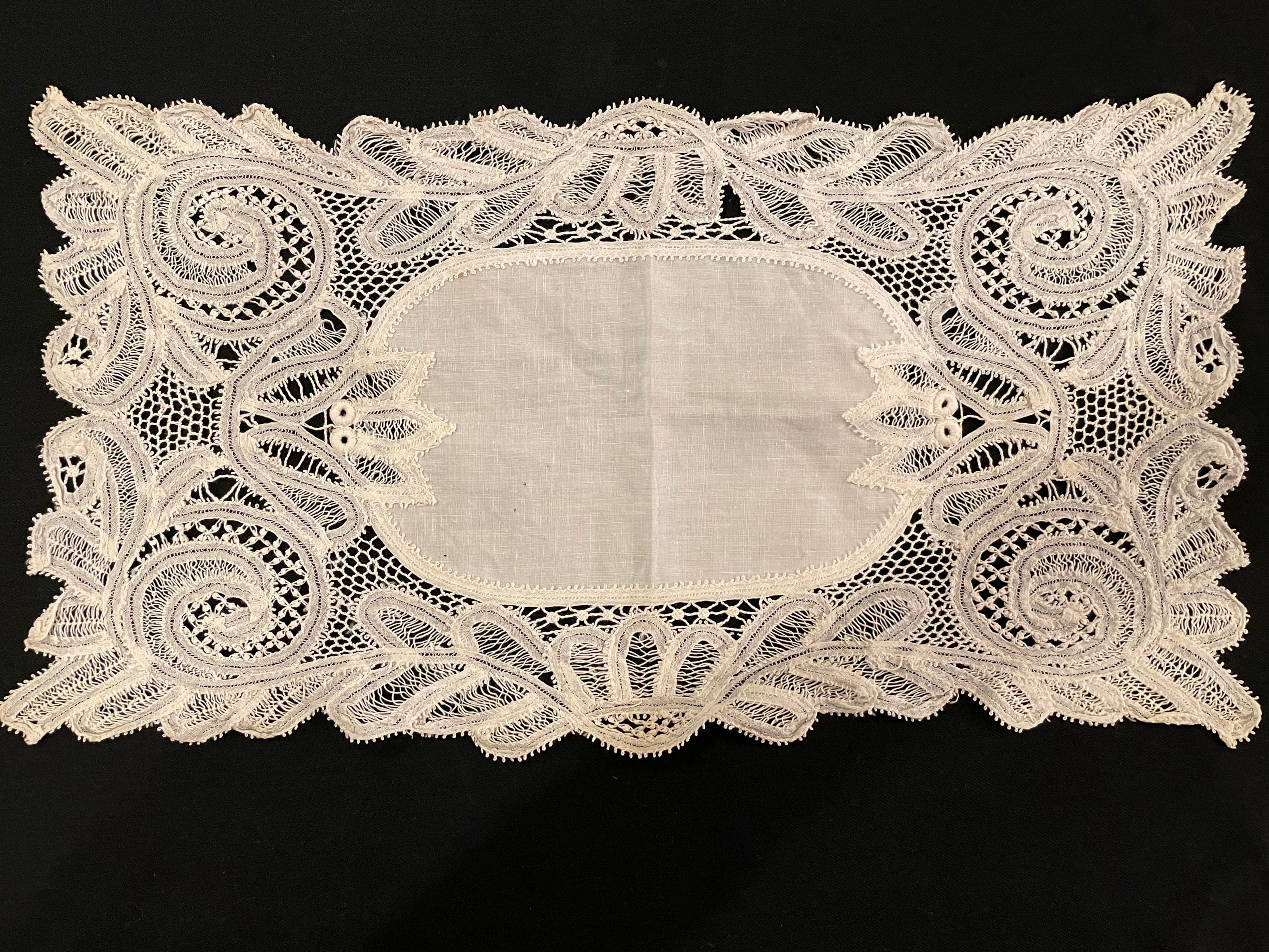 France Antique レース 長方形 リネン テーブルセンター