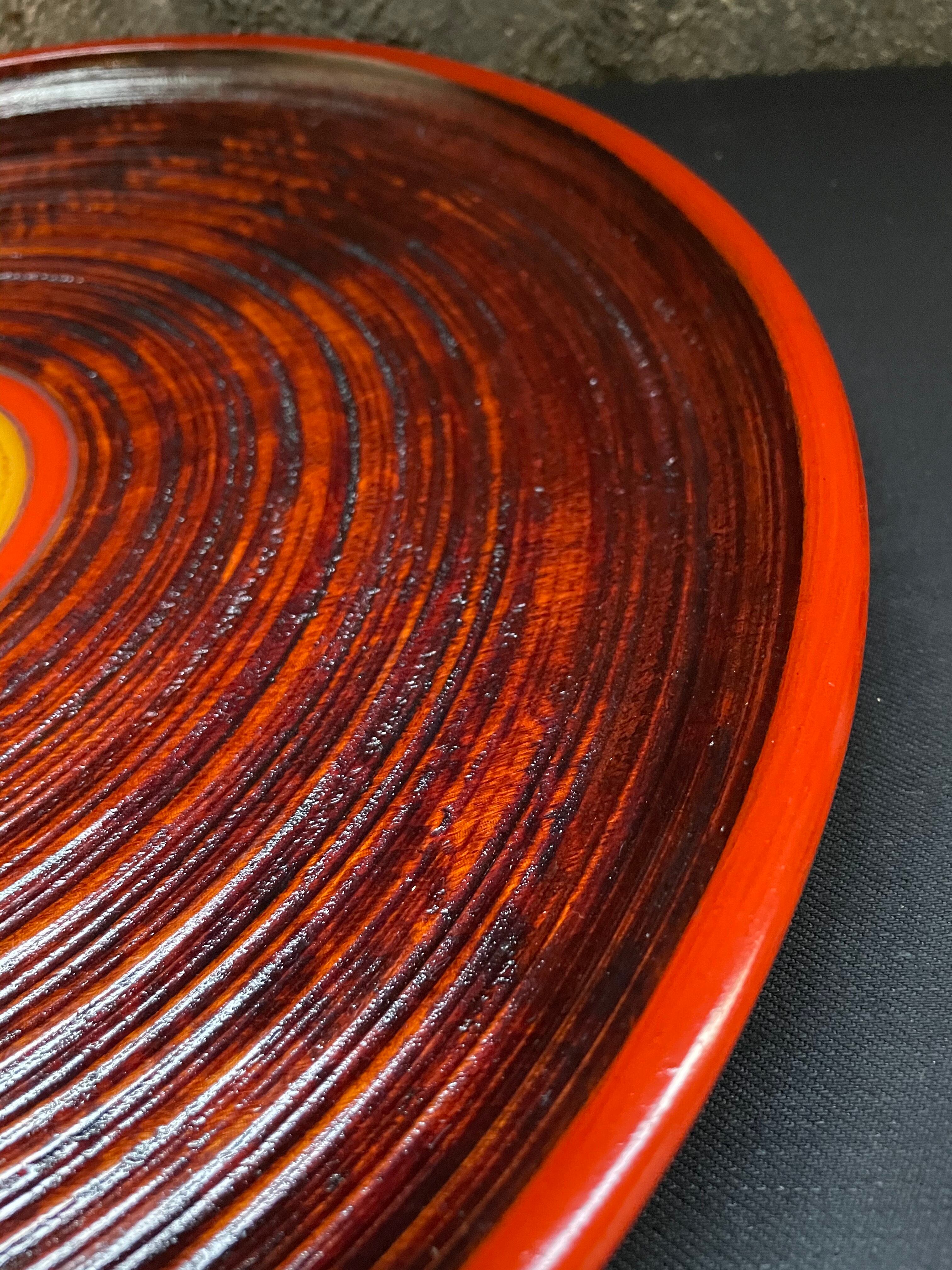 Japan Vintage 香川漆器 独楽塗 丸盆 千筋中 コマ トレイ 御膳 未使用 全11枚