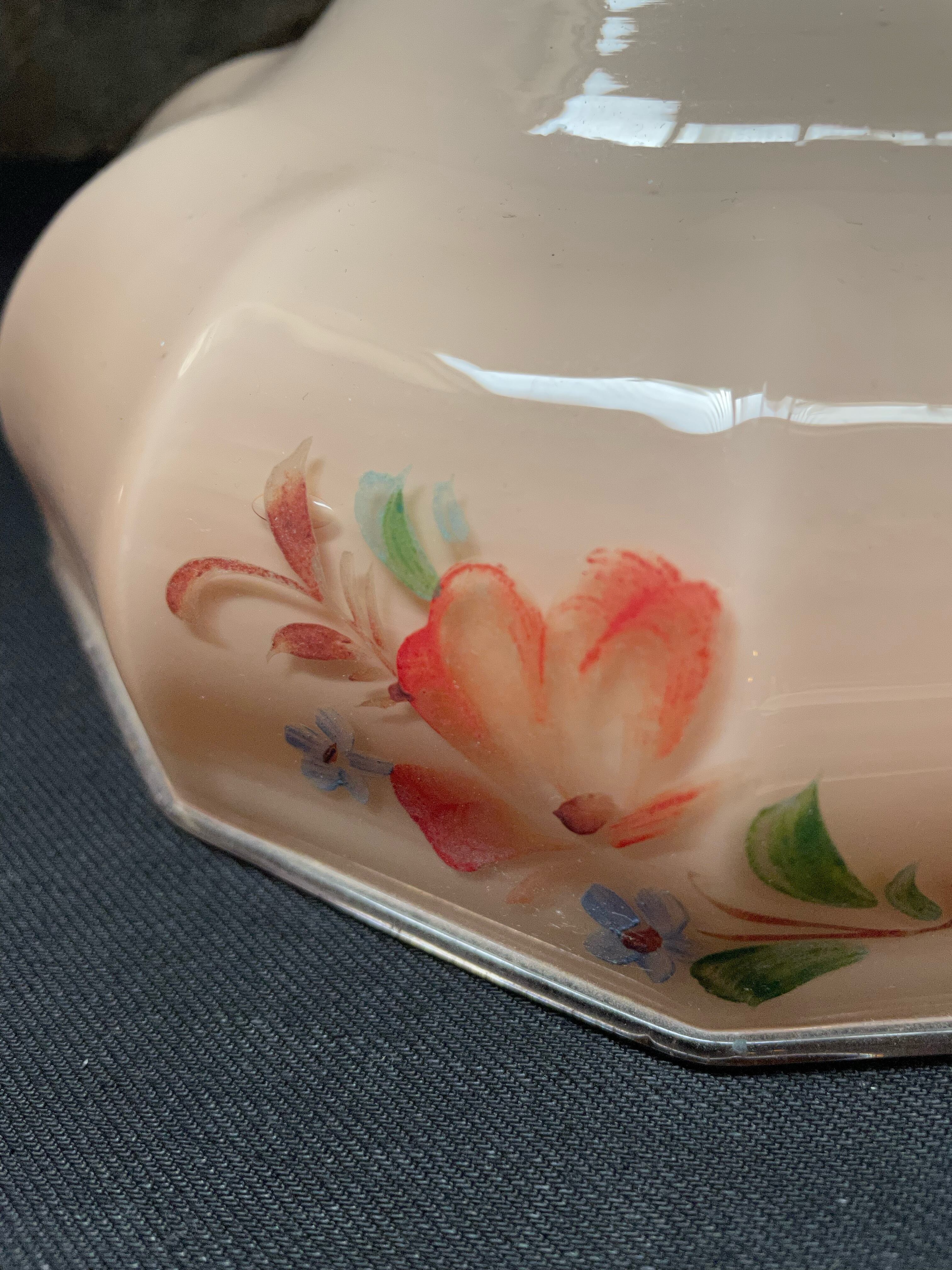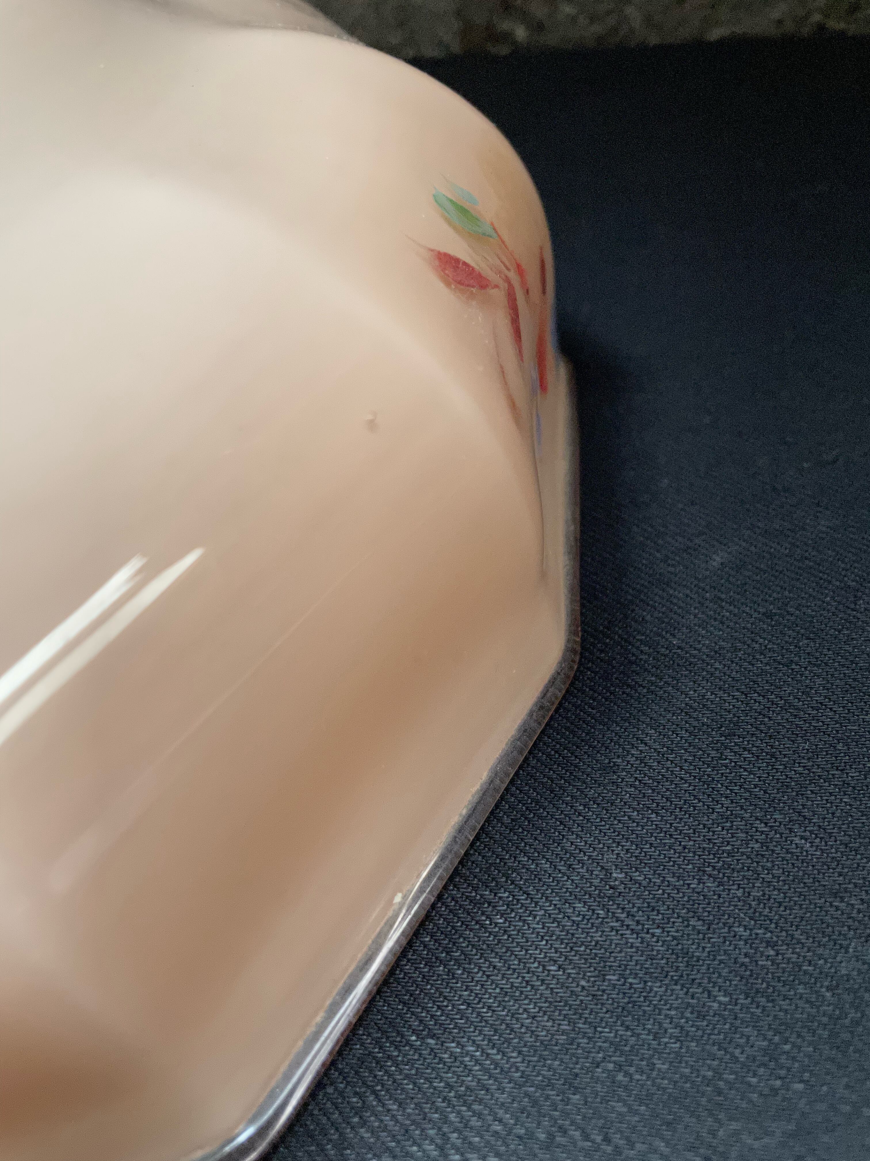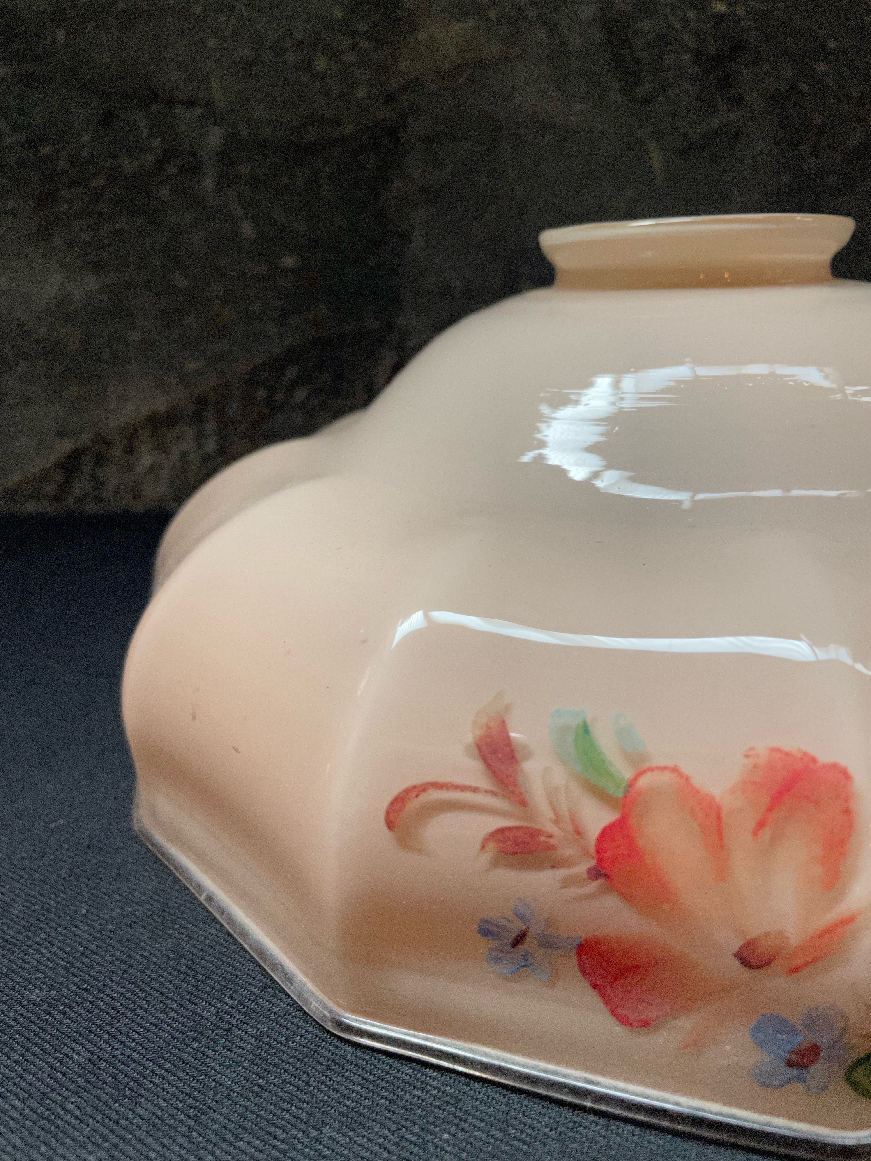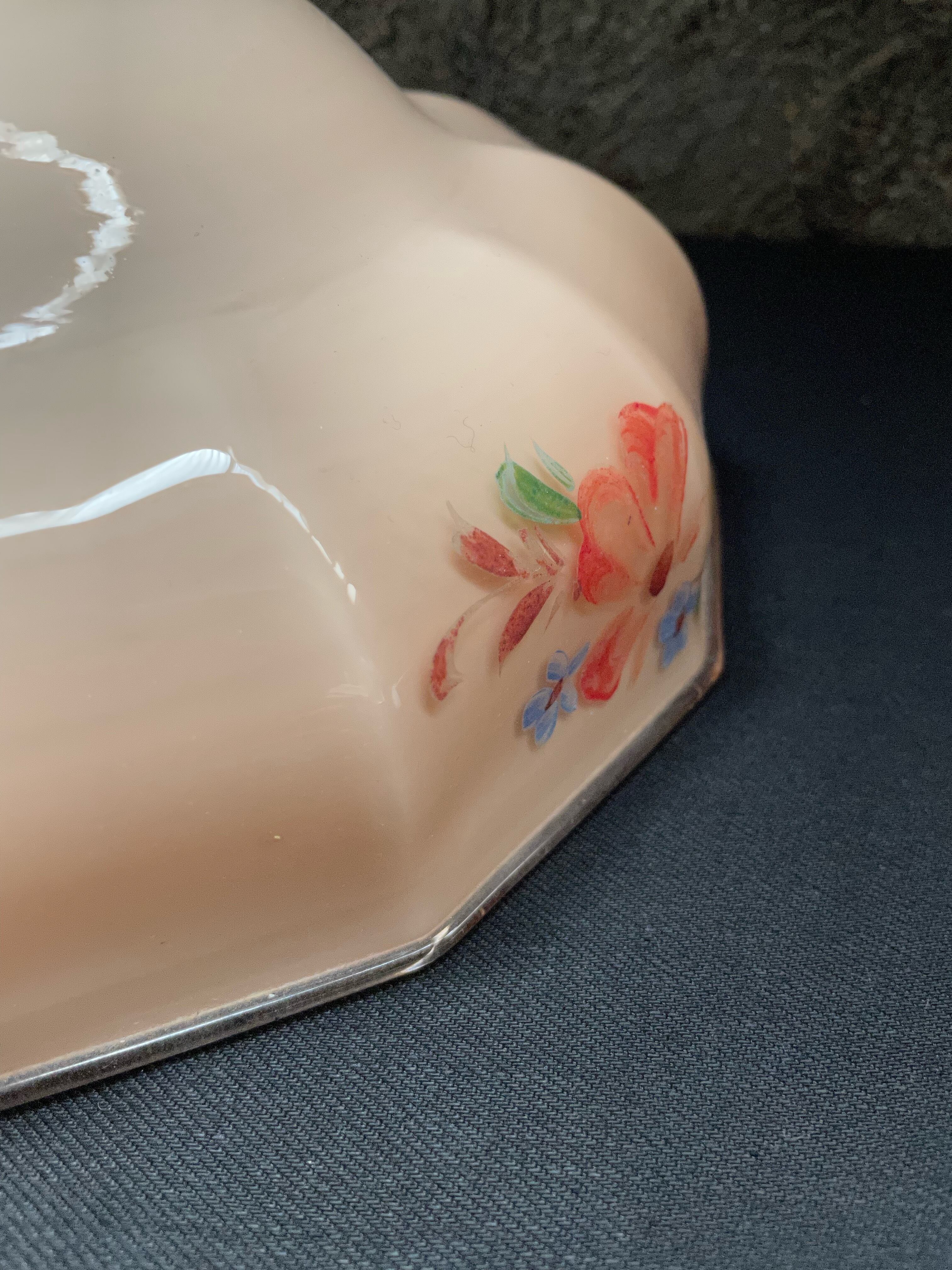 サーモンピンクの地に透明ガラスを重ねた構造で、