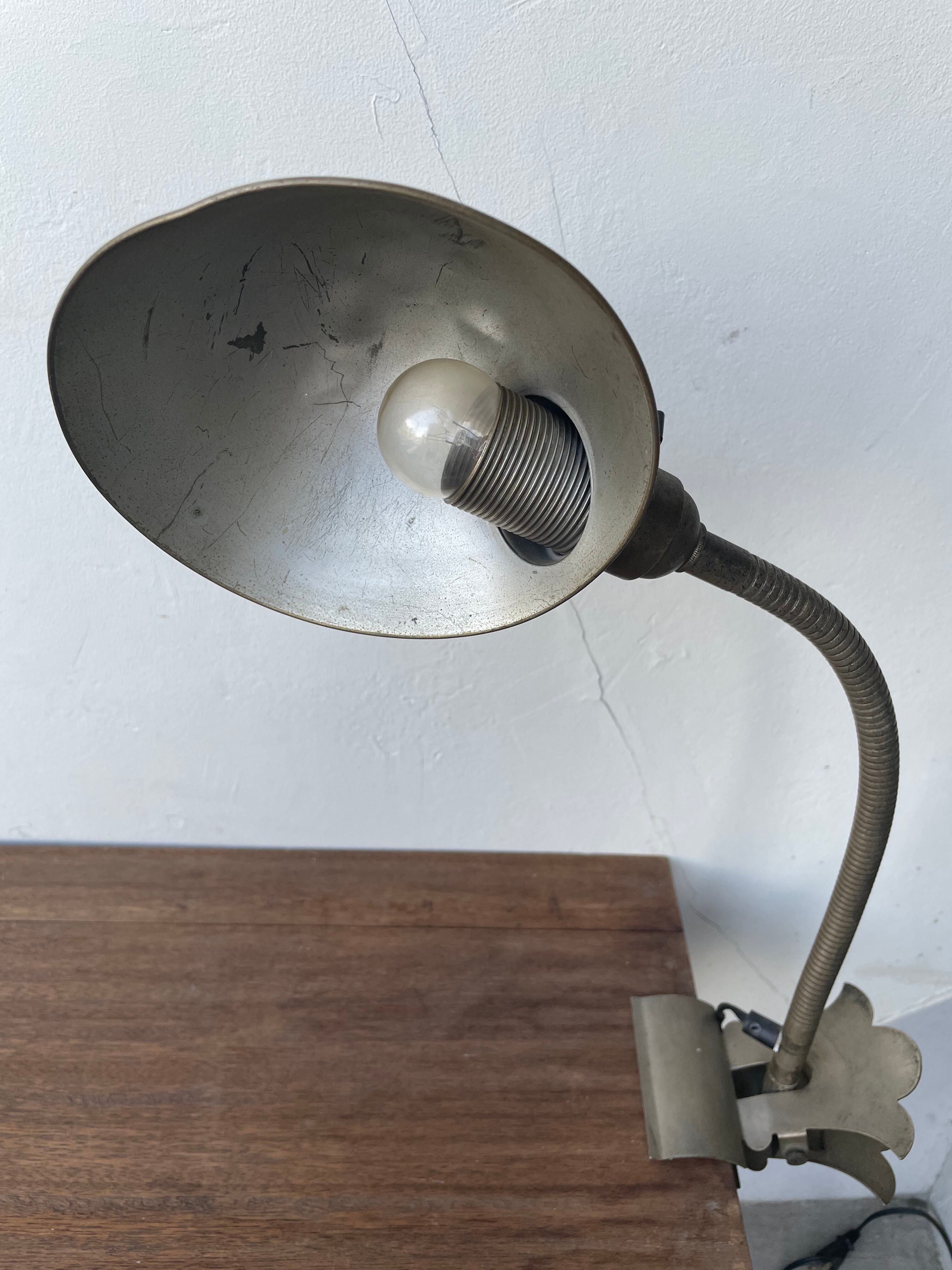 フランス製アルミのアーム式クリップライト、デスクスタンド(ランプ、照明、ブラケット)。