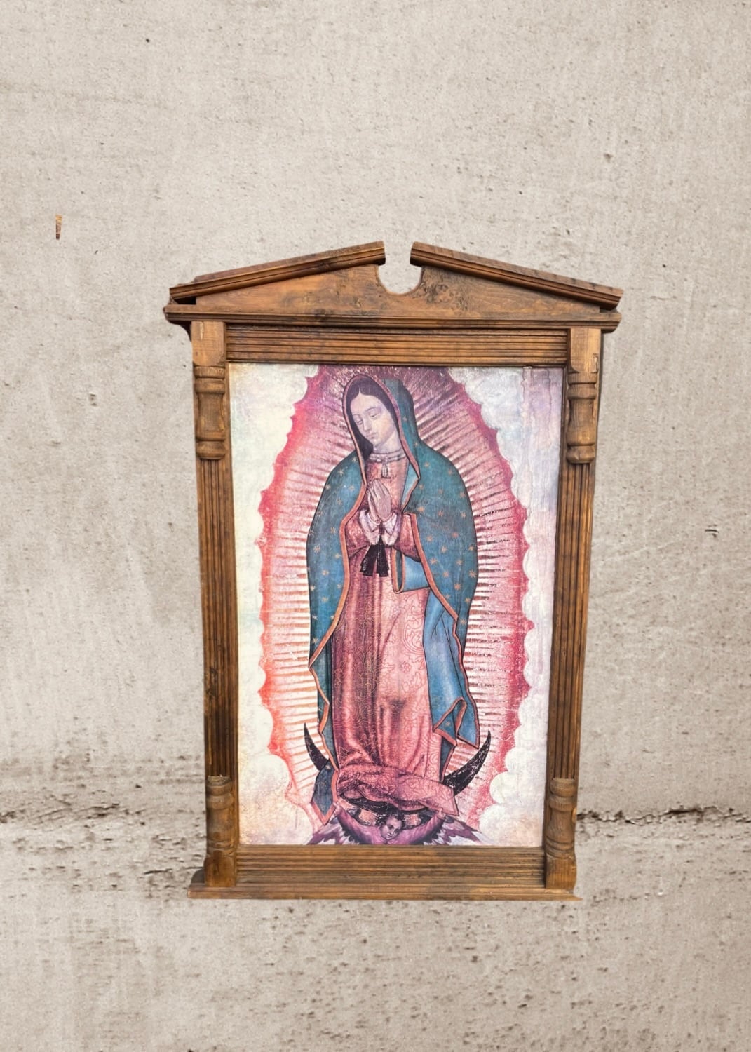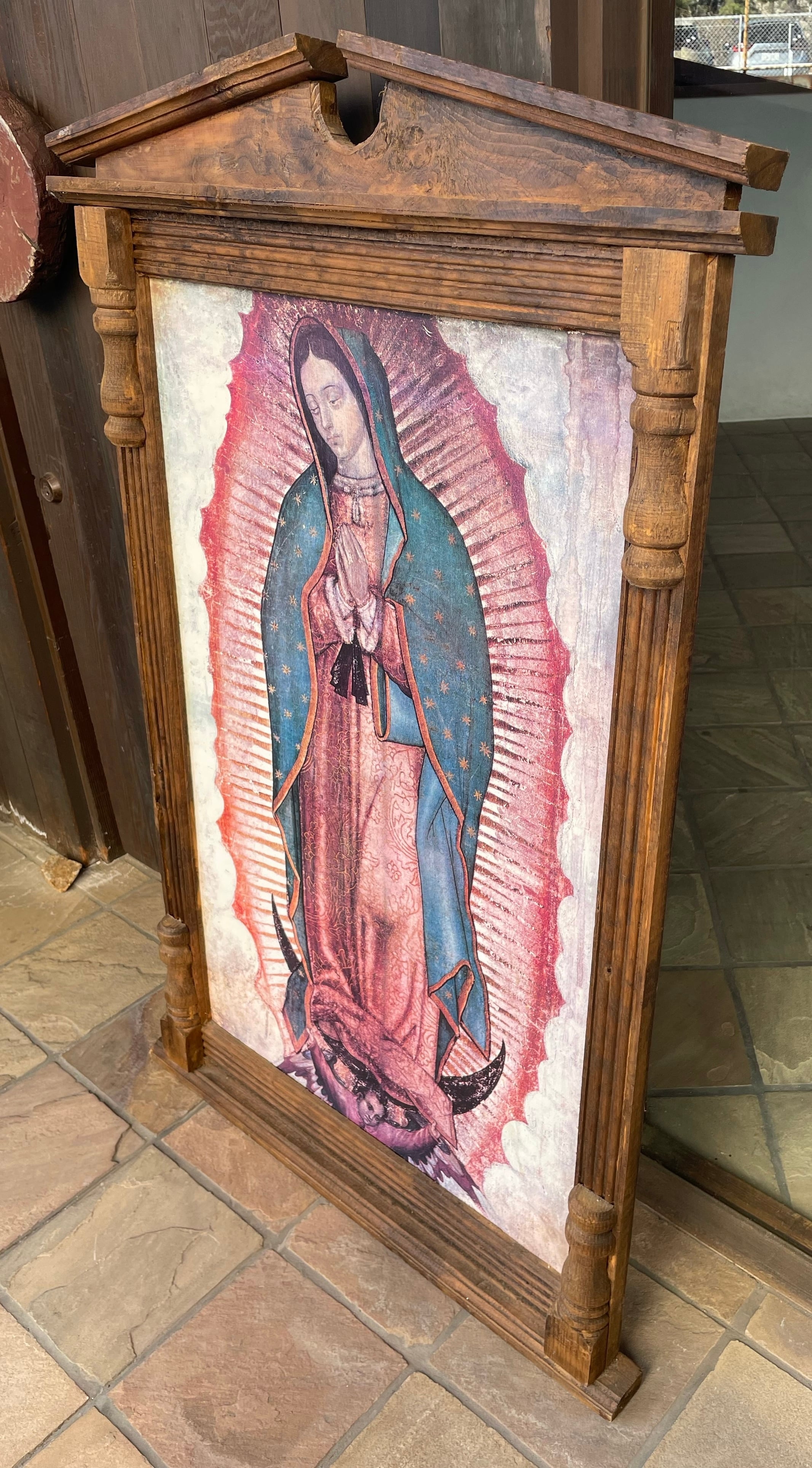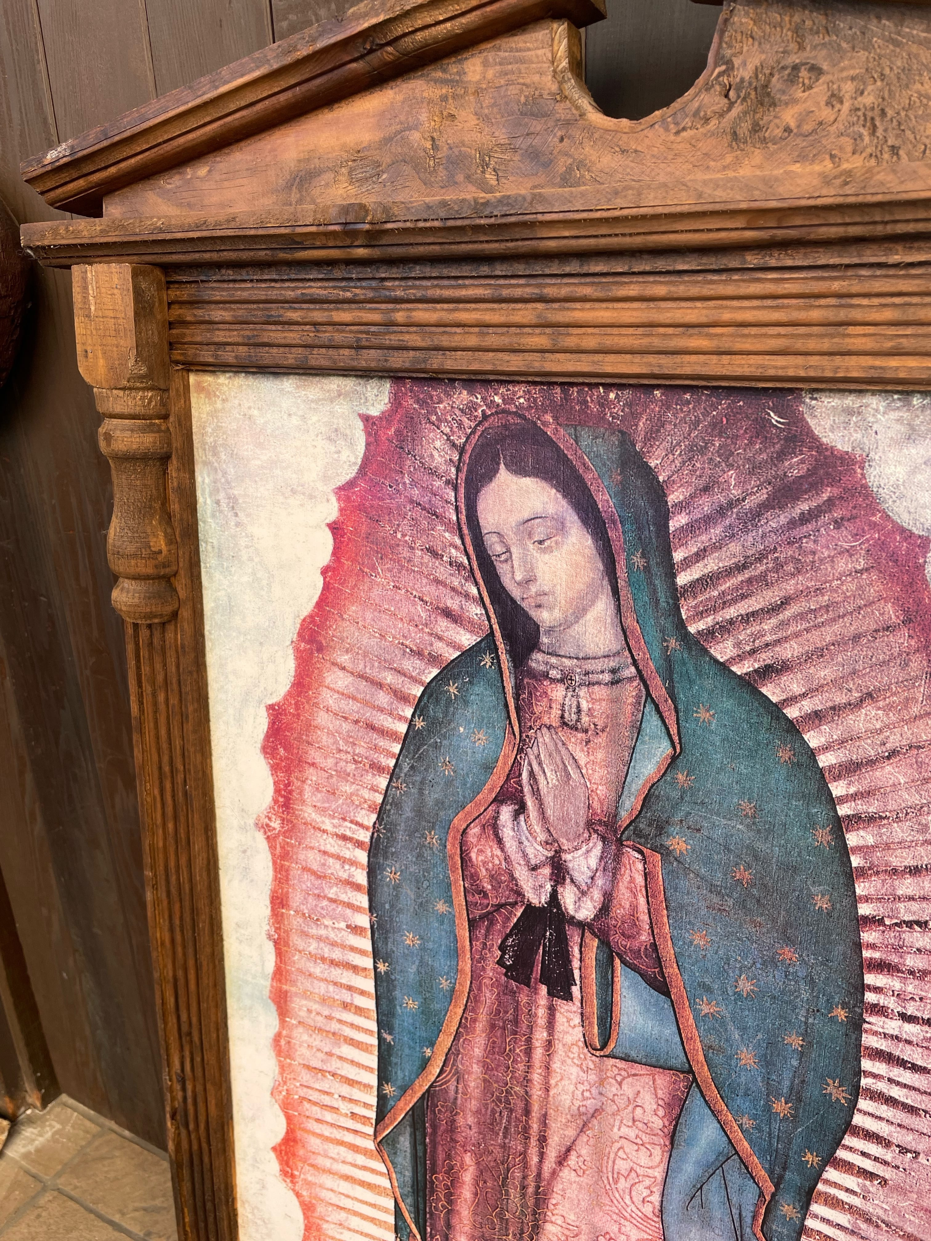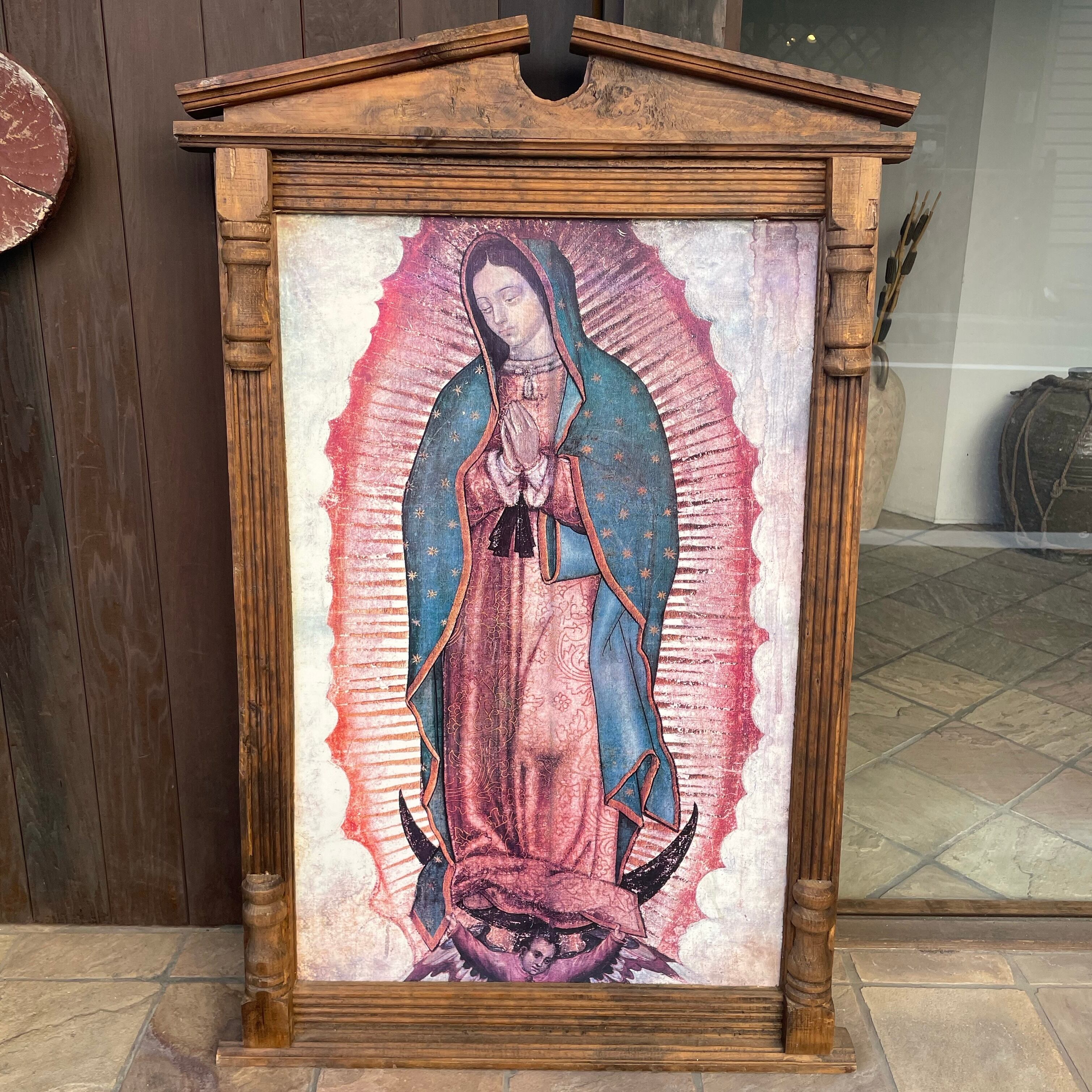 Mexico Vintage 送料込 マリア グアダルーペ 大型 木製 フレーム 絵画 アート 壁掛 ミラー