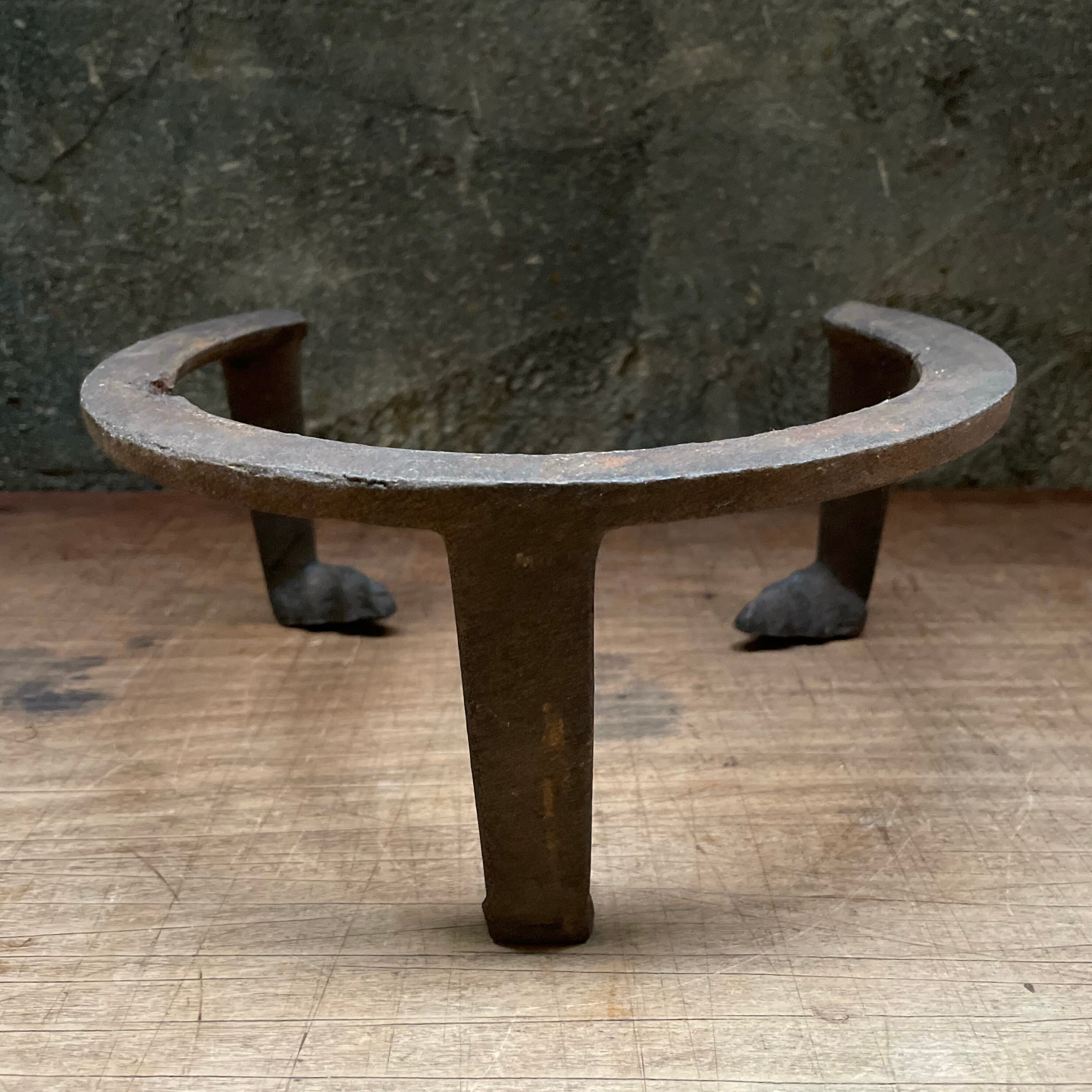 Japan Vintage 五徳 鉄瓶 茶釜 風炉 風炉釜 茶道具 鉄鋳物 三本足 笹爪 火鉢 鉄製 骨董
