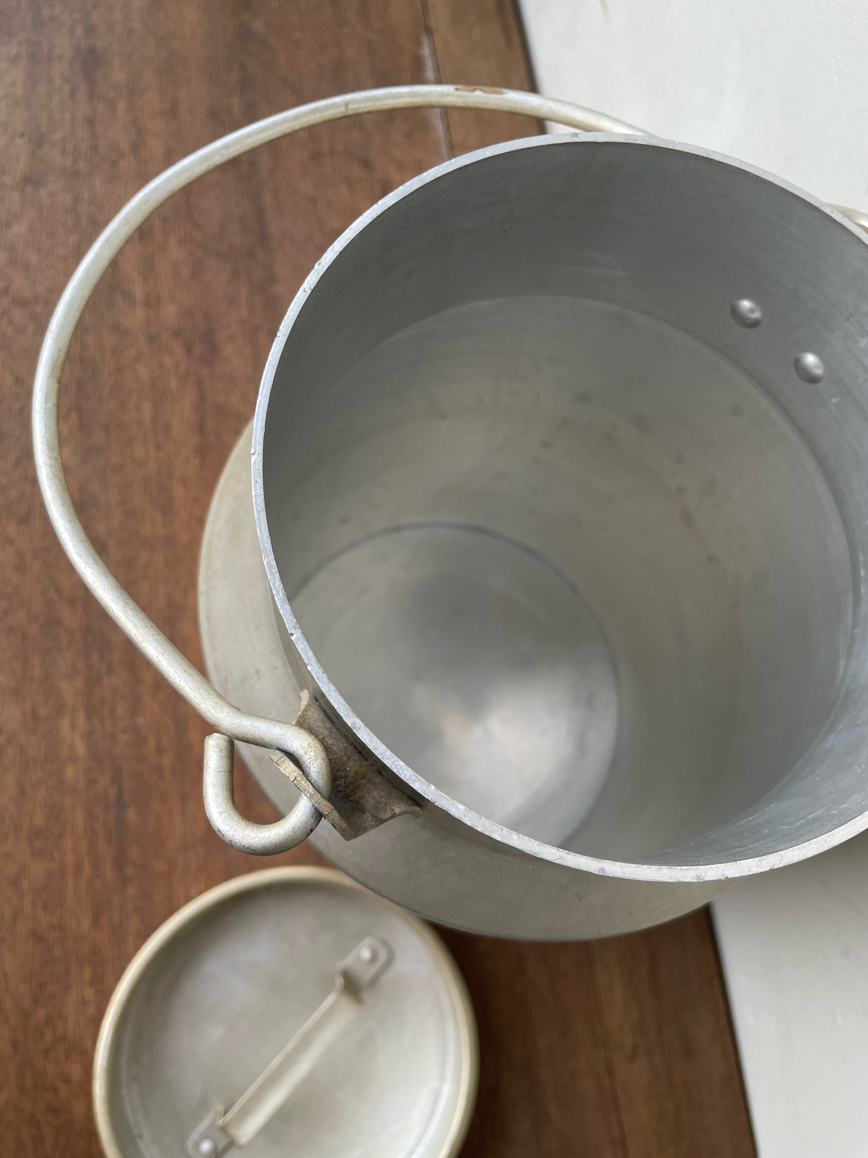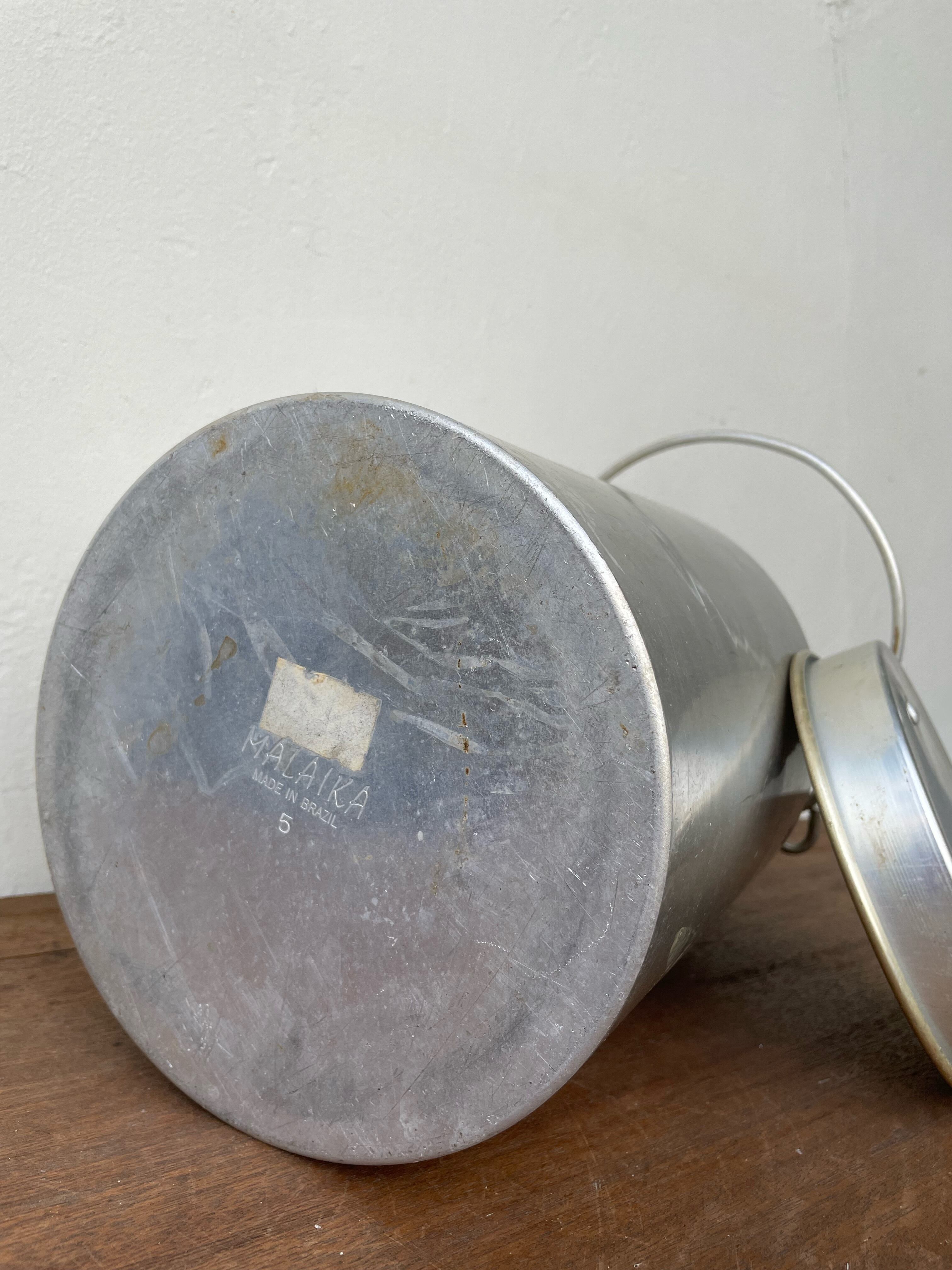 Brazil Vinatge アルミ ミルク缶 小ぶりなサイズ 蓋つき ハンドル 花器や傘立て バケツ代わりに