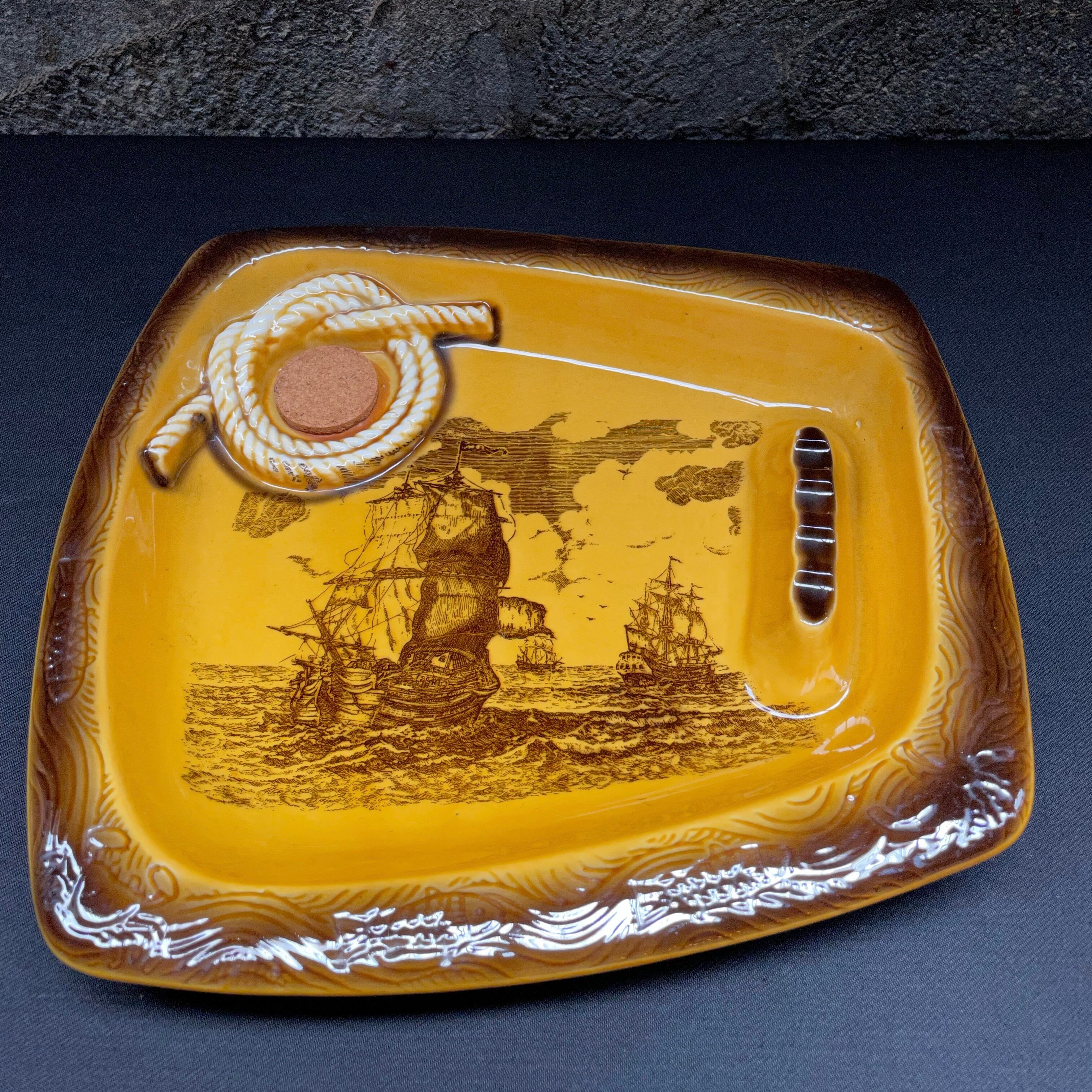 飴色の陶器製でオモテ面の一部にコルクがあしらわれています。