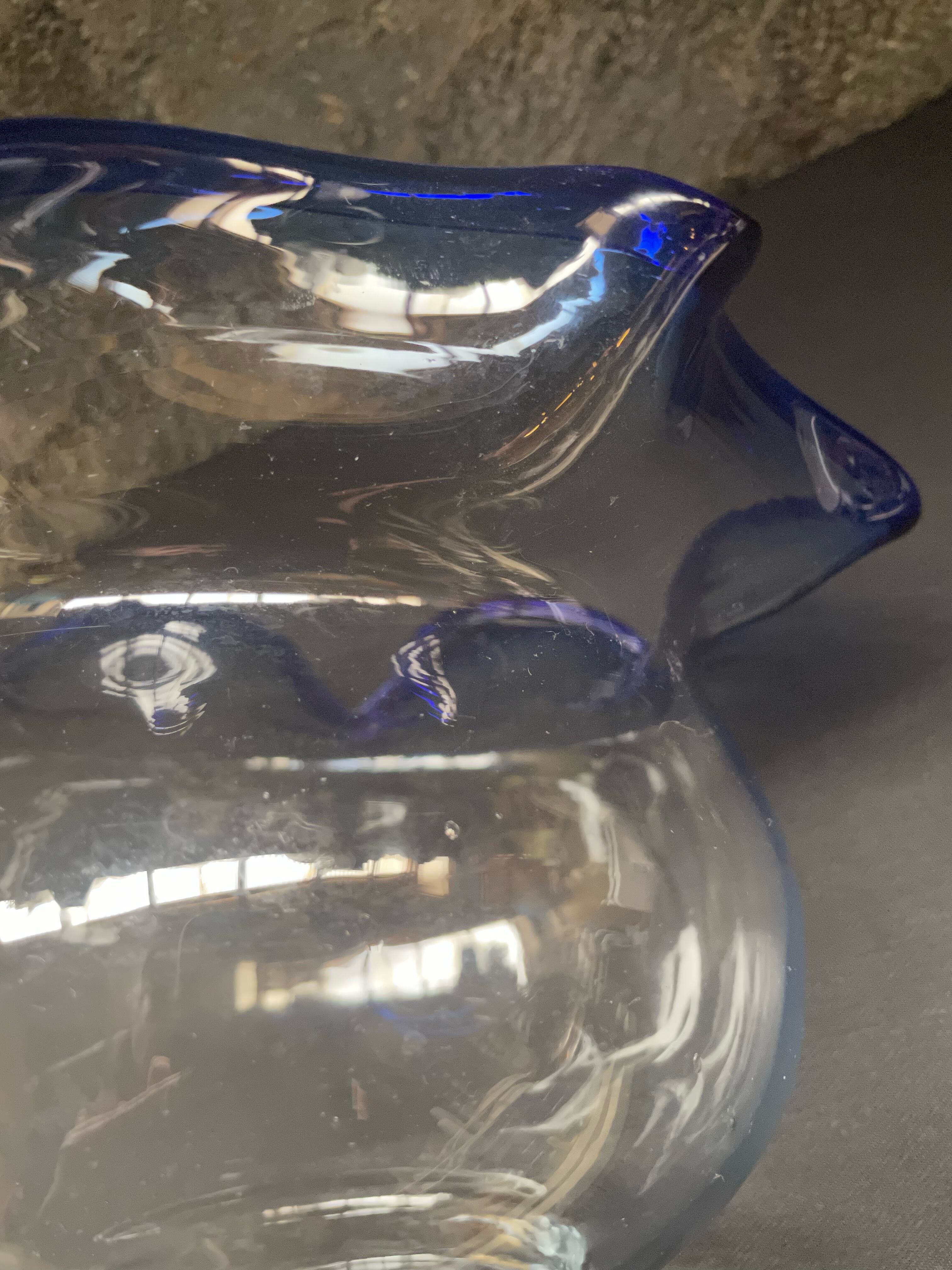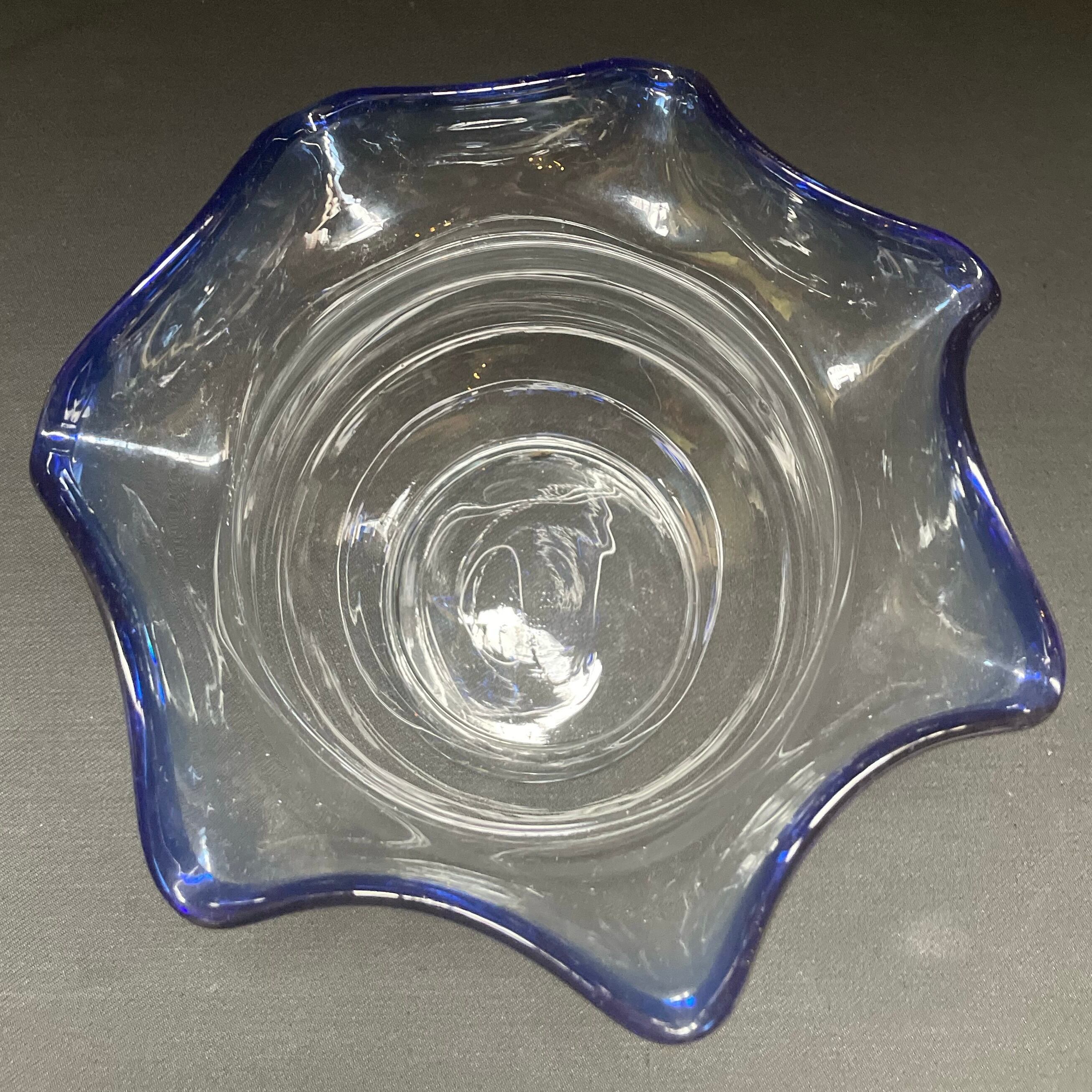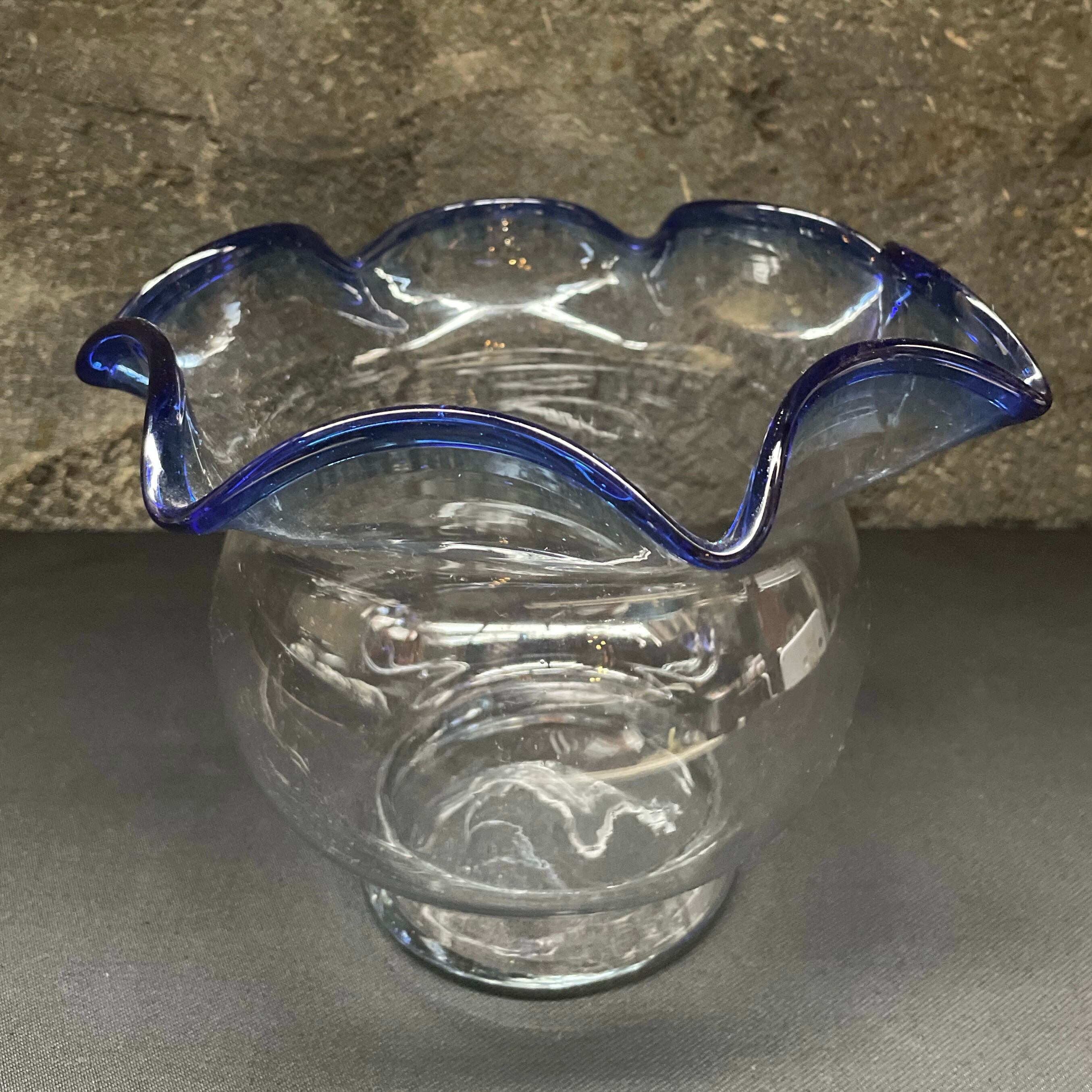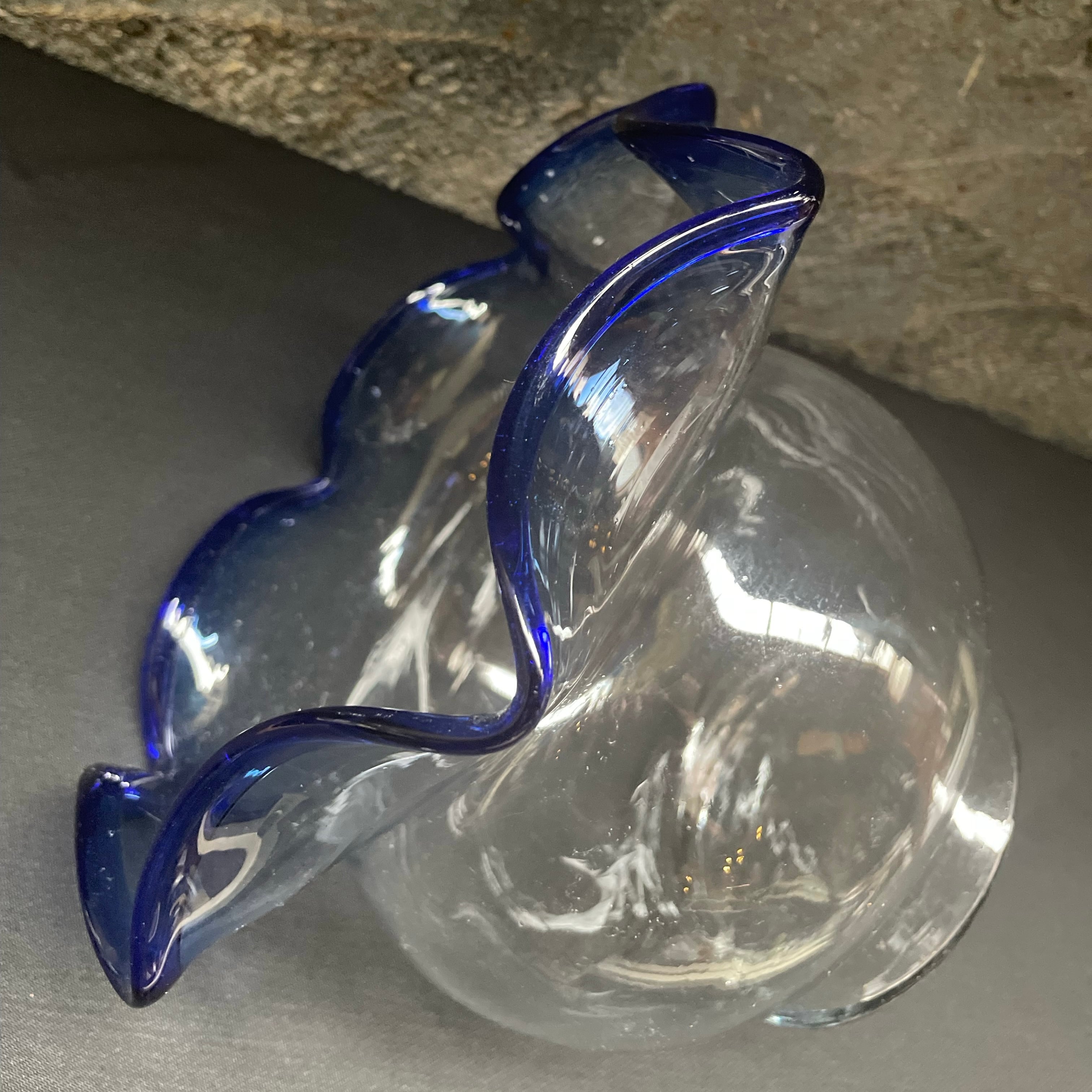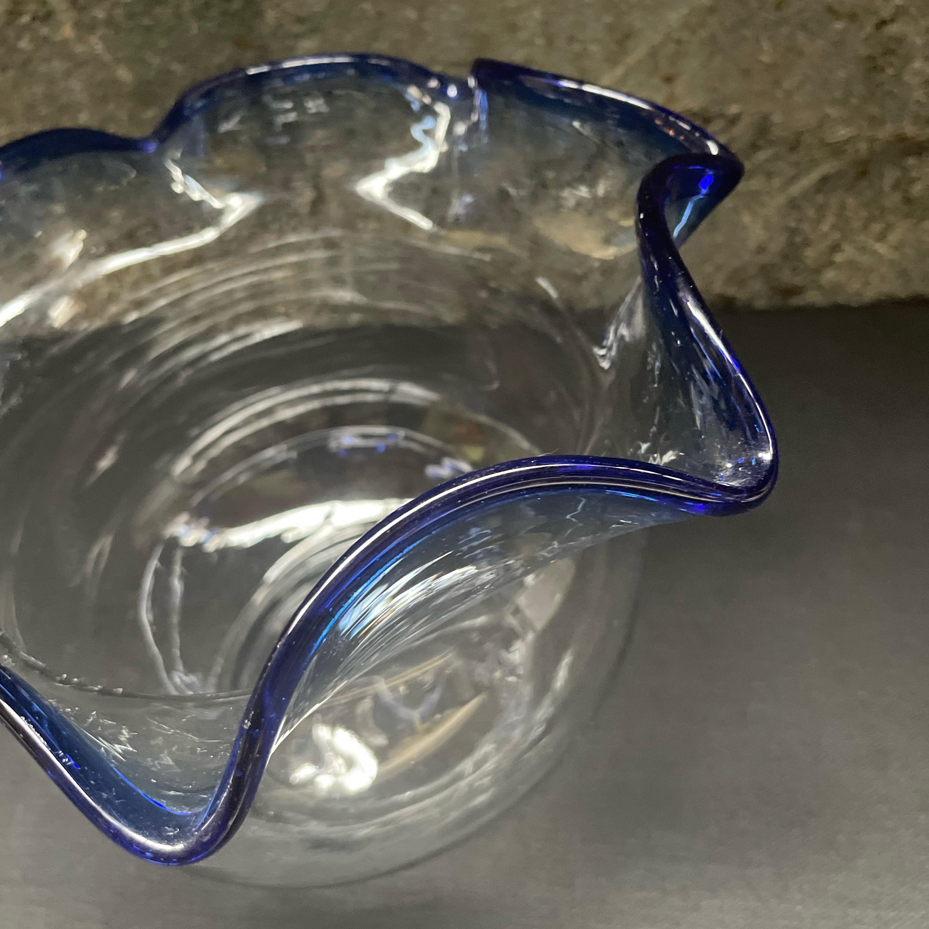フリル部分に施された澄んだ藍色(青、ブルー、ネイビー)、