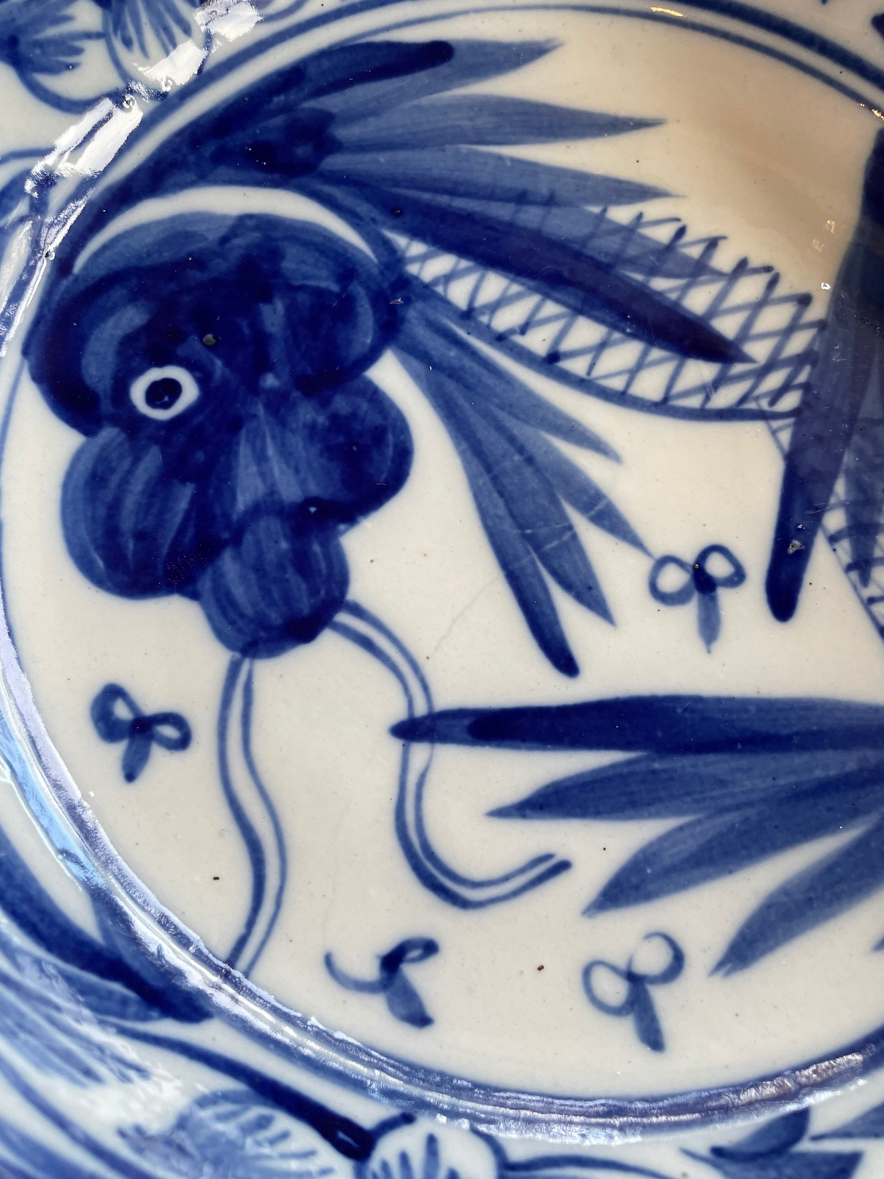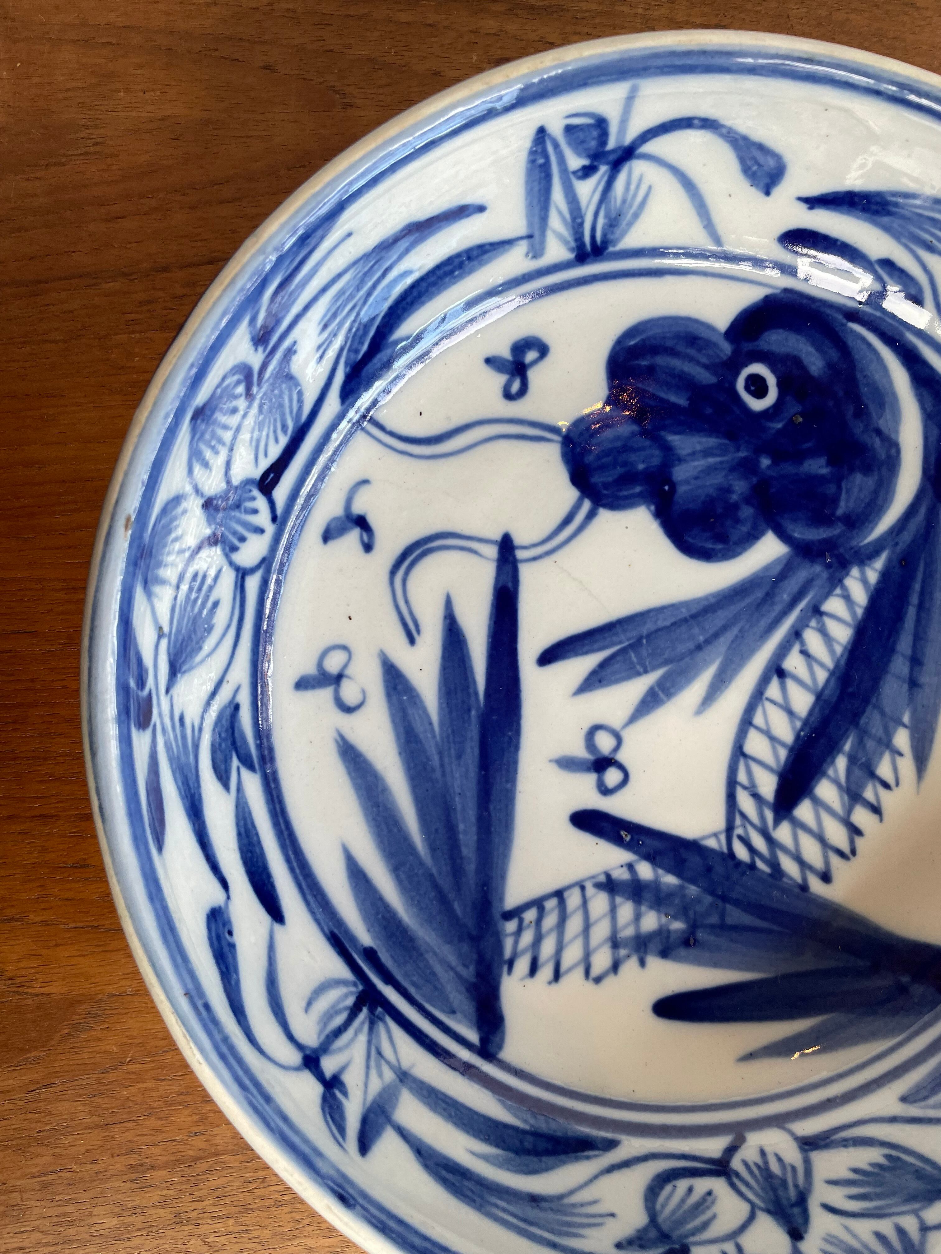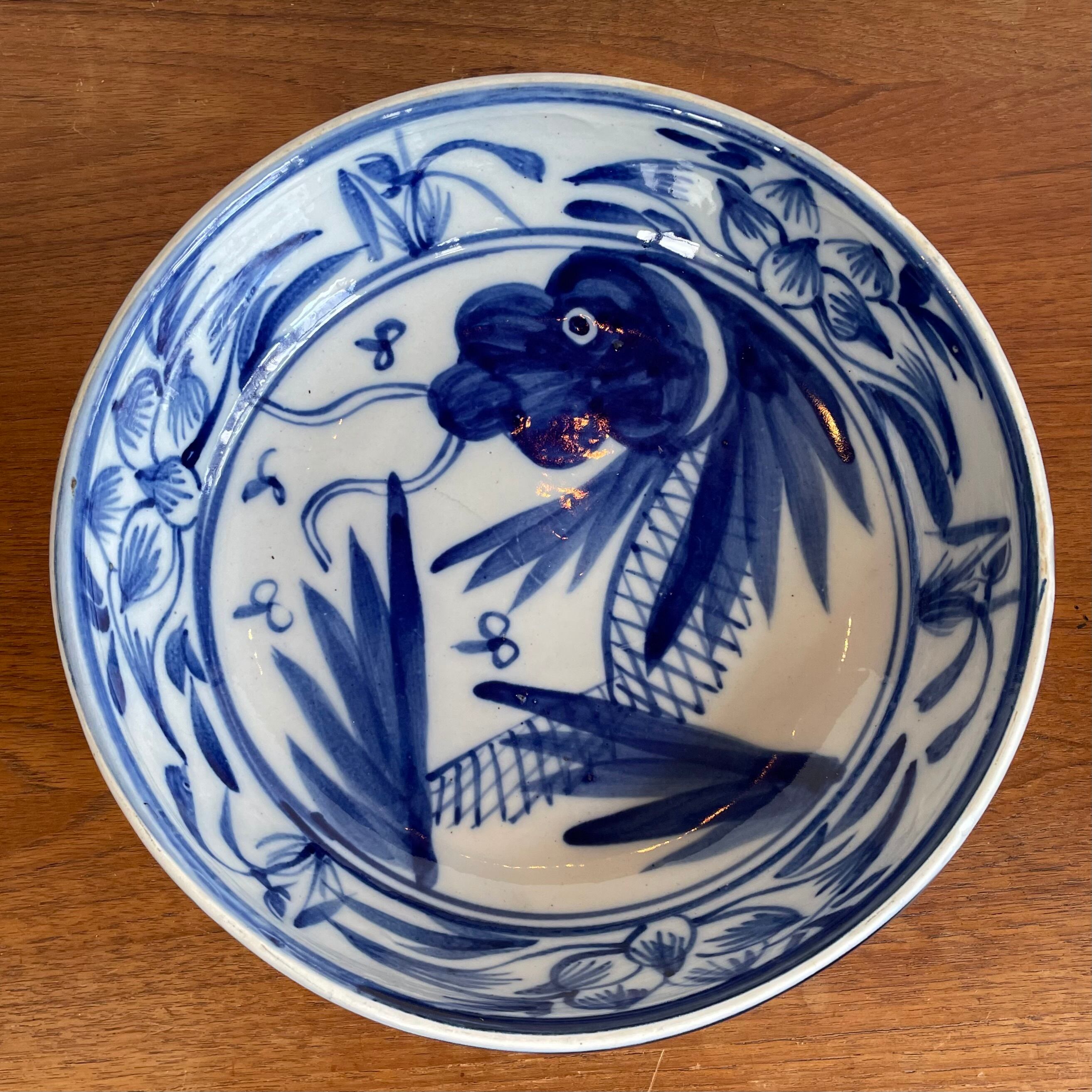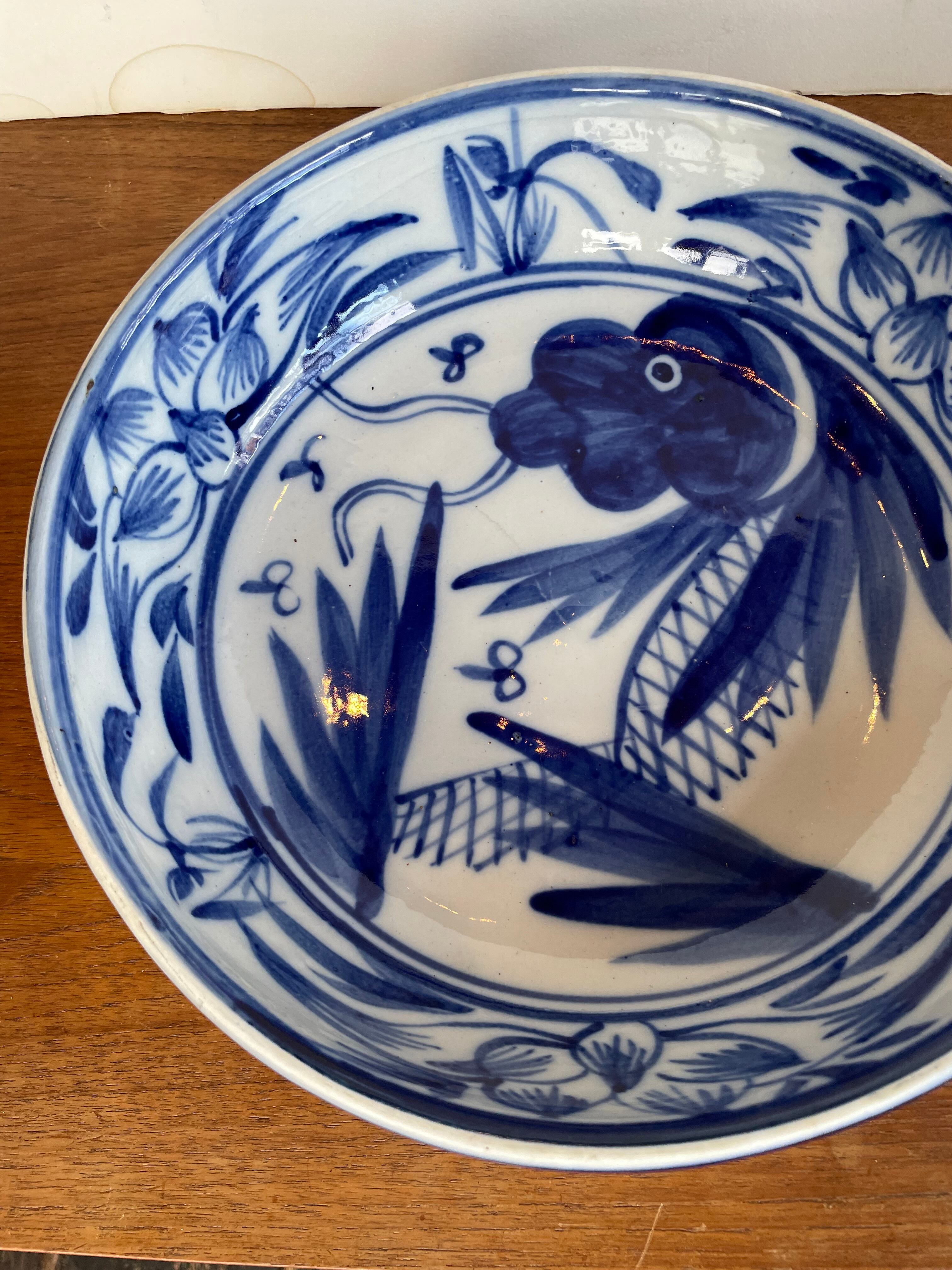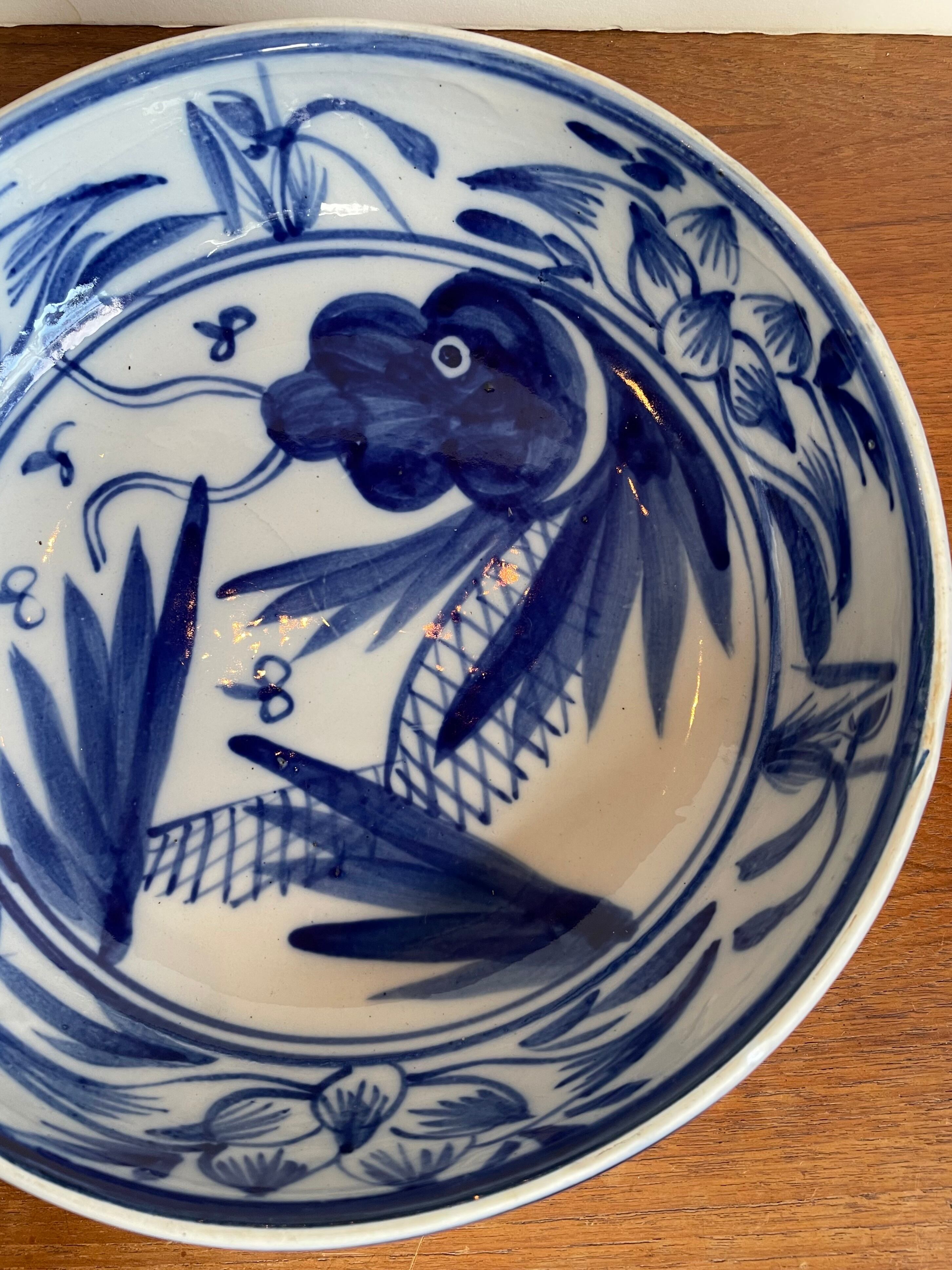 Japan Vintage 大鉢 ボウル 特大 盛り鉢 染付 金魚 鯉 魚 蝶 蓮 花 骨董 古道具 美品
