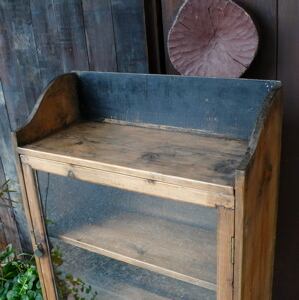 イギリスで買い付けたアンティークパインのシェルフ(ガラスキャビネット)。