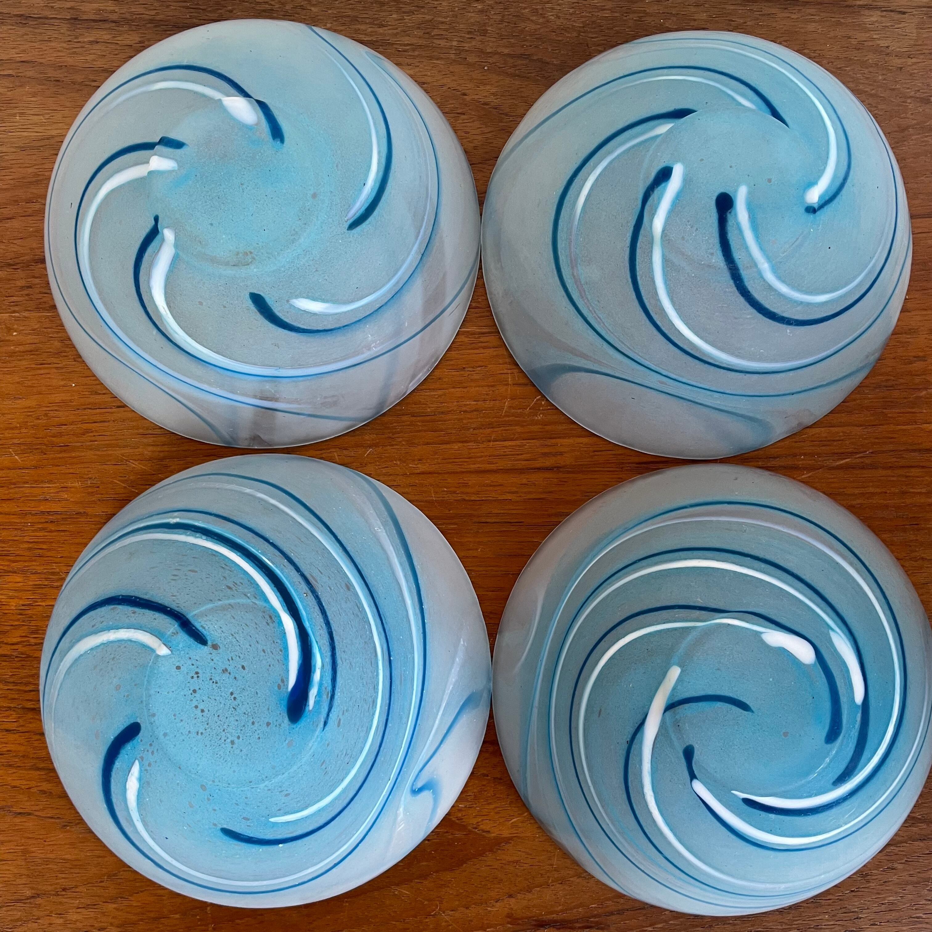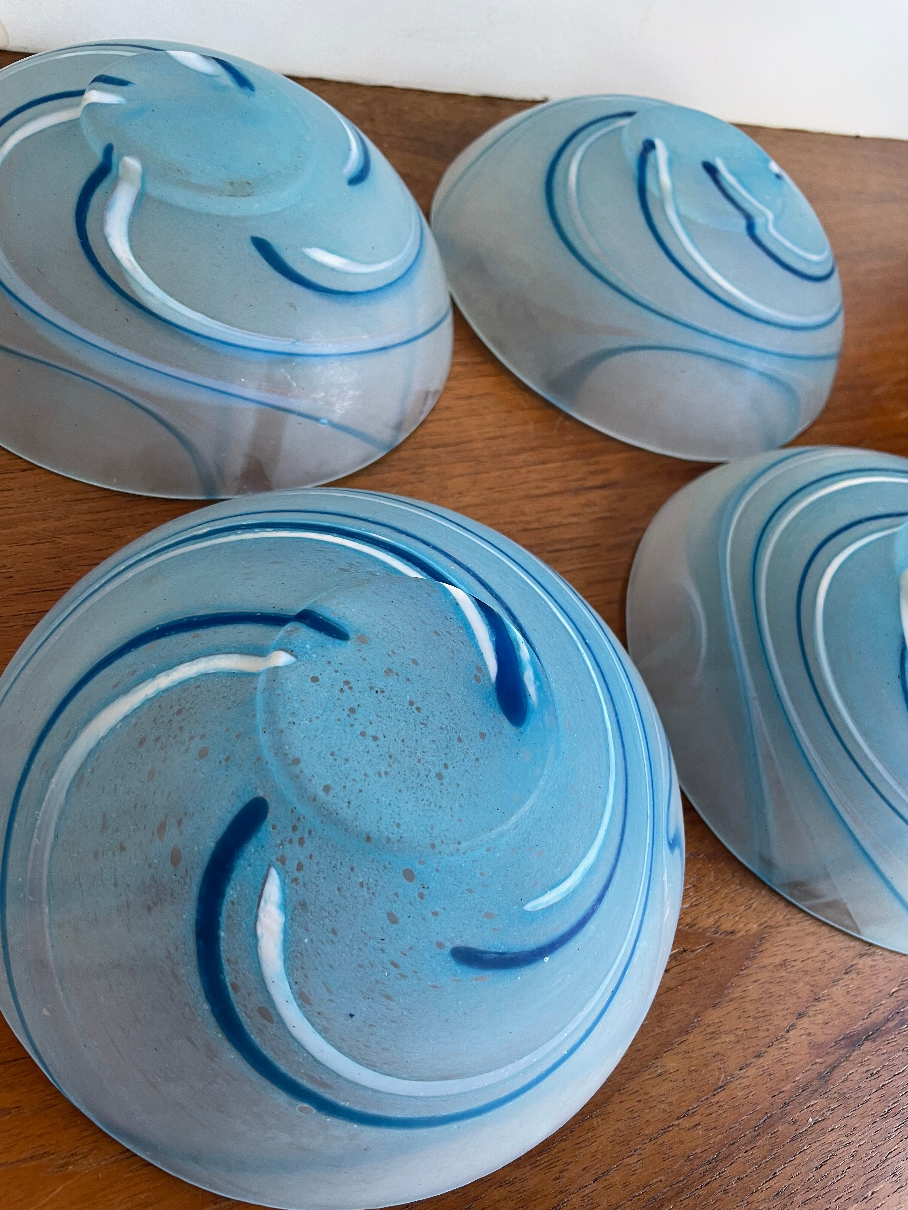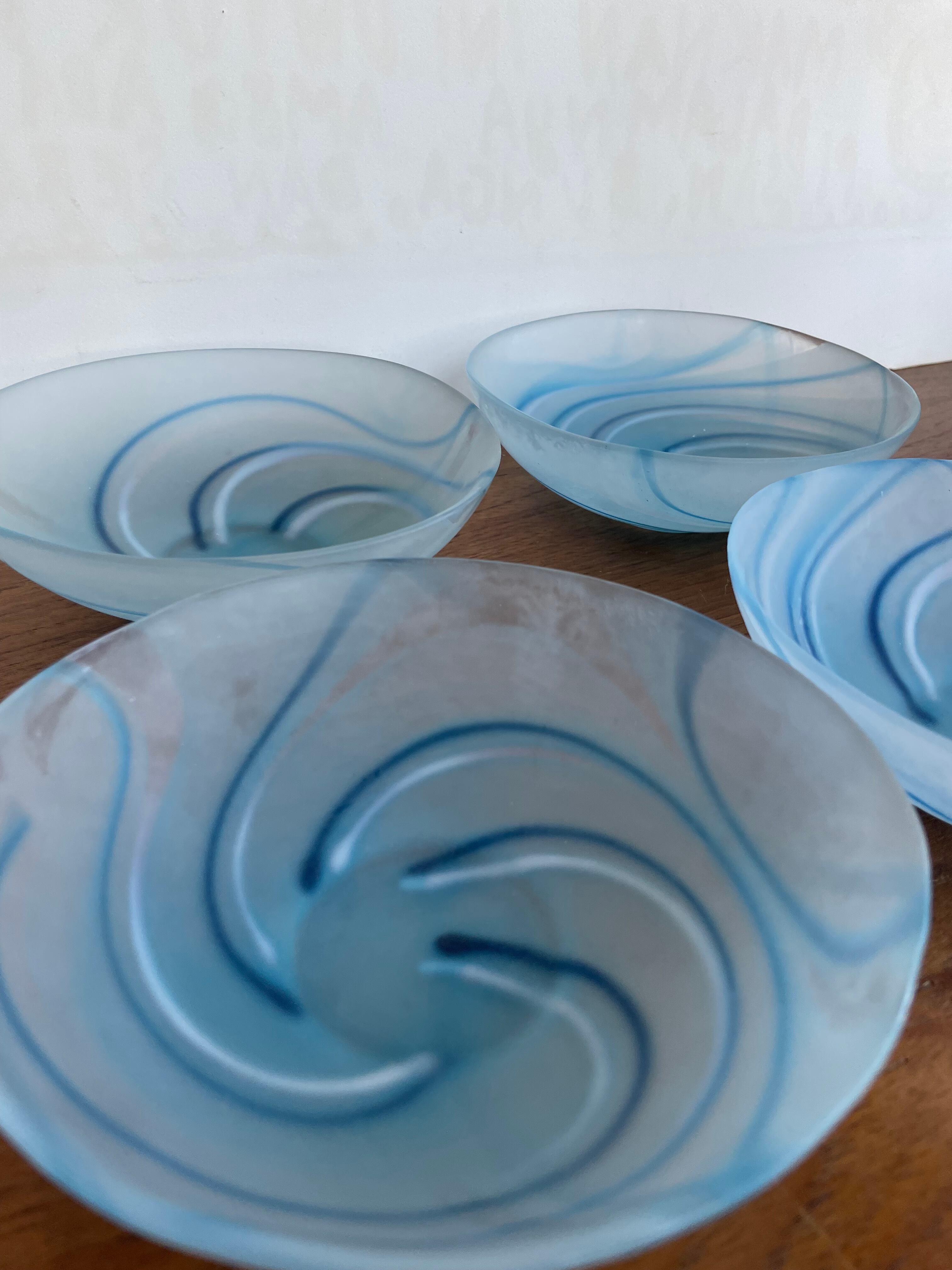 Japan Vintage フロスト ガラス 中鉢 小鉢 深皿 ボウル すり 曇り 渦巻 螺旋 らせん 4客
