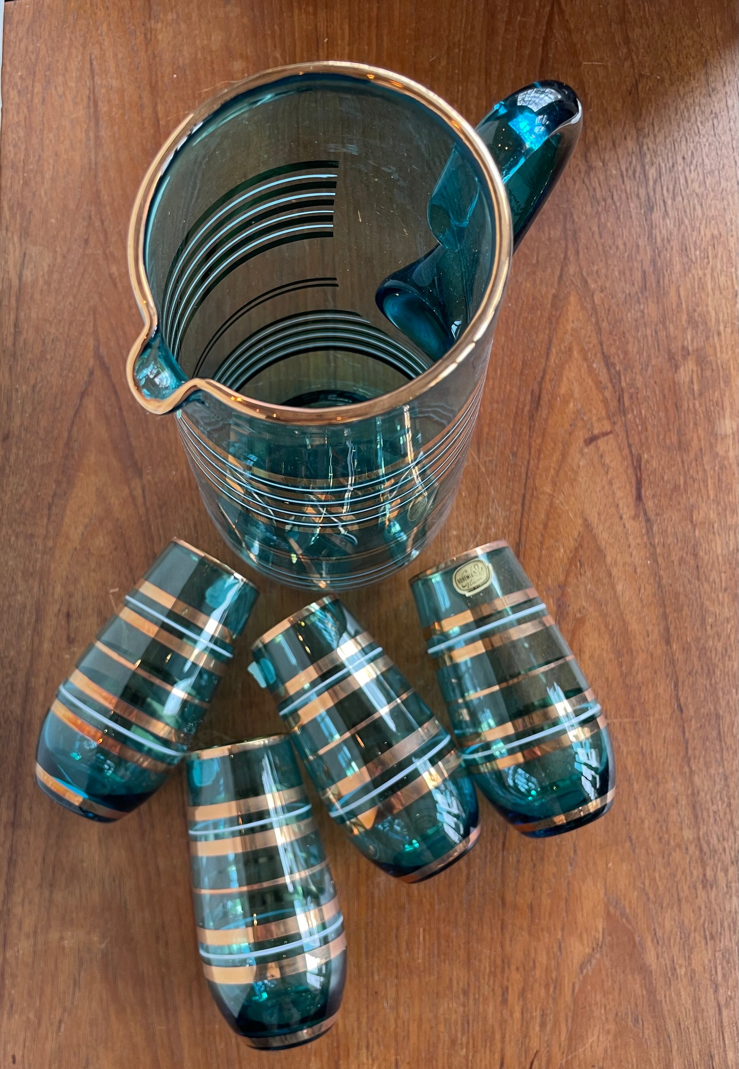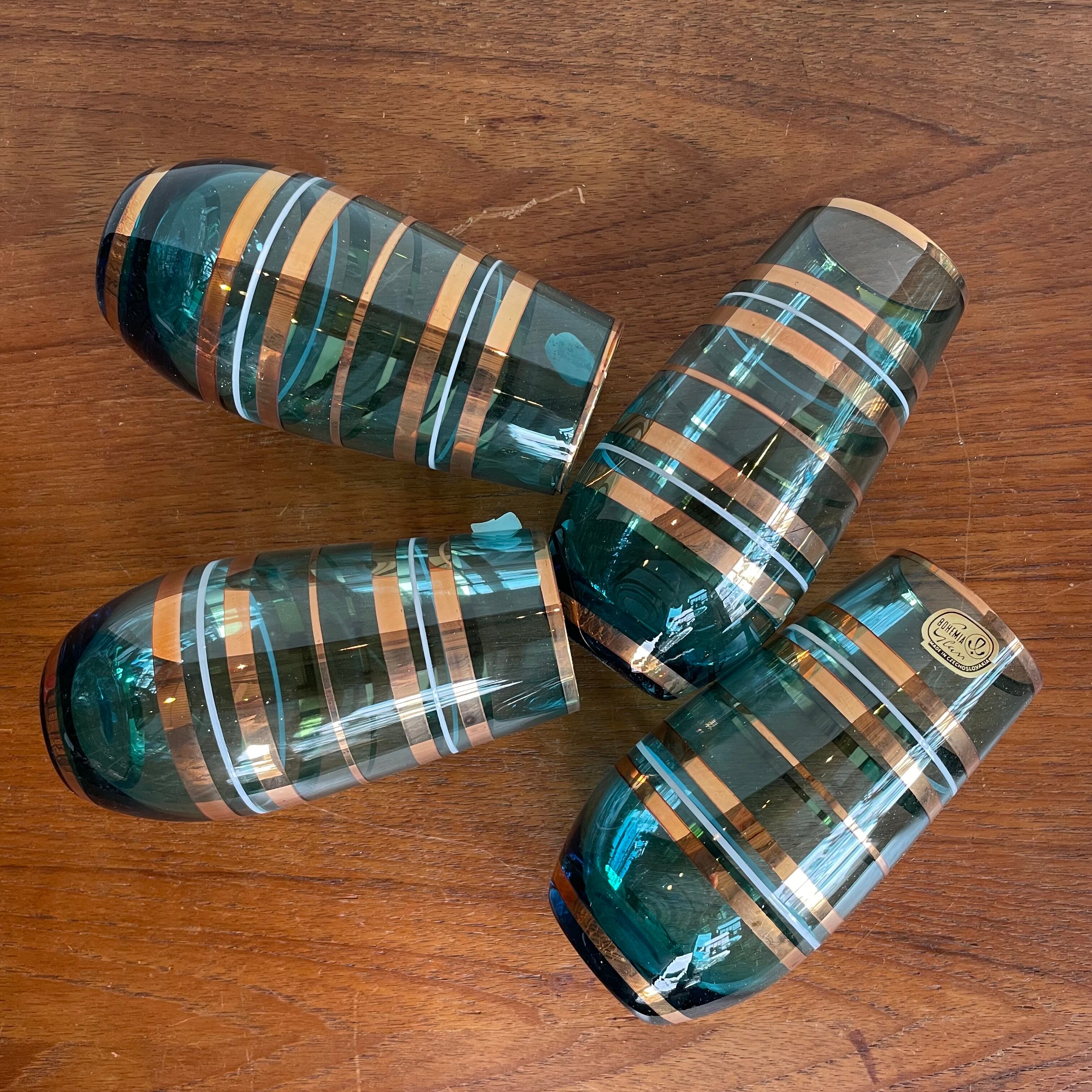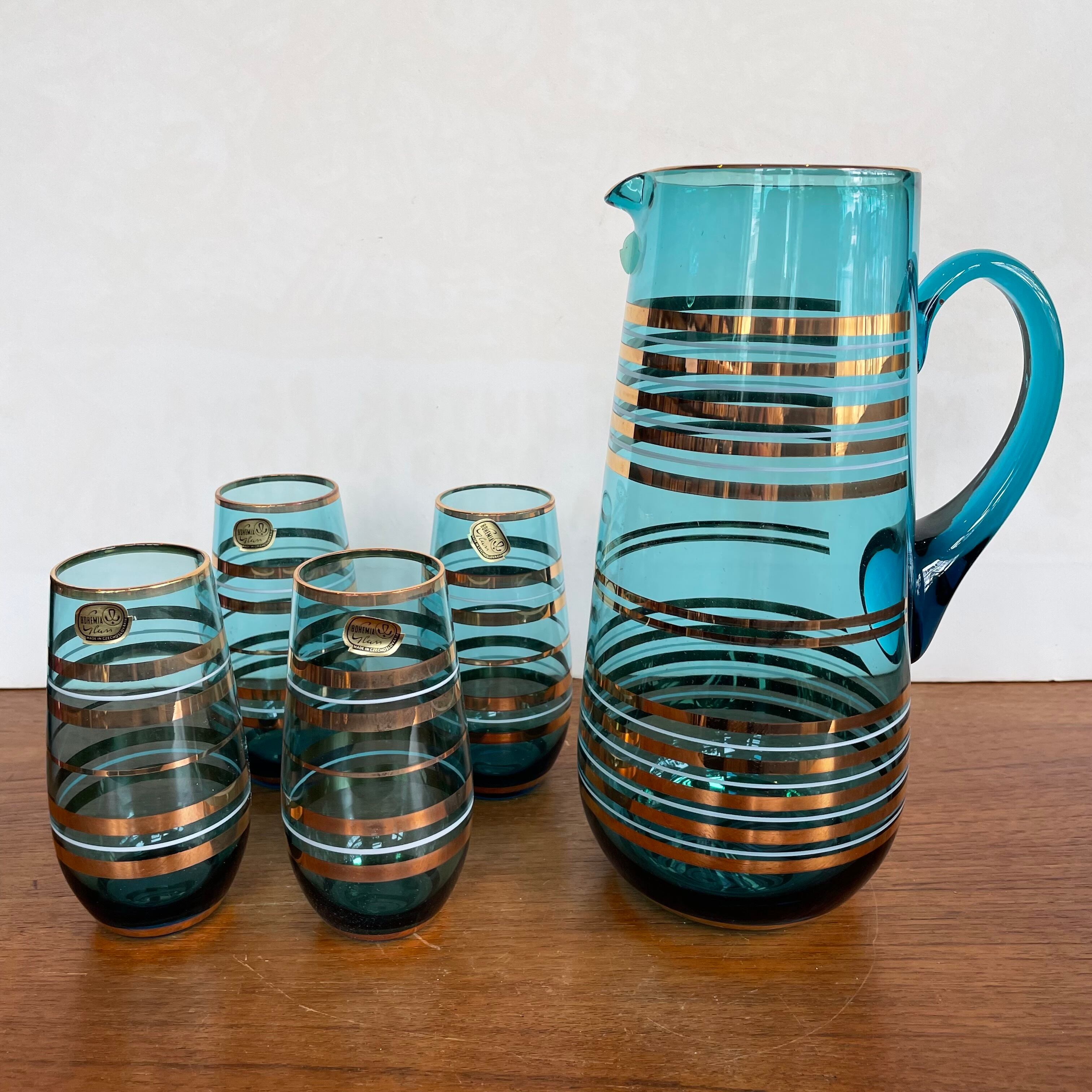 Czechoslovakia Vintage ボヘミア カリ グラス タンブラー4 ピッチャー1 新品 美