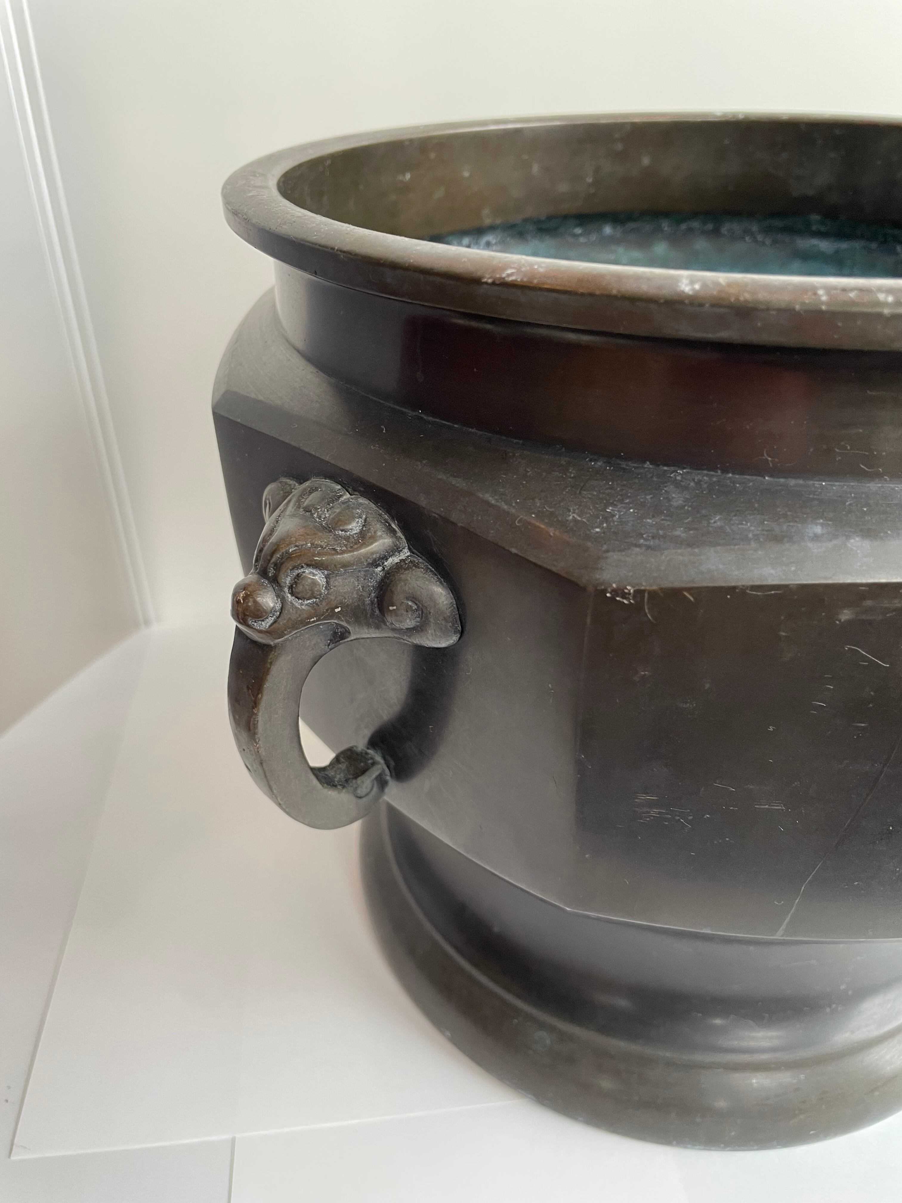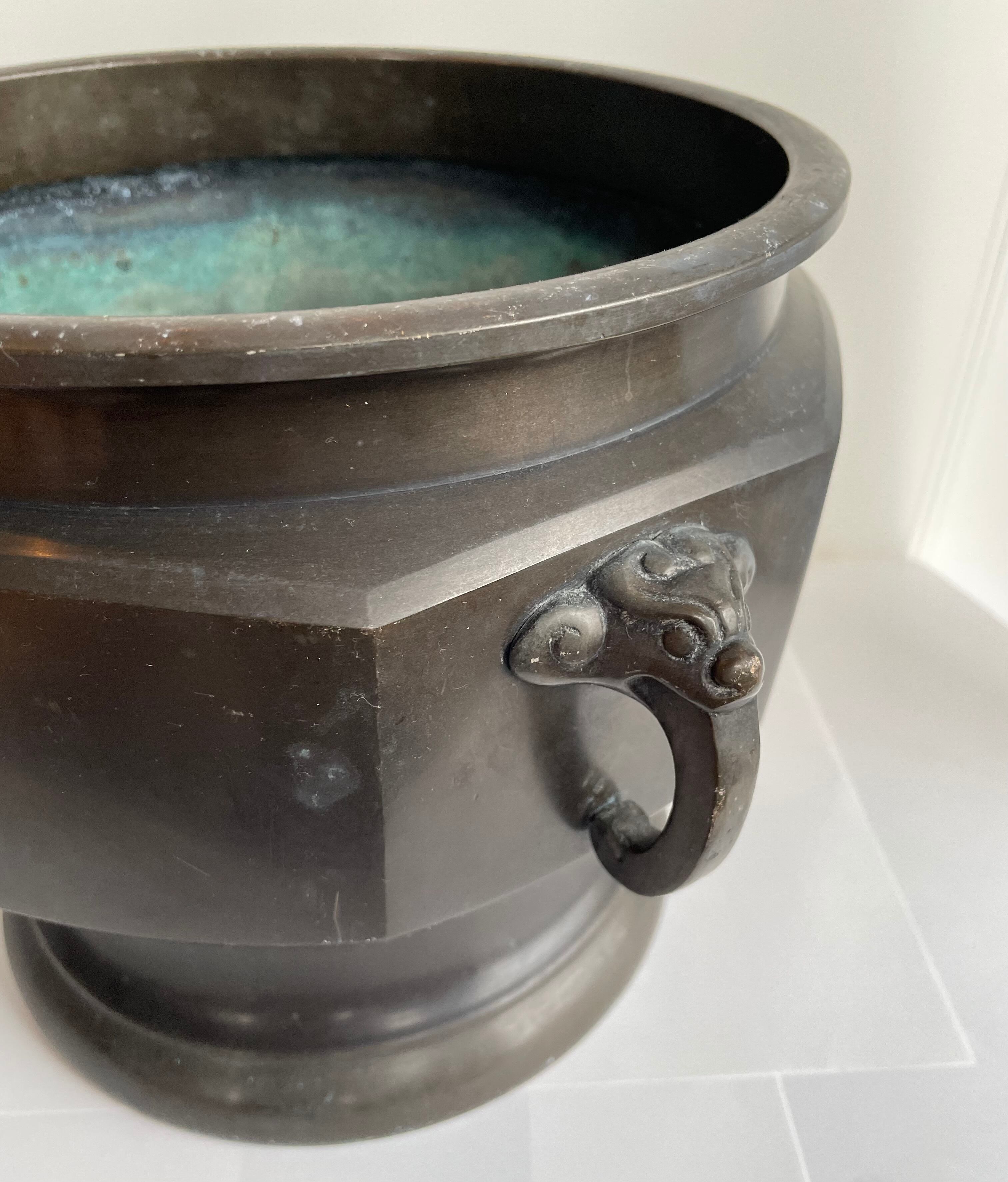 青銅製の古い火鉢、大きめのサイズです。