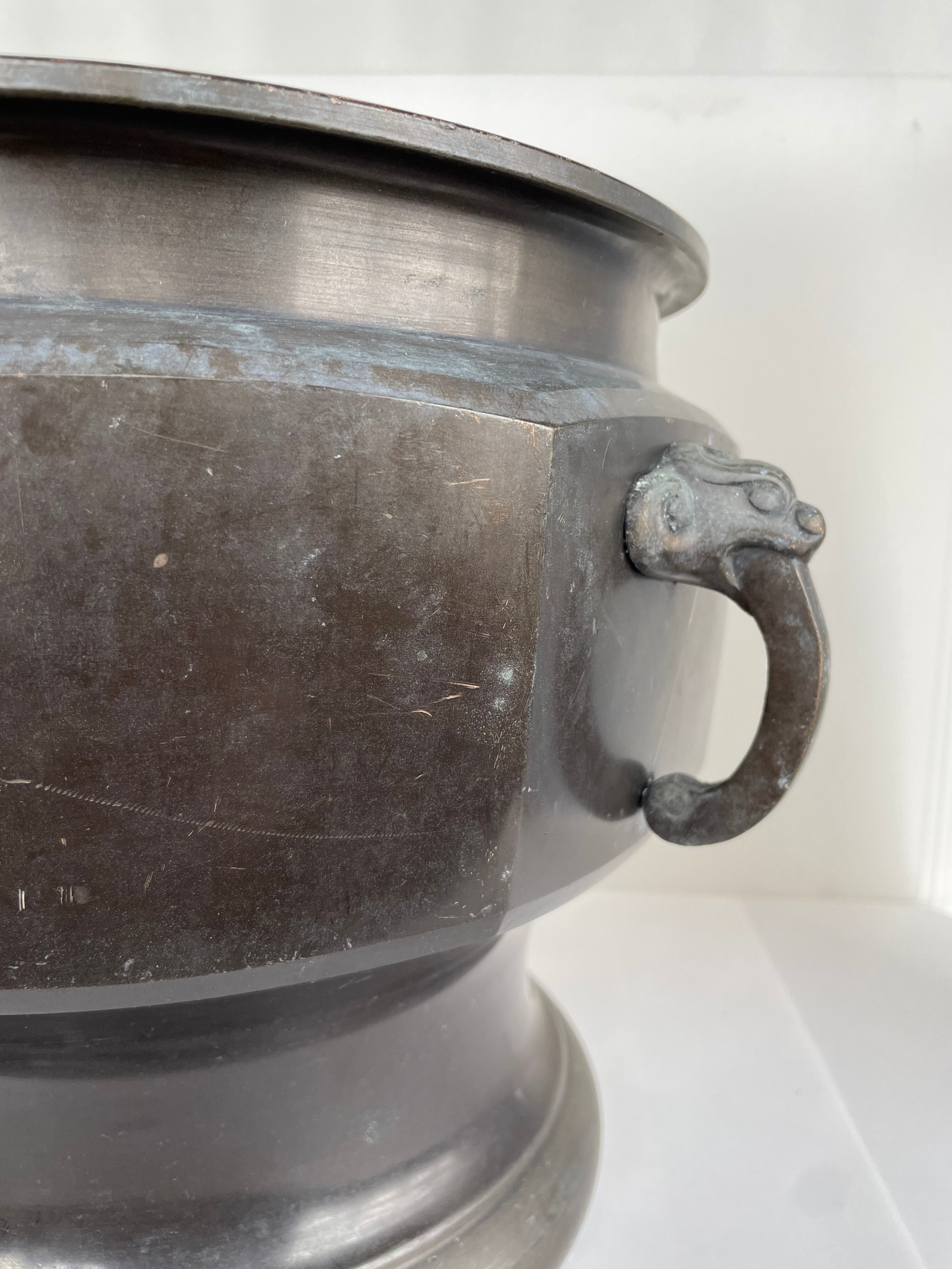 青銅製の古い火鉢、大きめのサイズです。