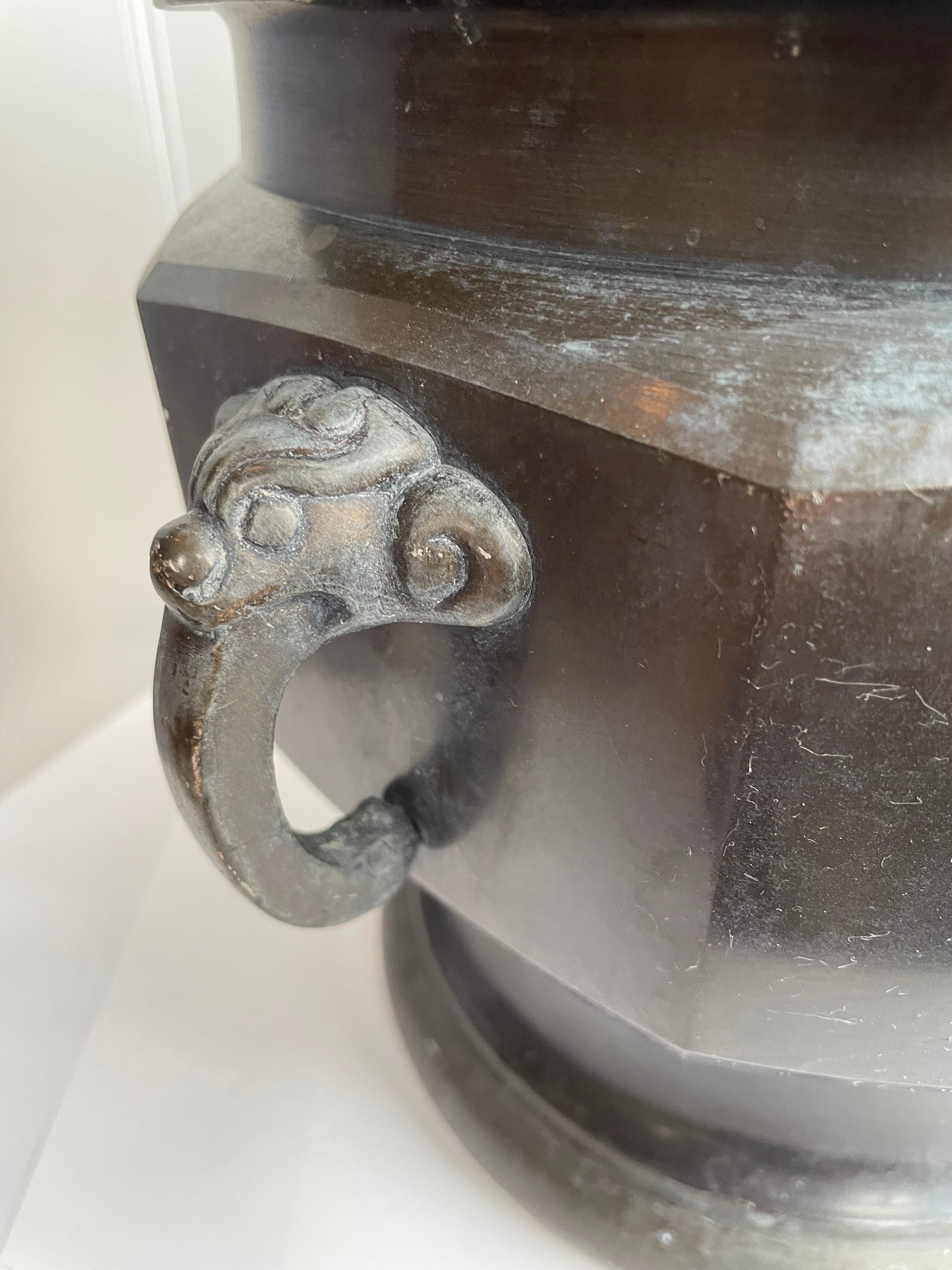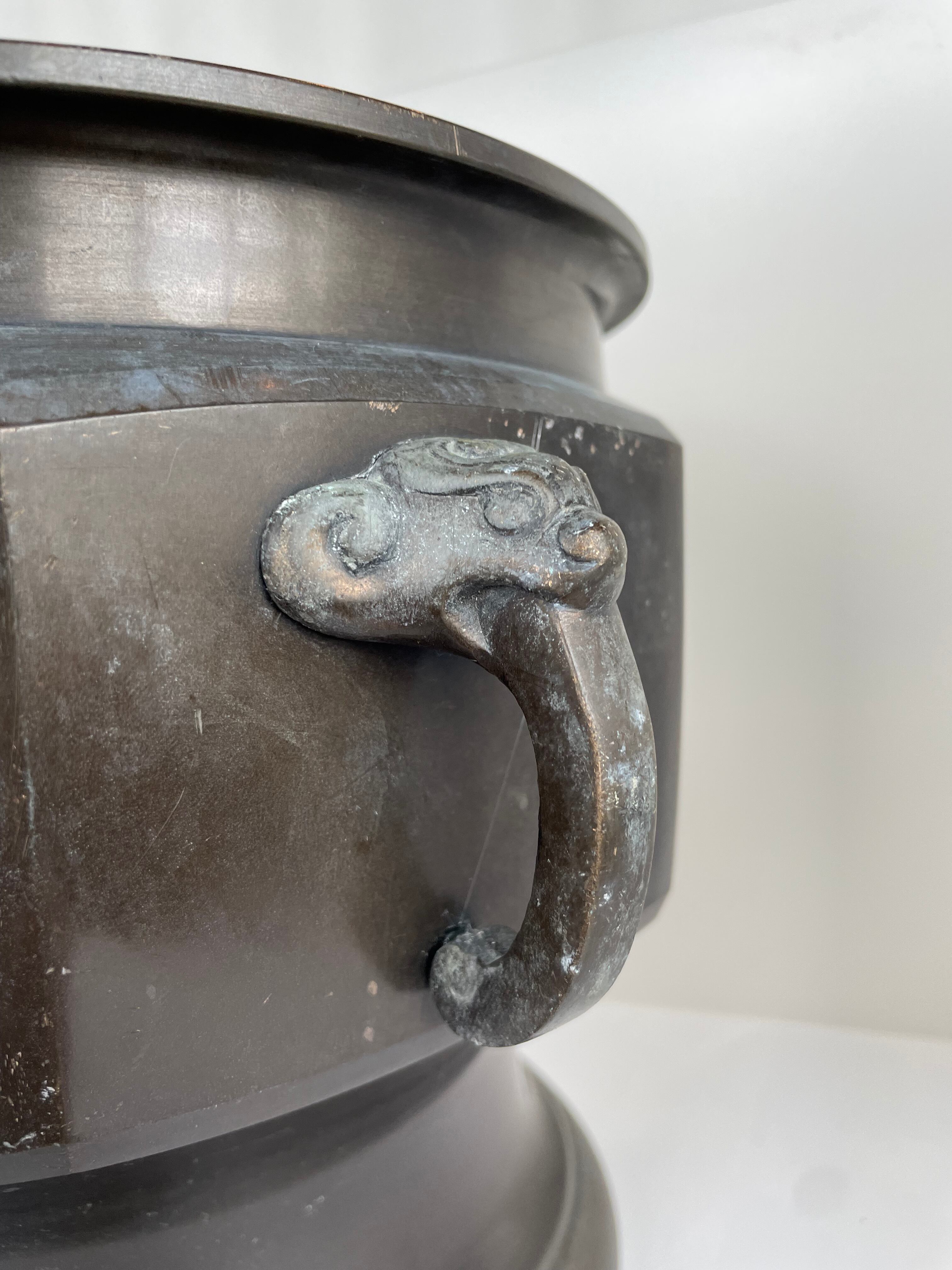Japan Vintage 青銅 火鉢 大型 両耳 双耳 獣 獅子 龍 耳 手炙り 手あぶり 古民具 骨董