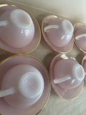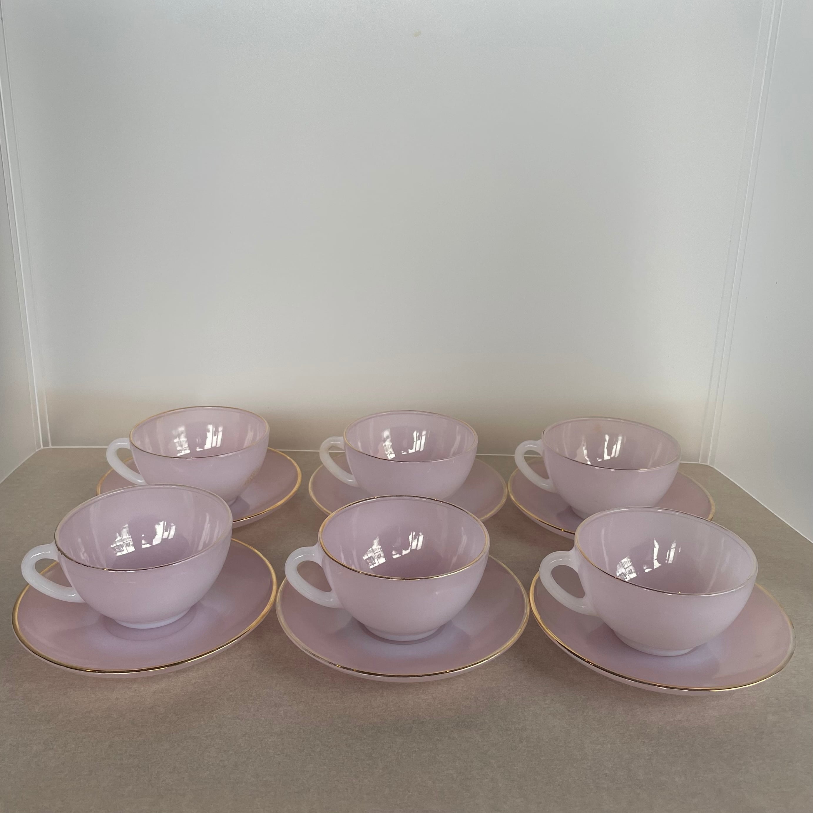 France Vintage フランス アルコパル カップ&ソーサー 5客 ミルク ガラス ピンク 耐熱
