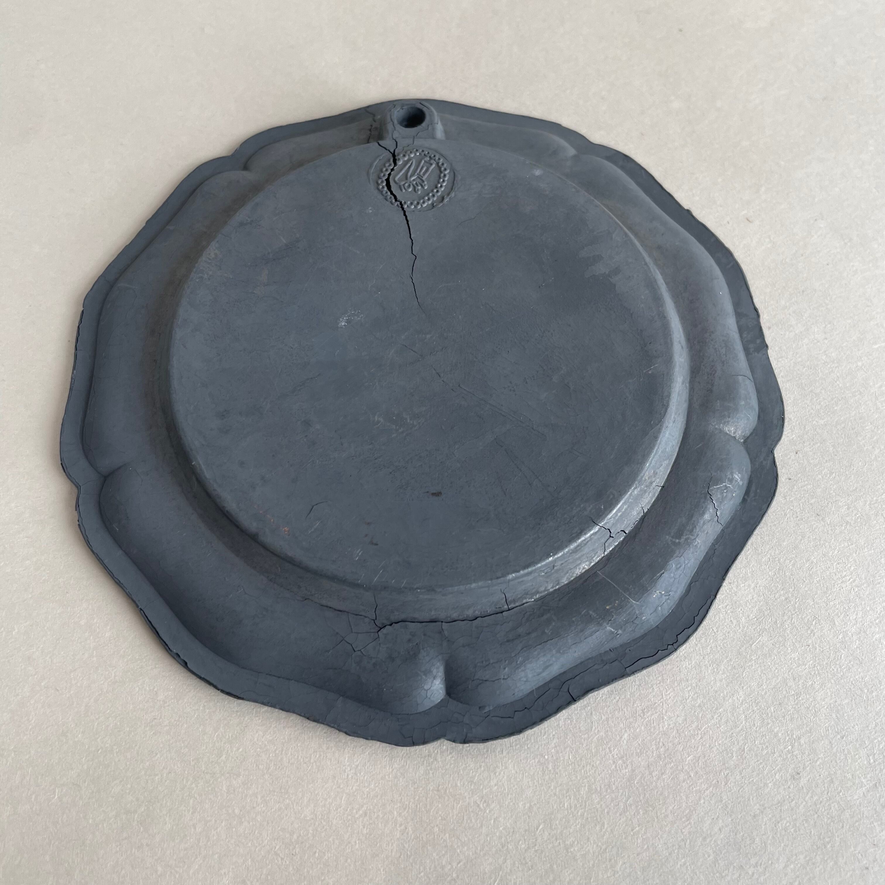 France Antique フランス アンティーク ピューター 錫 小皿 飾り 壁掛け フラワーリム 花柄