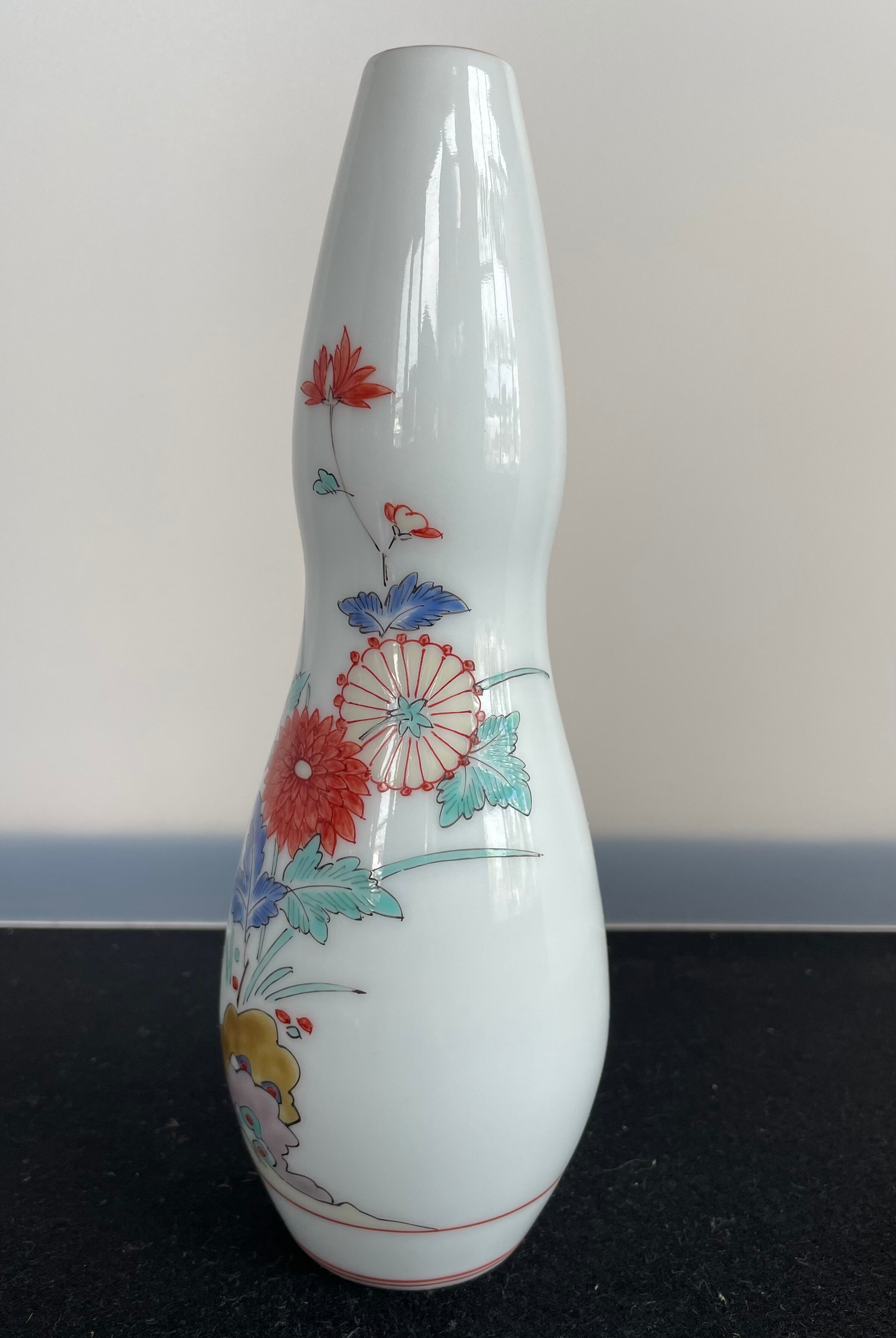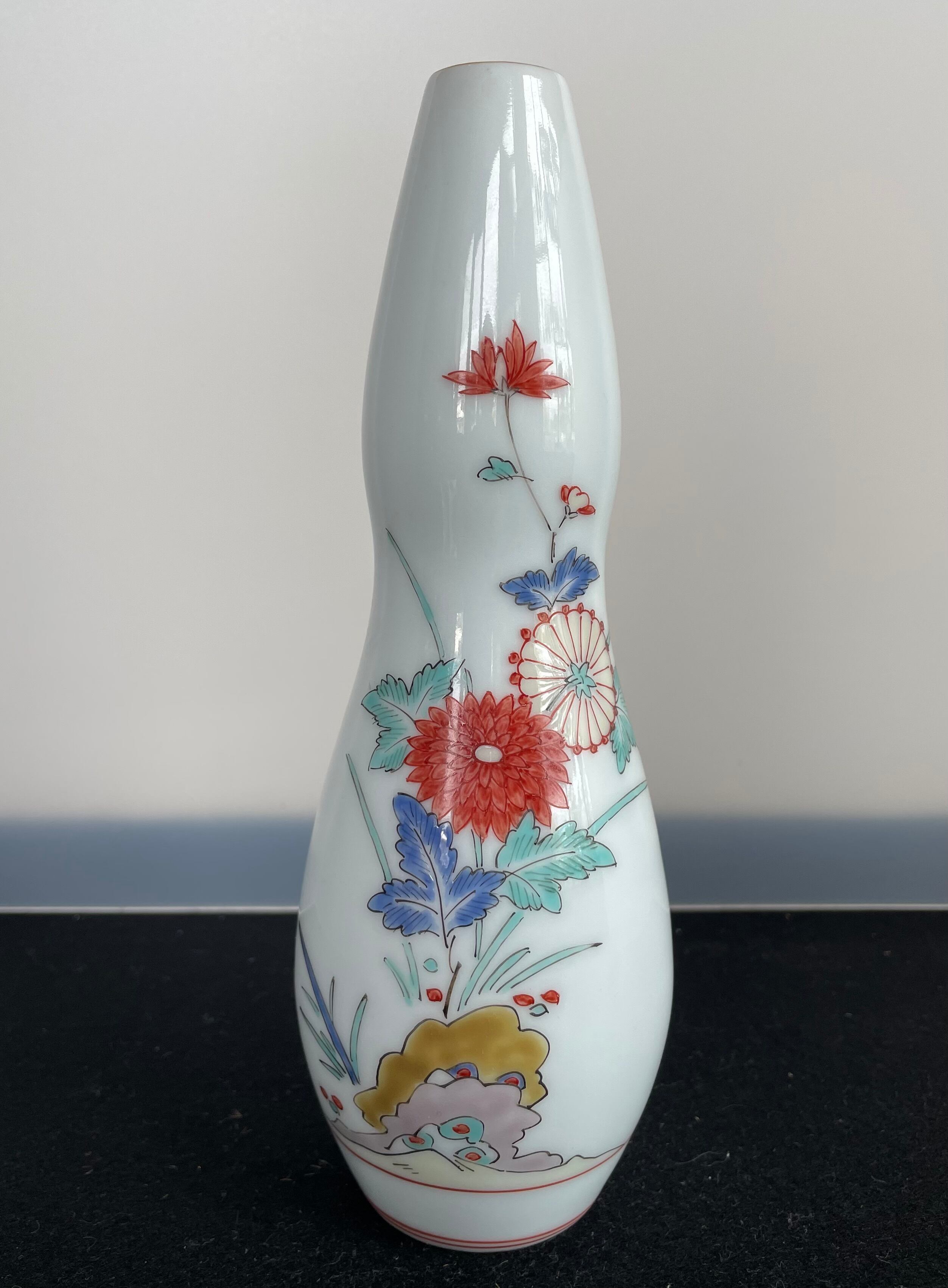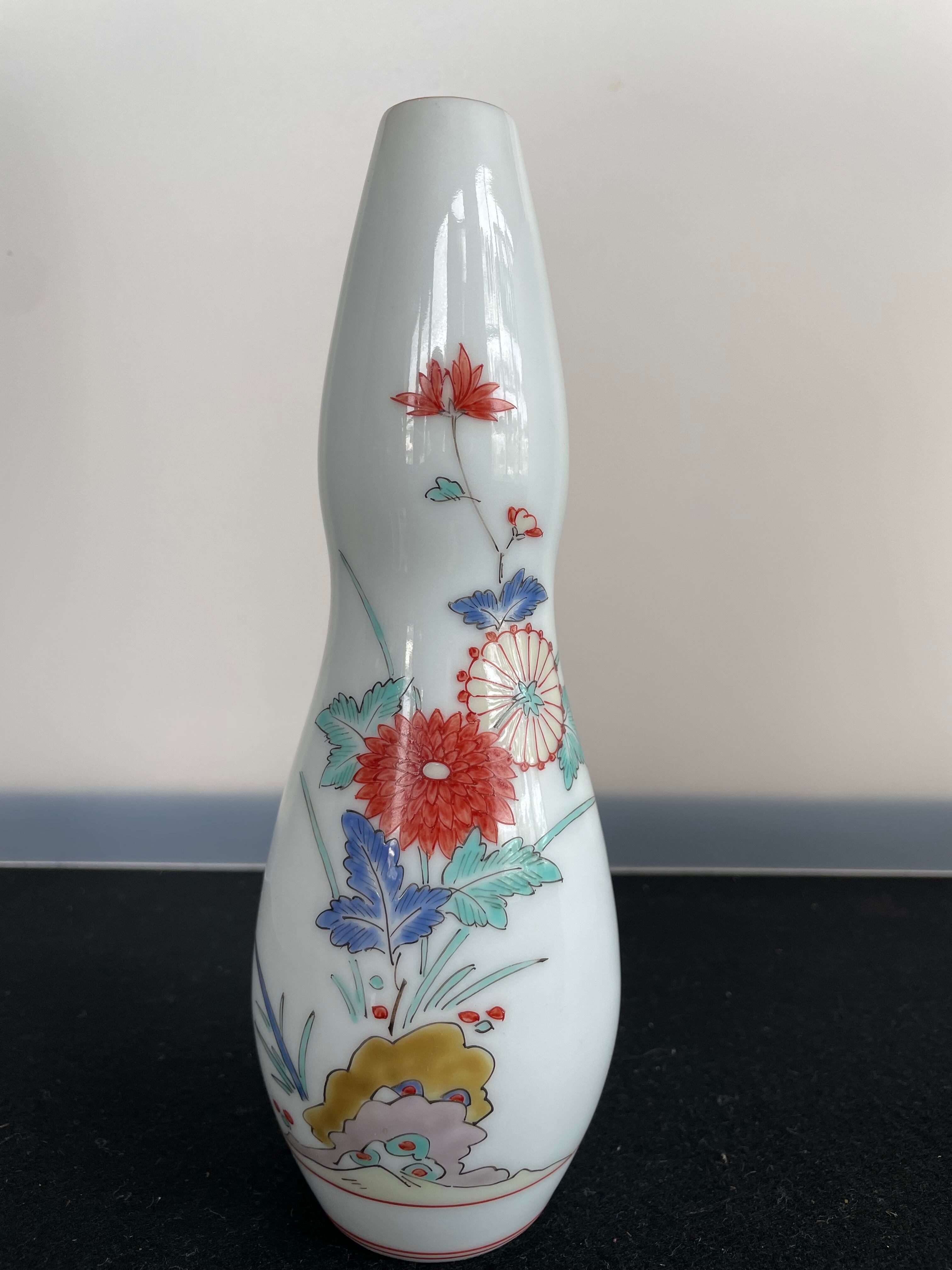 錦岩菊紋 色絵 花文 一輪生 花 一輪挿し(花瓶、花器、花入)。