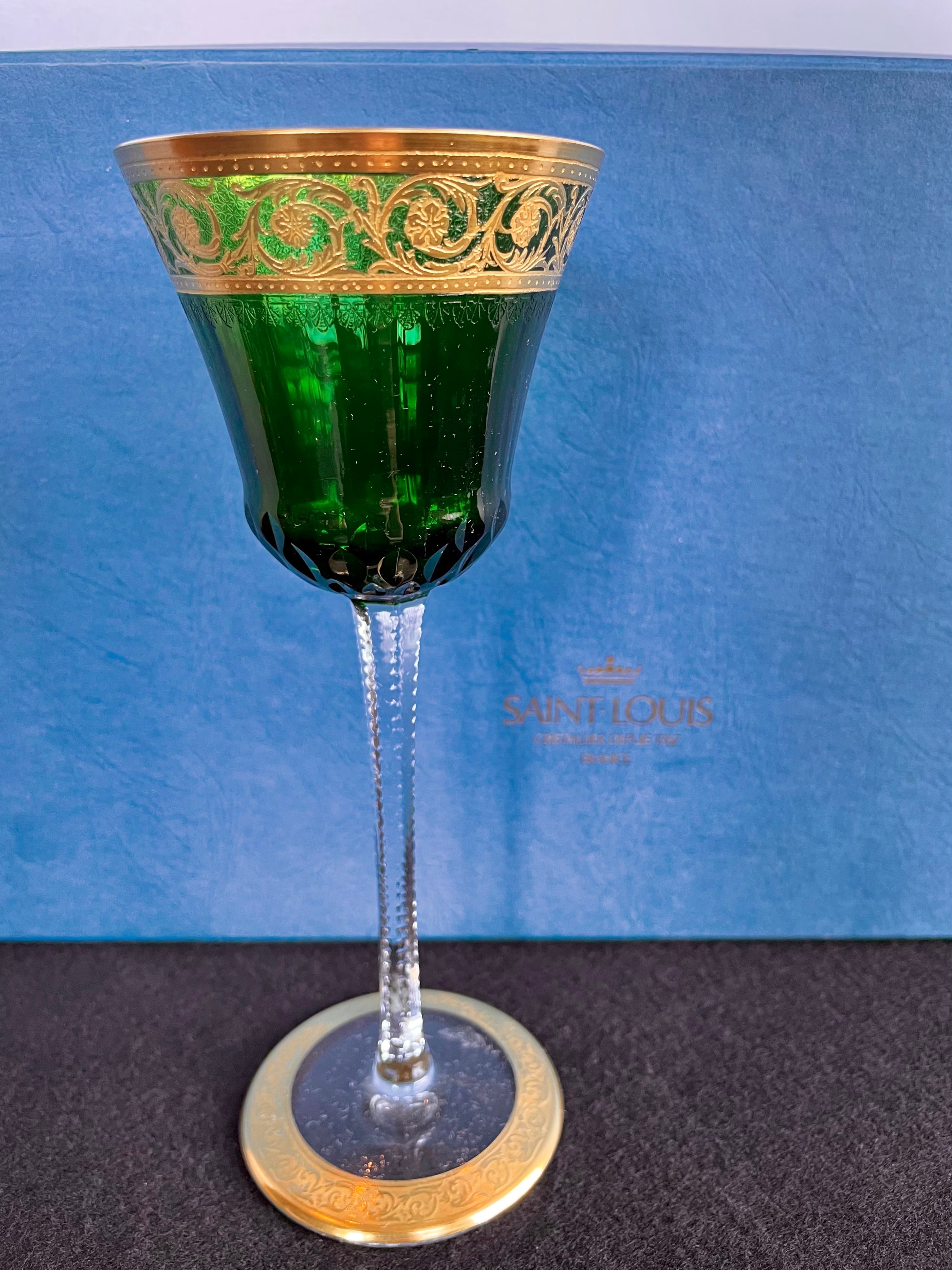 France Vintage 希少 サンルイ シスル ティスル ホックワイングラス グリーン 美品