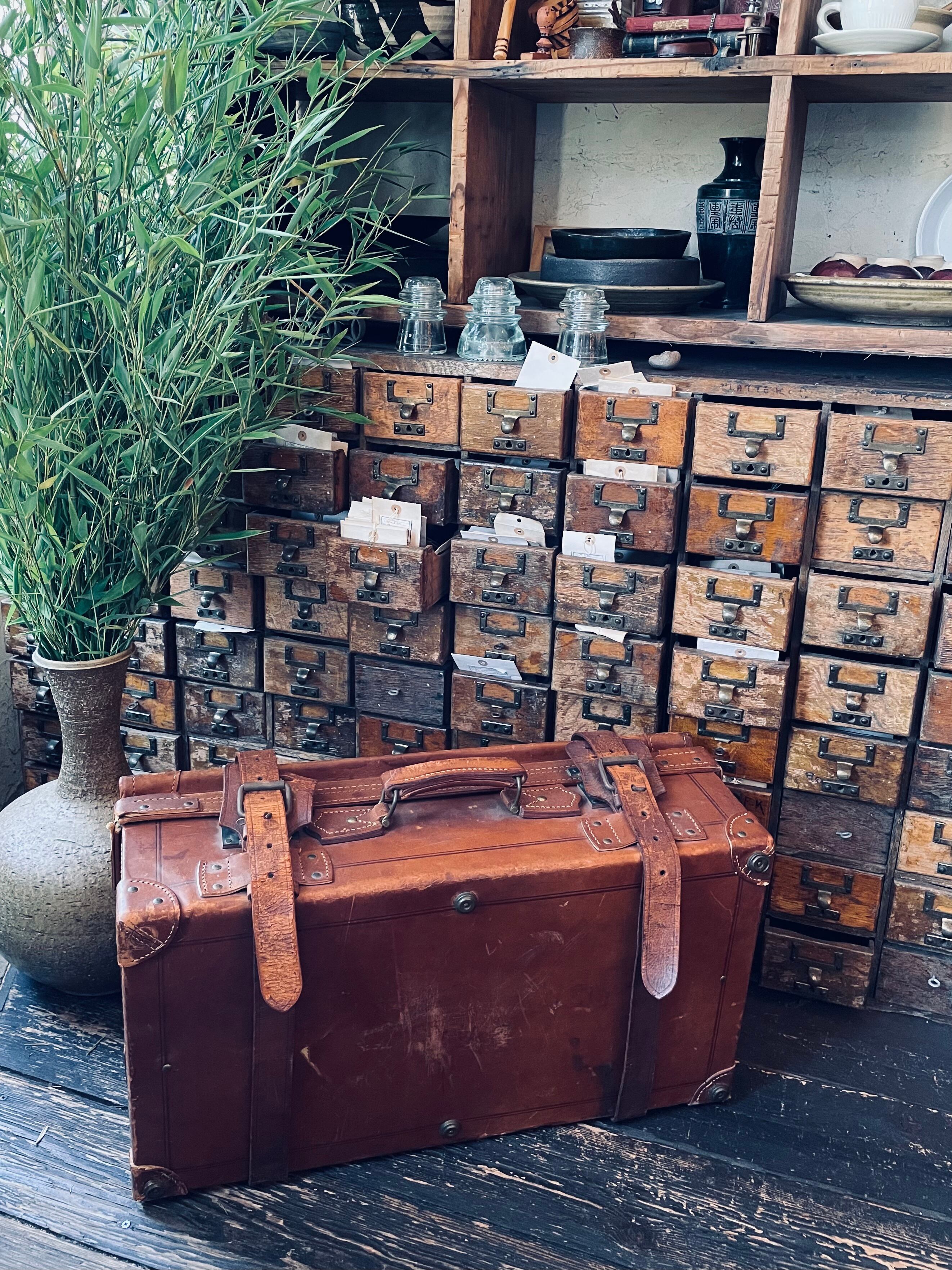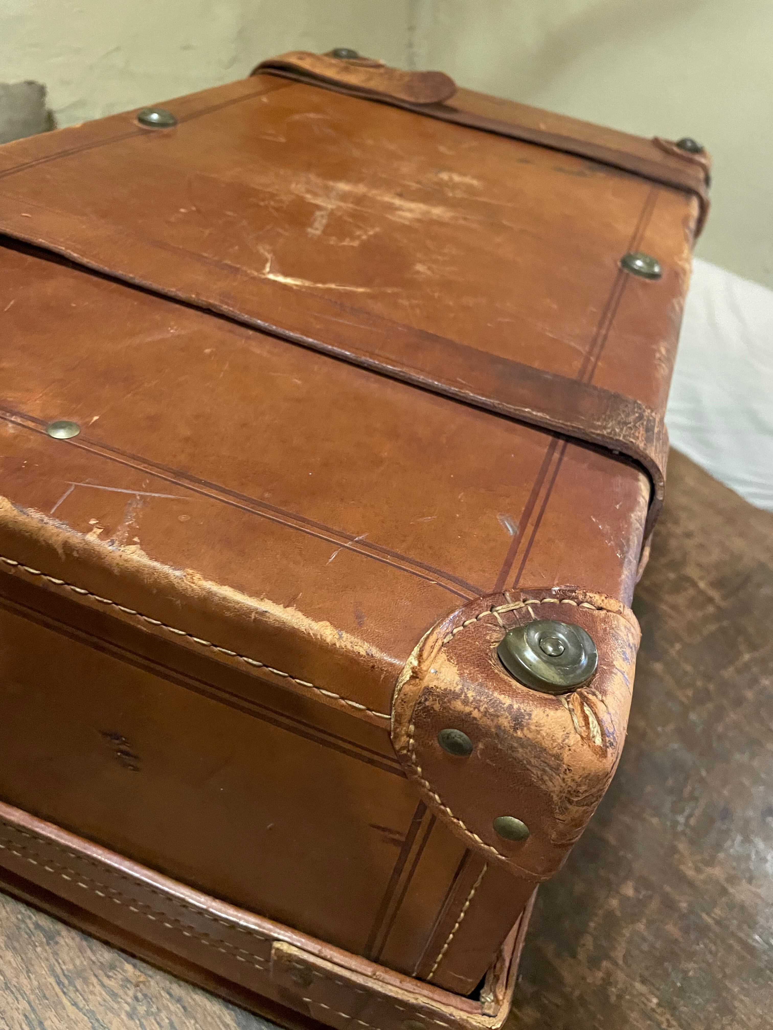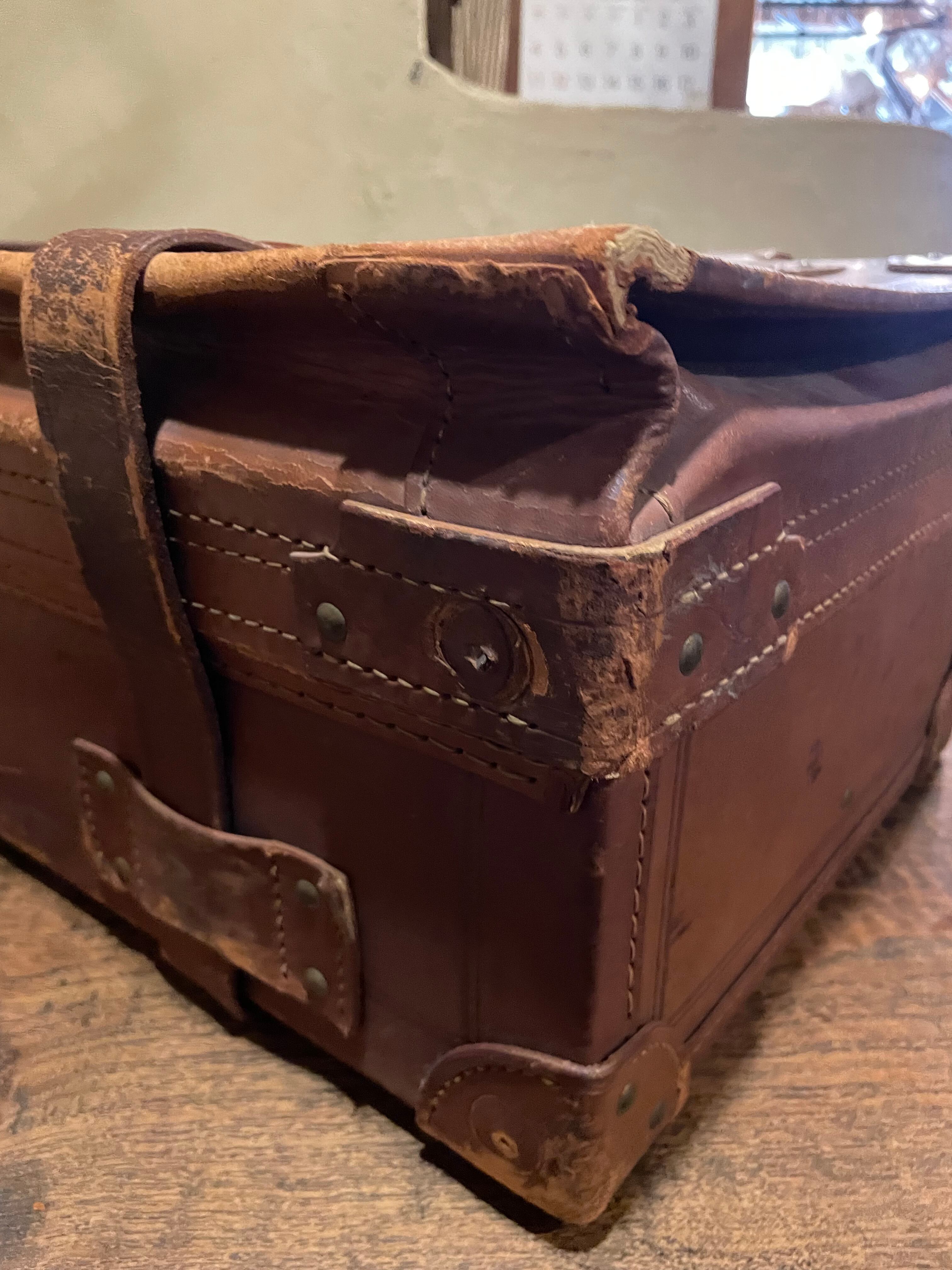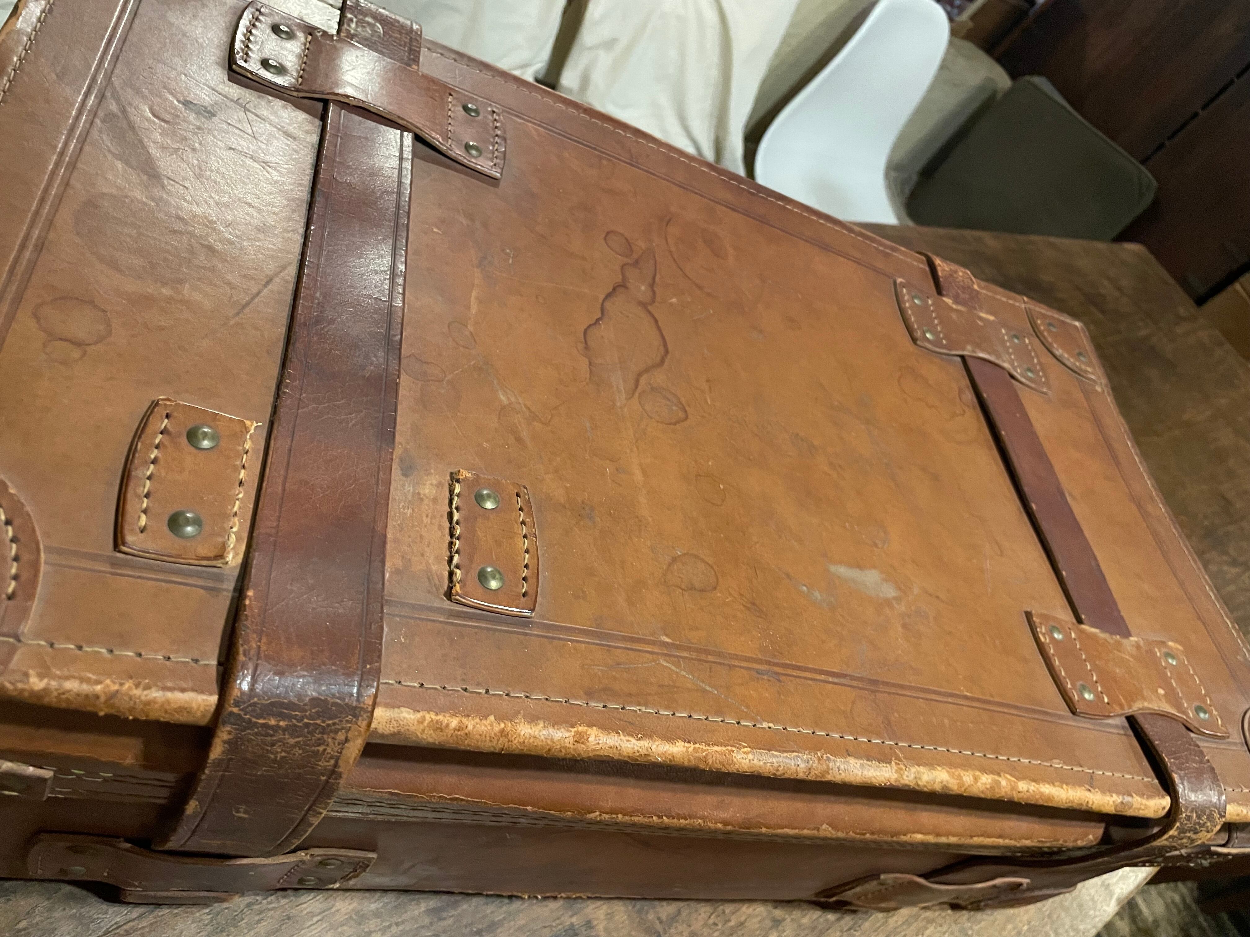 アンティークのレザー(本革)トランク(キャリーケース)。