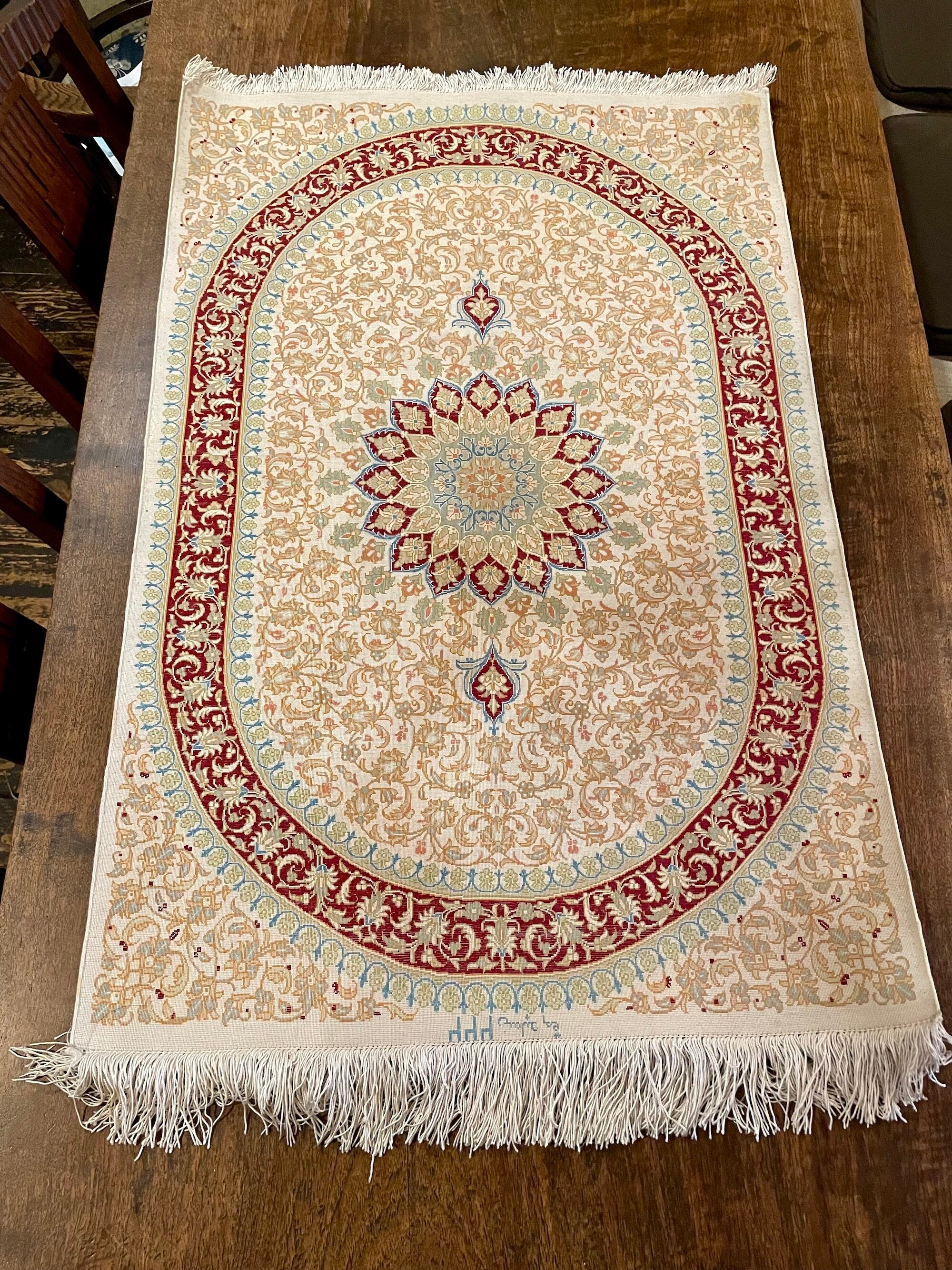 Iran Vintage ペルシャ絨毯 シルク 手織 ナイン カーペット ラグ タペストリー 59×96