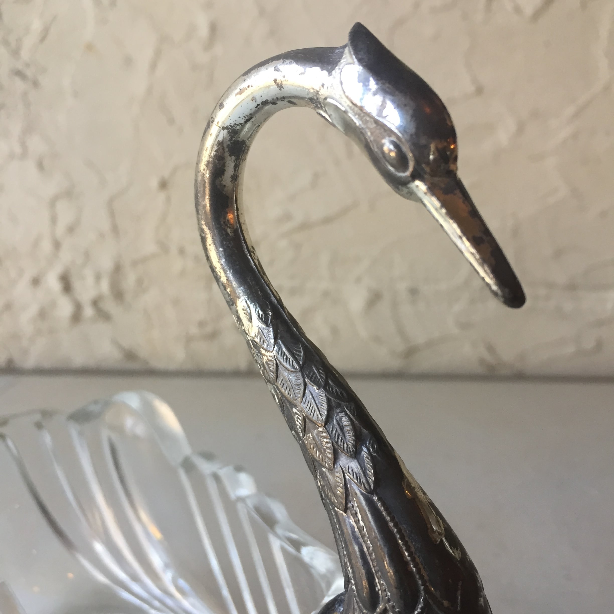 Swan Vintage dish 白鳥 スワン 小物入れ クリスタル×メタルシルバー Lサイズ