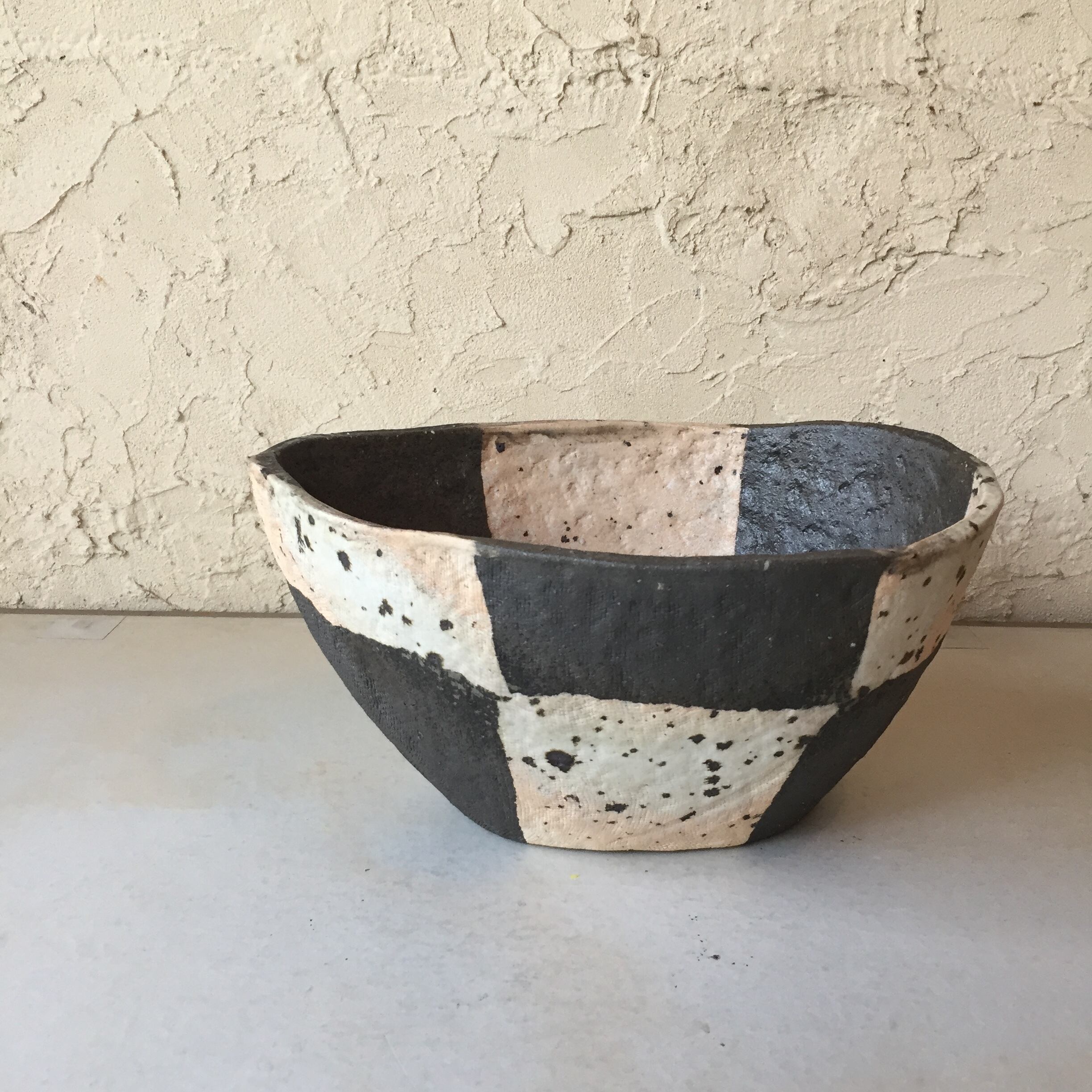 Japan Vintage 信楽焼 大鉢 鉢 市松模様 ボウル 花器 花瓶 フラワーベース 未使用 蔵出し
