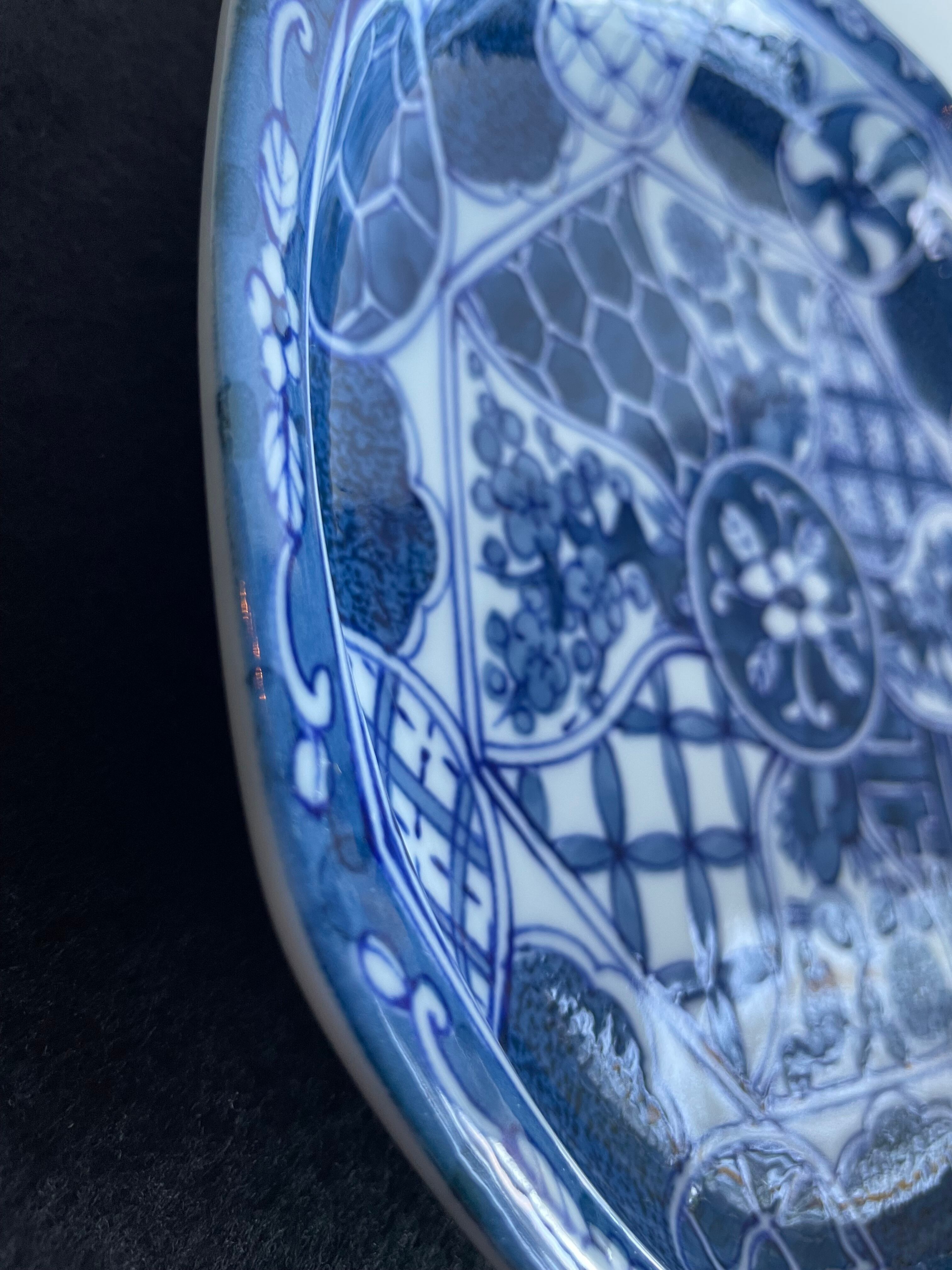 鮮やかな青藍色で模様を施した染付の最上柄です。